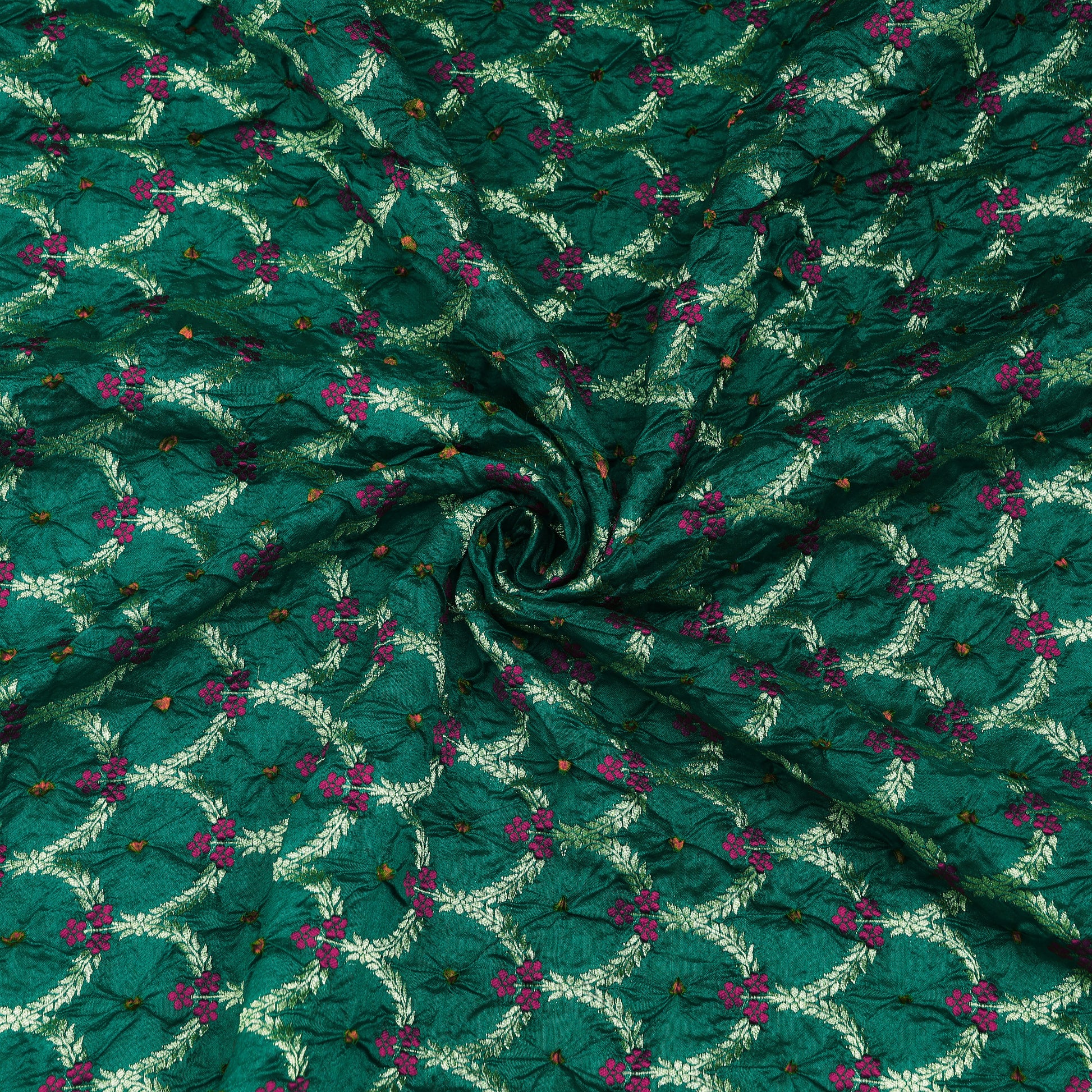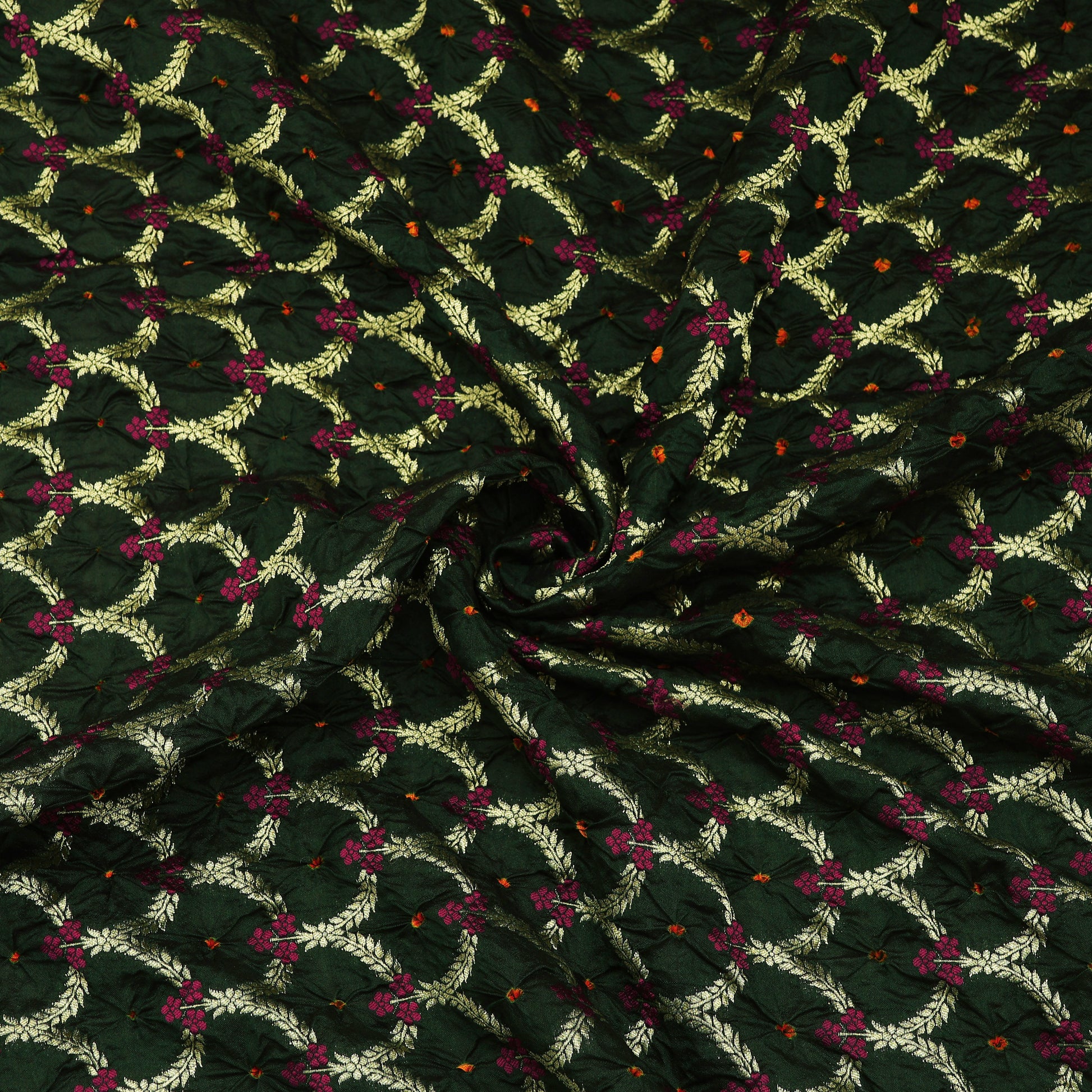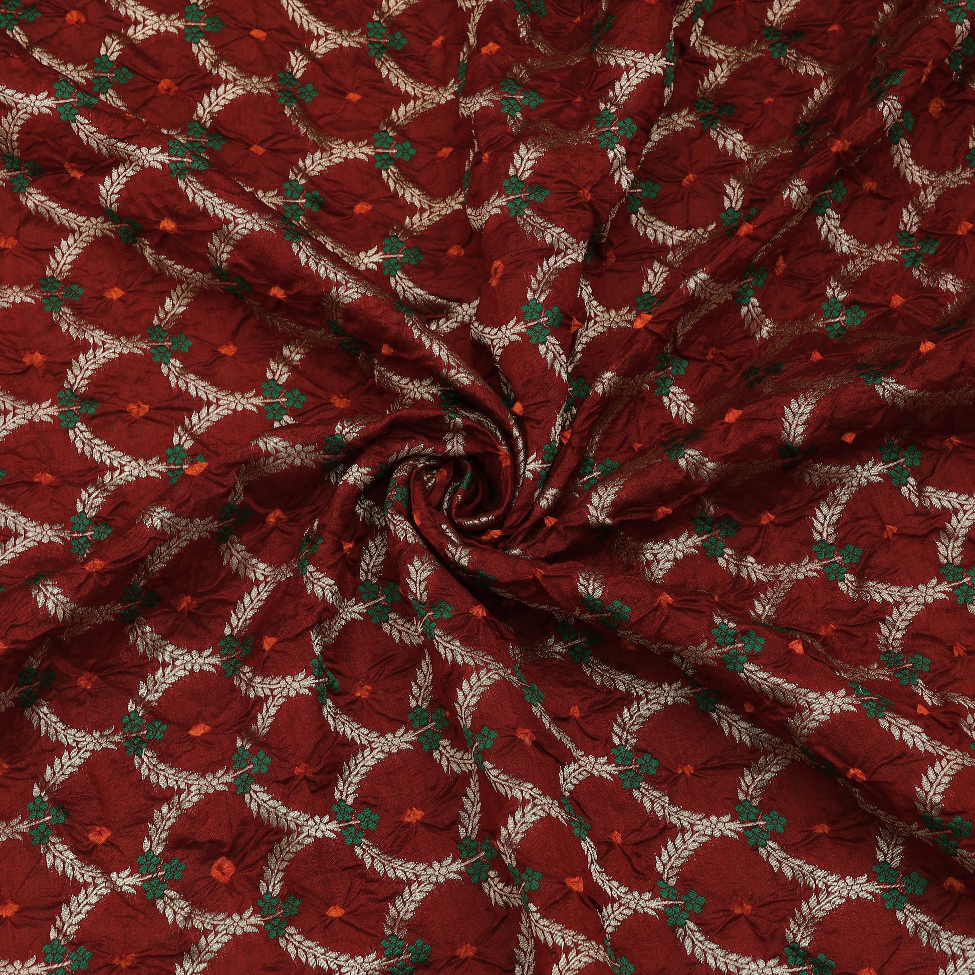 The fabric features a soft yet structured feel with vibrant, long-lasting colors that enhance the depth of the design. Known for its graceful drape and elegant texture, Pure Bandhej Fabric brings a perfect blend of tradition and sophistication, making it a favorite for festive and ceremonial wear.