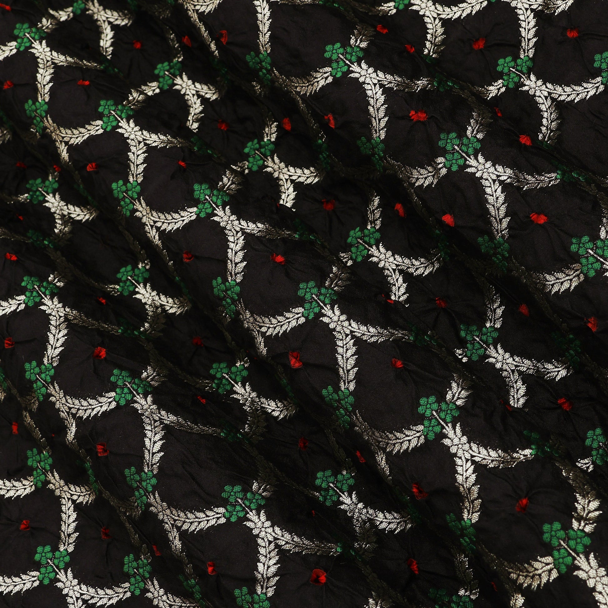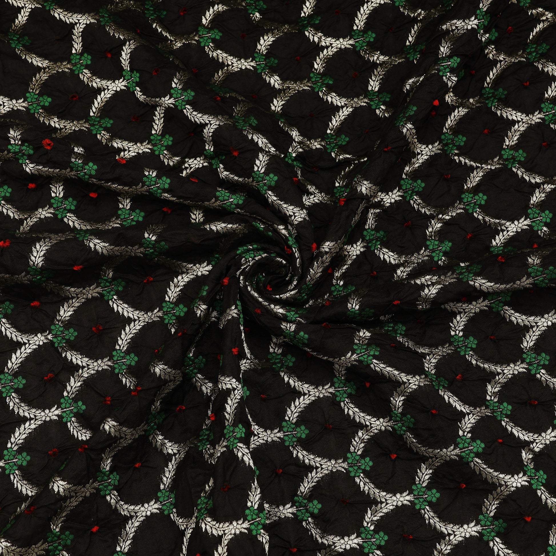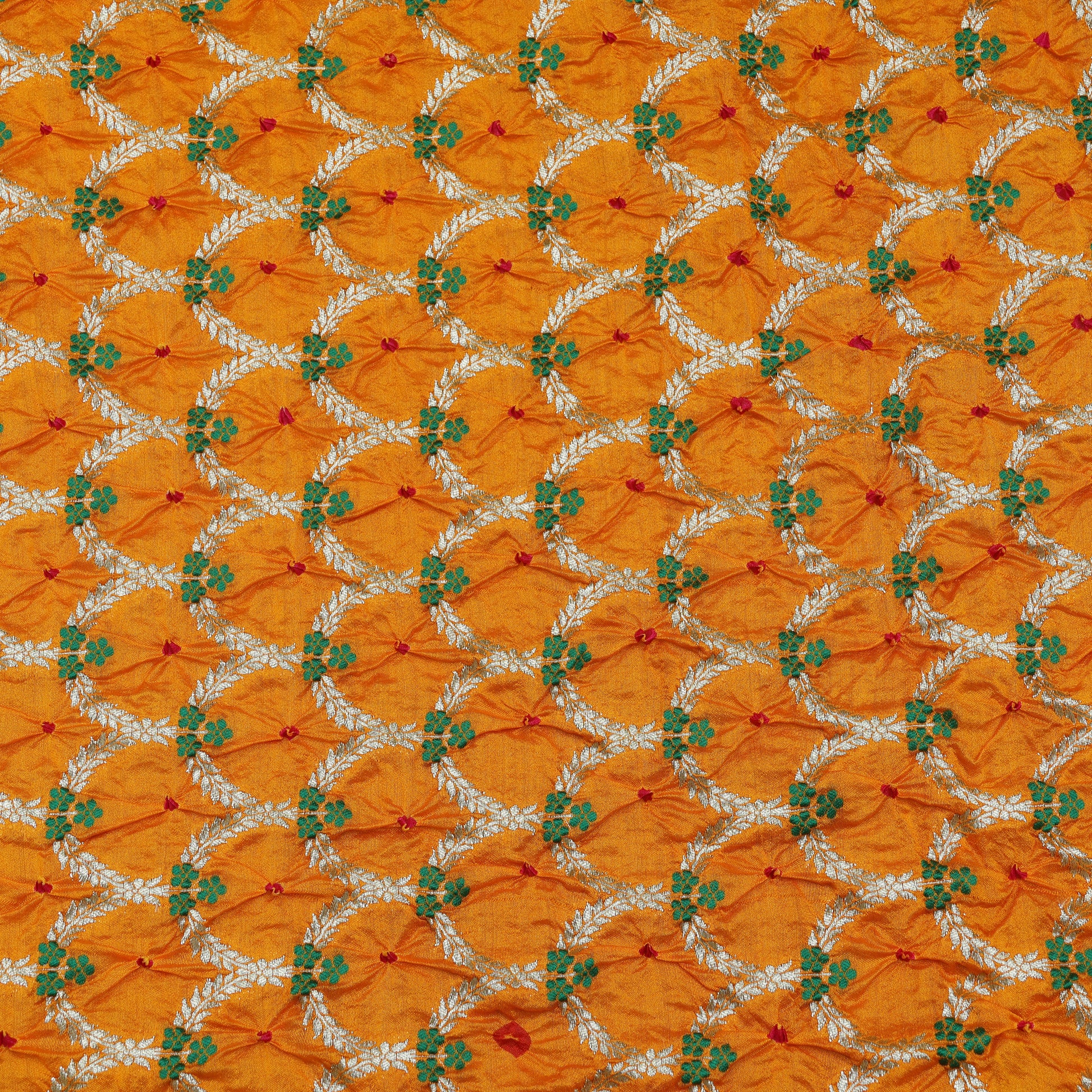 The fabric features a soft yet structured feel with vibrant, long-lasting colors that enhance the depth of the design. Known for its graceful drape and elegant texture, Pure Bandhej Fabric brings a perfect blend of tradition and sophistication, making it a favorite for festive and ceremonial wear.