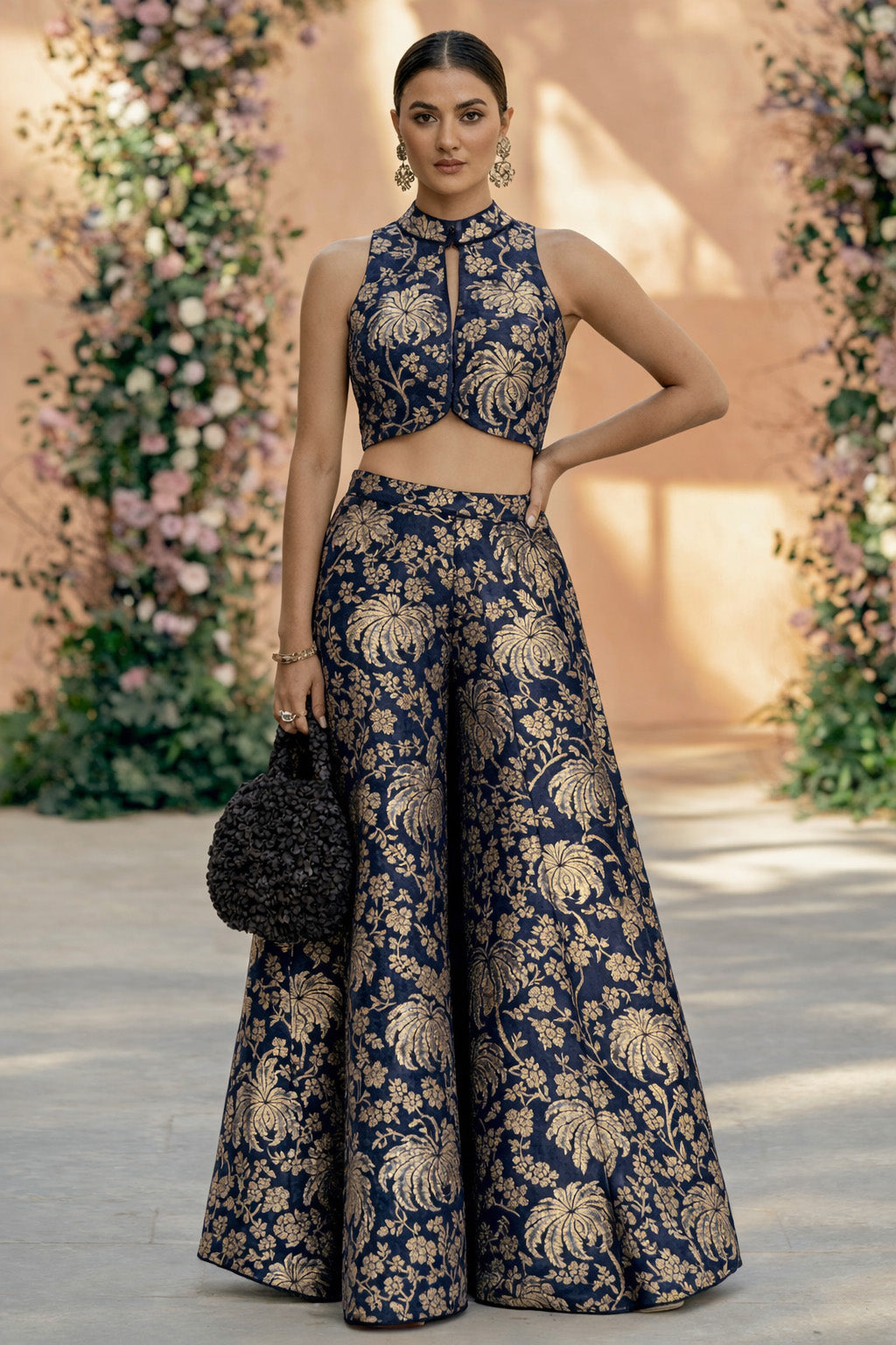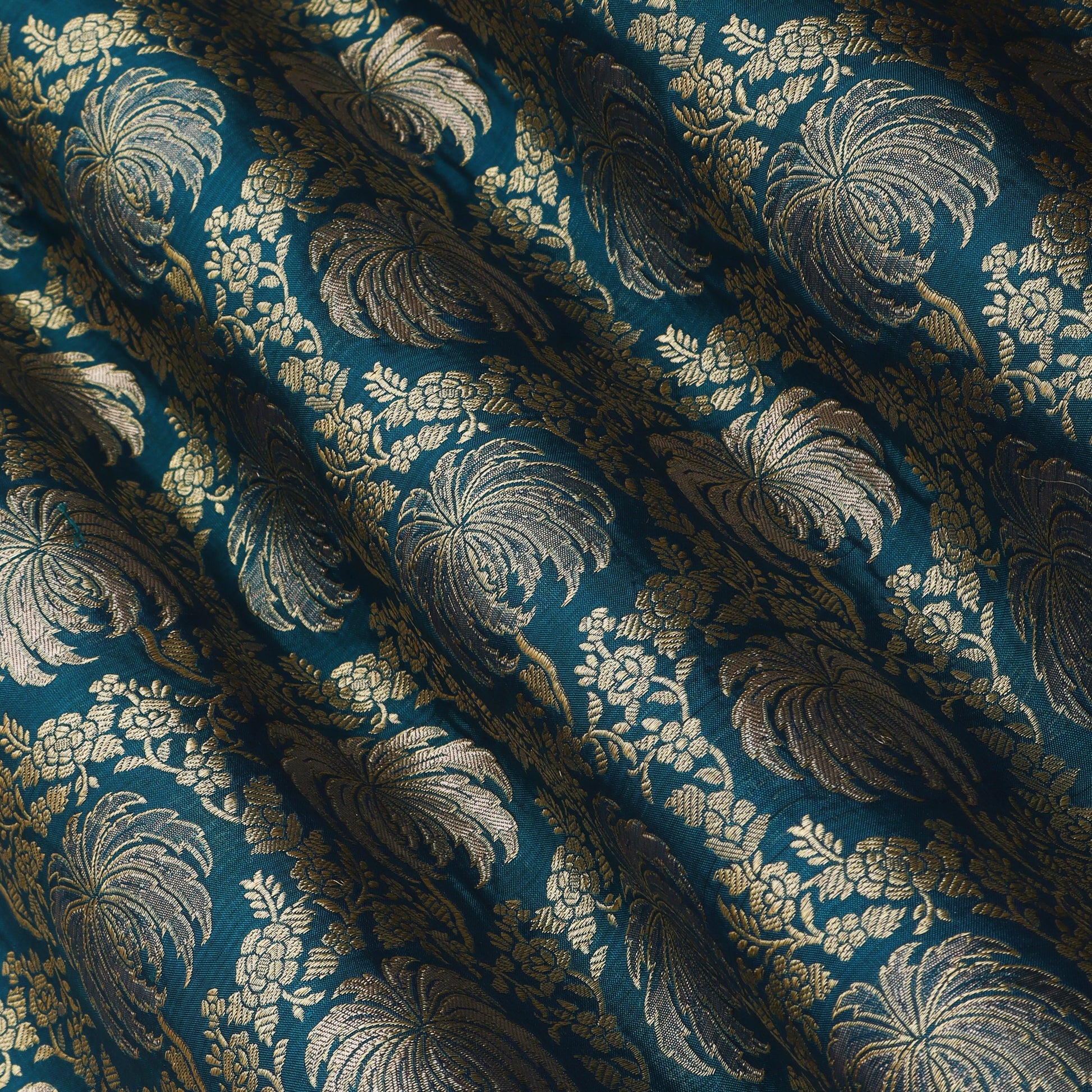 Katan silk, made by twisting pure silk threads together, gives the fabric its signature firmness and longevity while maintaining an elegant drape. The brocade patterns are woven seamlessly into the base, resulting in a refined, structured finish that holds its shape beautifully.