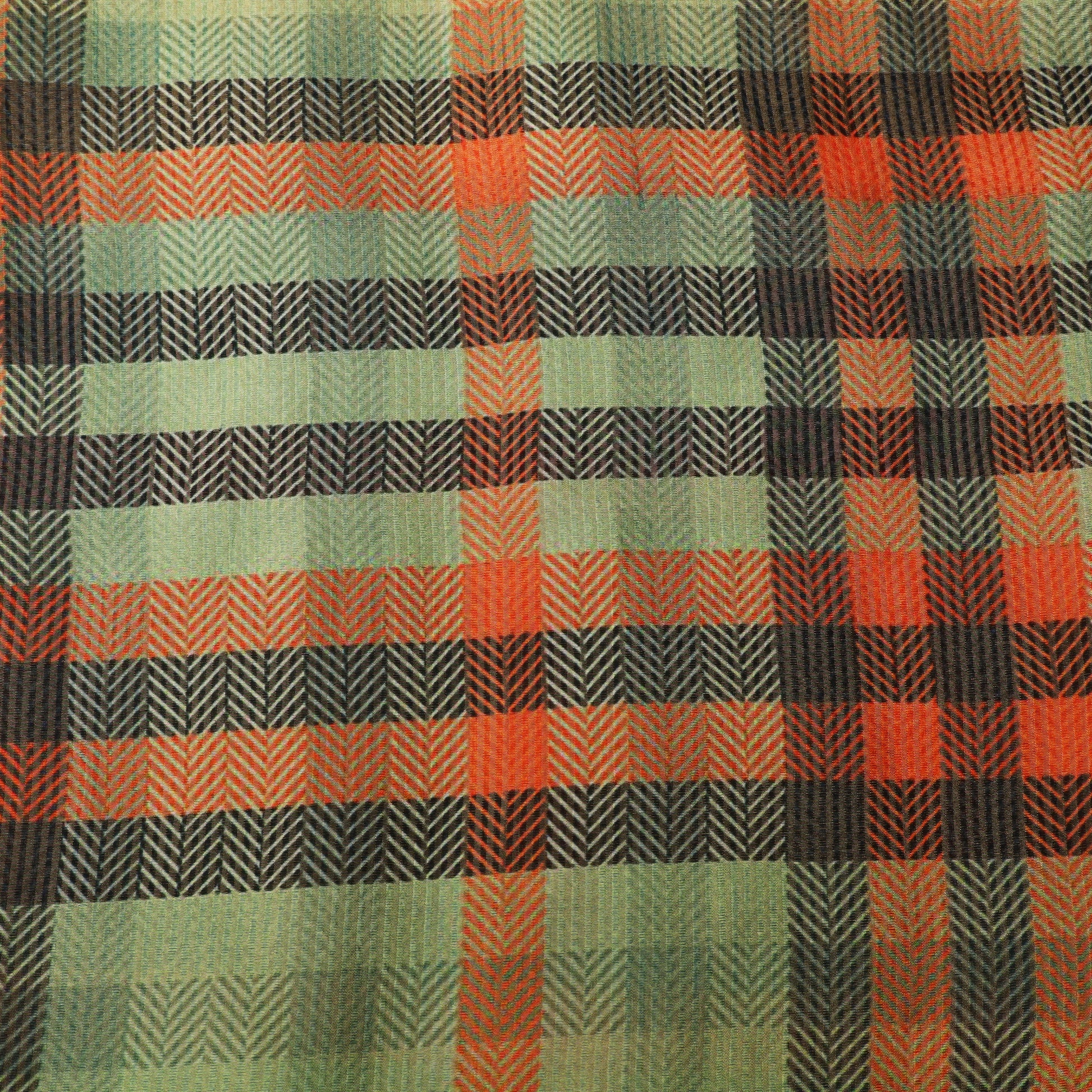 Elevate your ethnic creations with this Pure Tissue Brocade Fabric, crafted to reflect refined elegance and modern artistry. The fabric showcases a sophisticated chevron-inspired woven pattern, highlighted with rich contrasting hues that create a luxurious visual depth.
