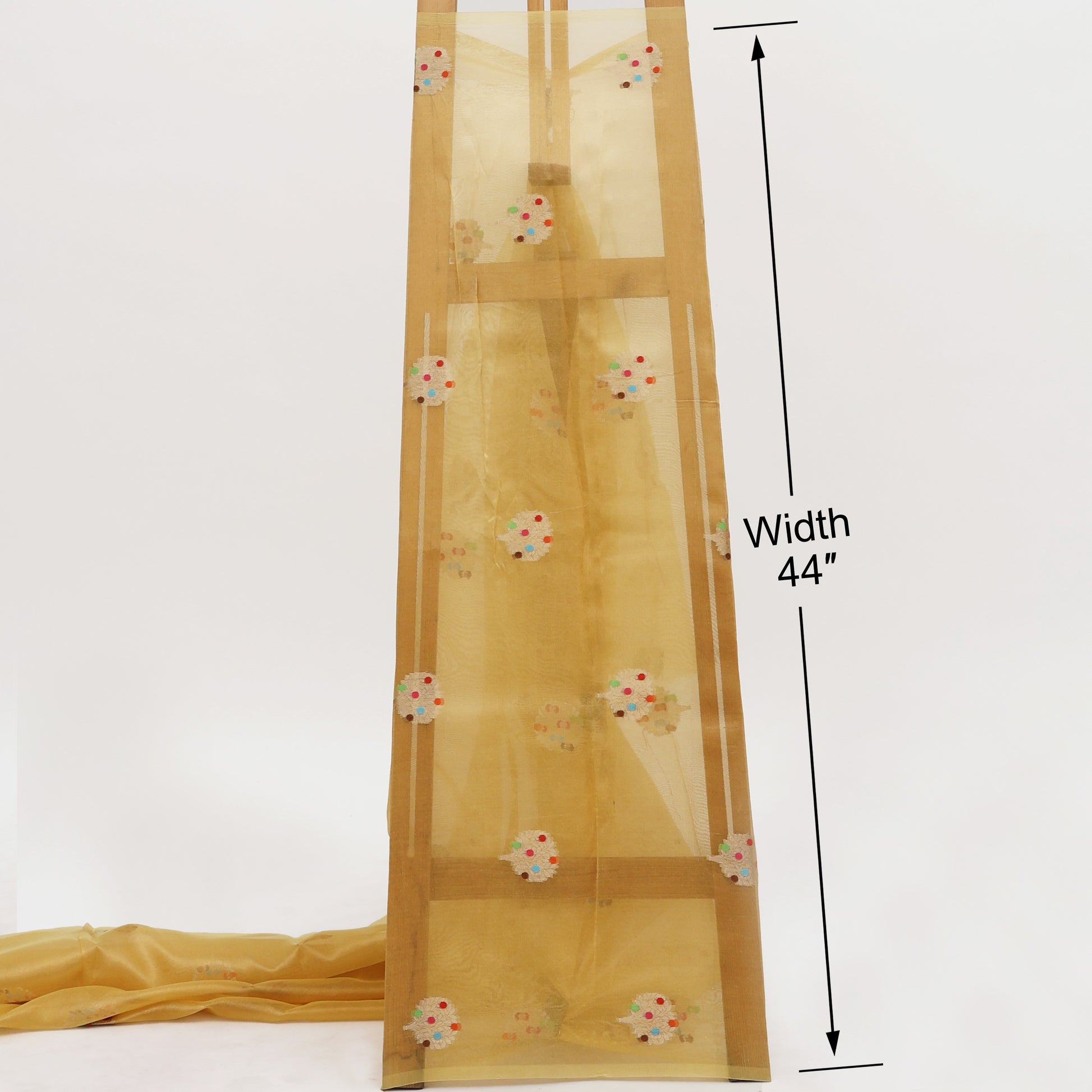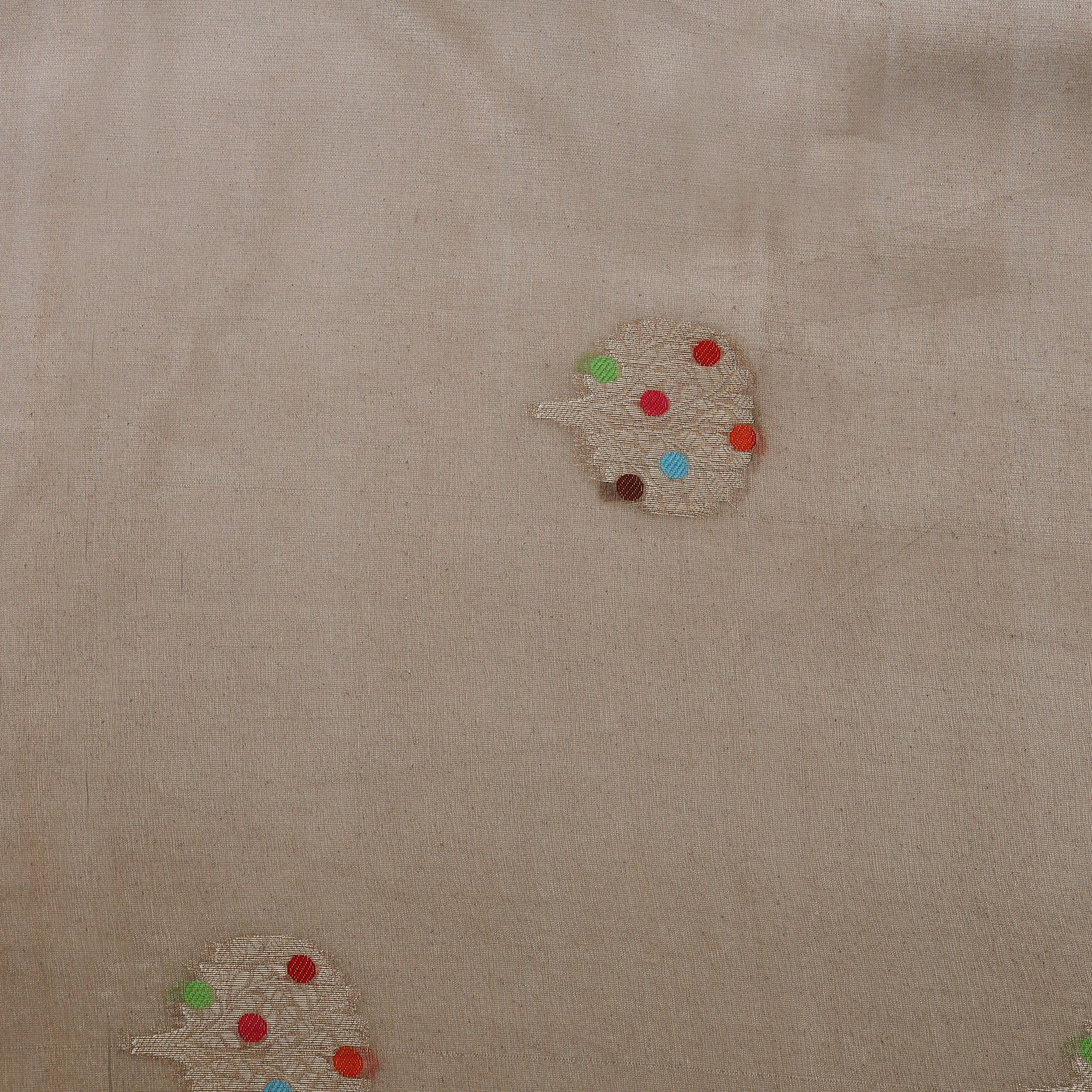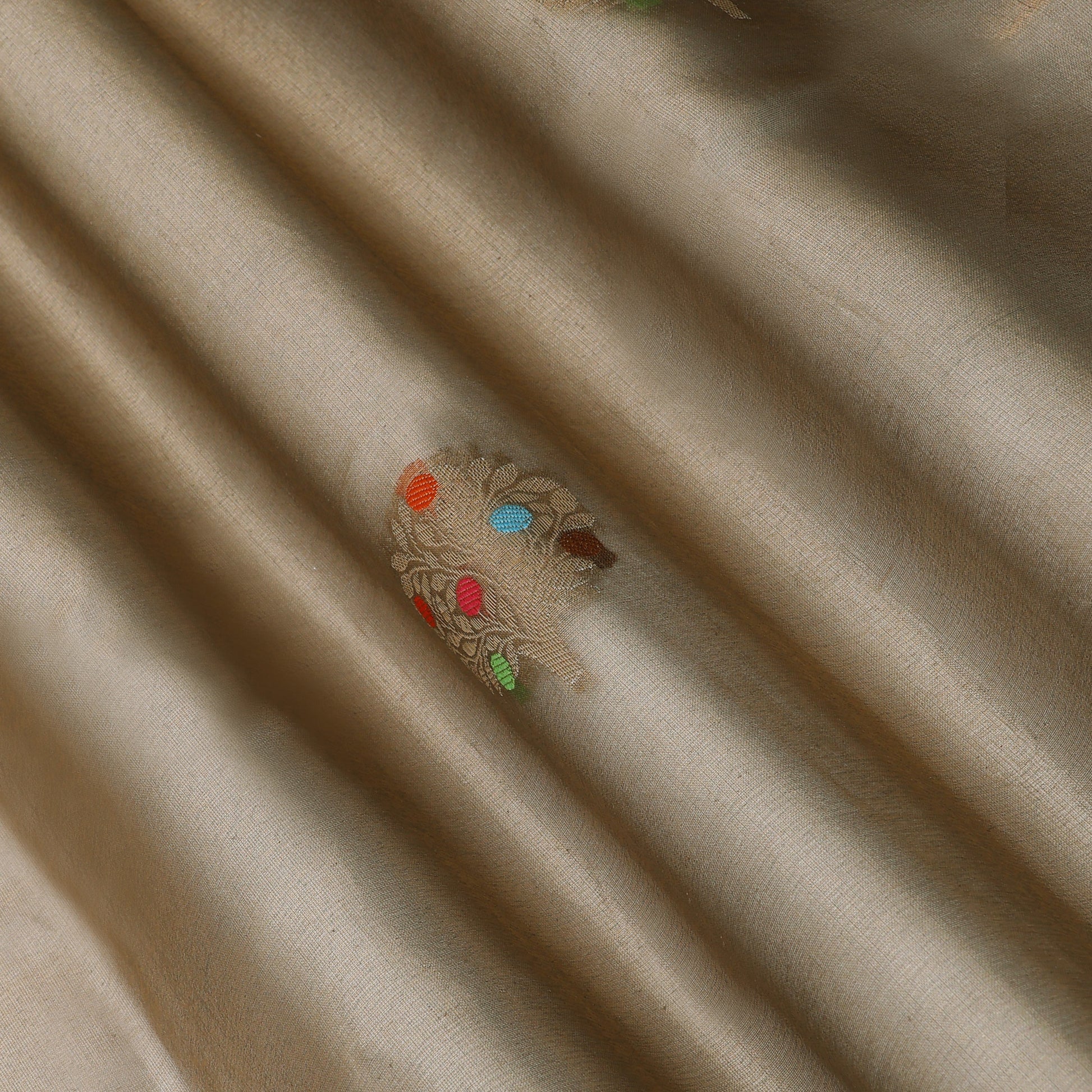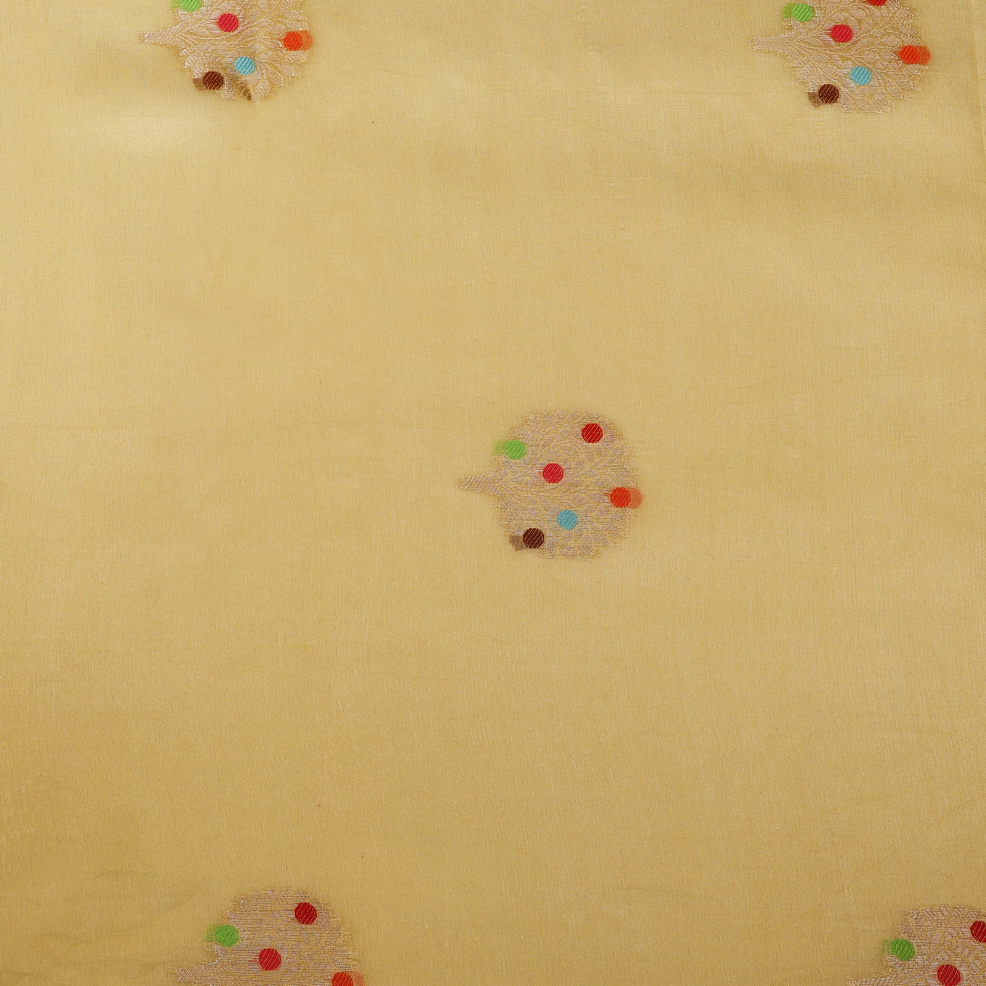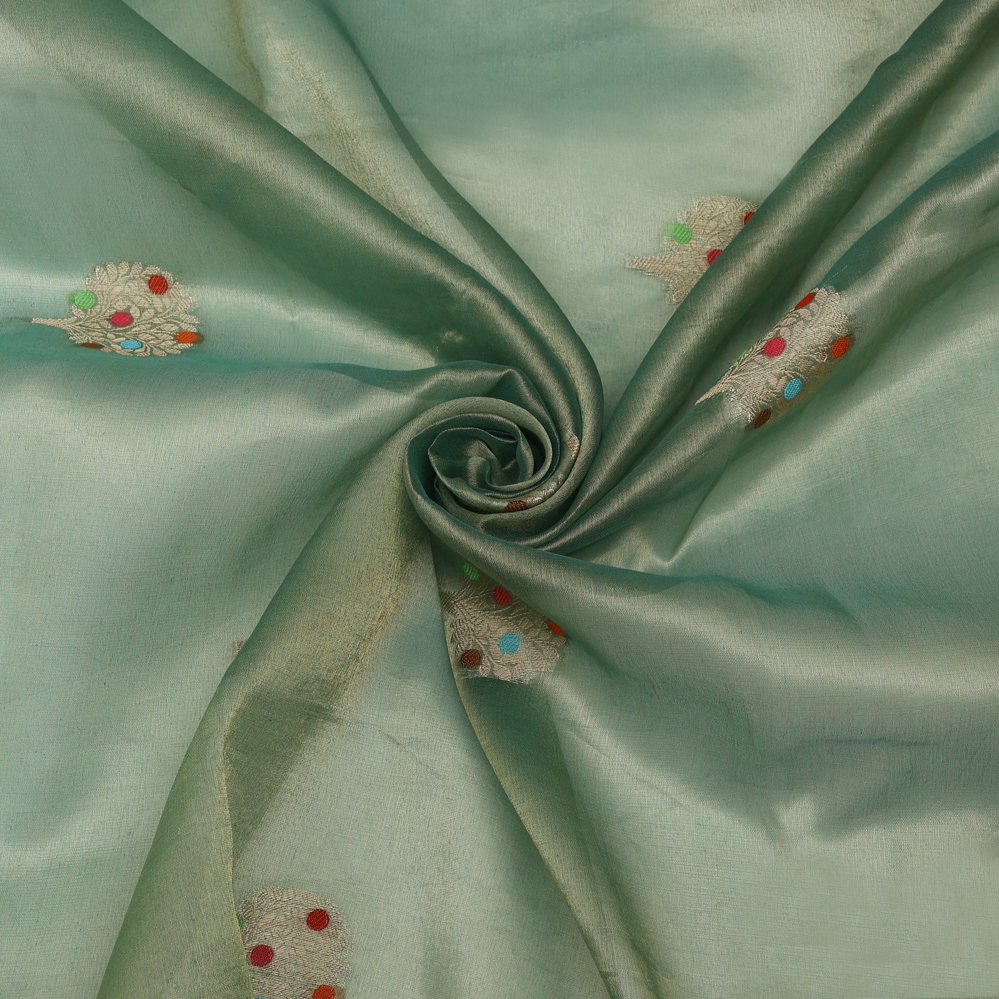 This Pure Tissue Meena Brocade Lightweight Fabric is crafted with fine tissue silk yarns, offering a lightweight feel combined with a subtle metallic sheen. The fabric features delicately woven traditional motifs highlighted with vibrant meena accents, giving it a refined and graceful appearance.