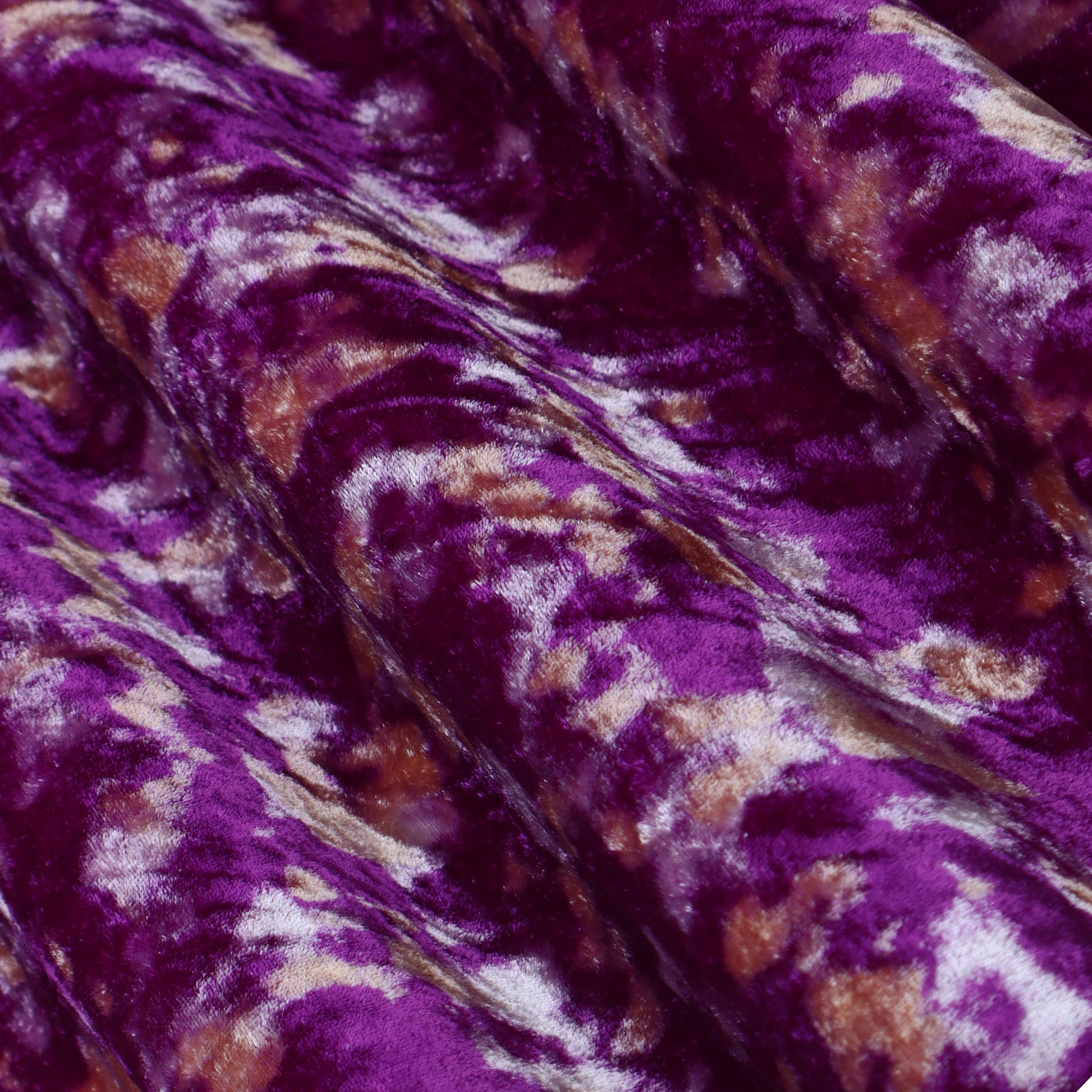 Pure Velvet Print Fabric is a luxurious and rich textile known for its soft touch, deep color absorption, and elegant surface finish. Crafted from premium-quality velvet, this fabric features a smooth, plush texture that gives a royal and sophisticated appeal. The printed designs appear vibrant and sharp on the velvet base, enhancing the depth and richness of every motif.