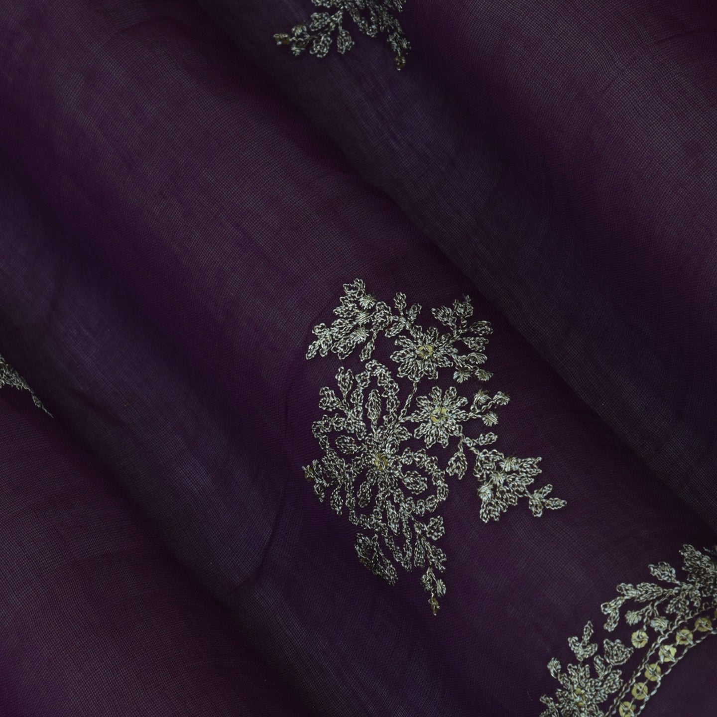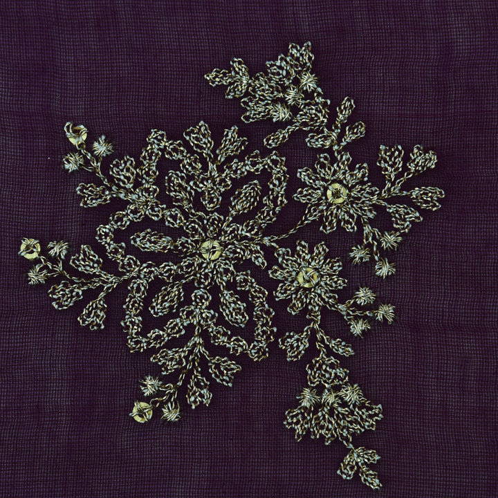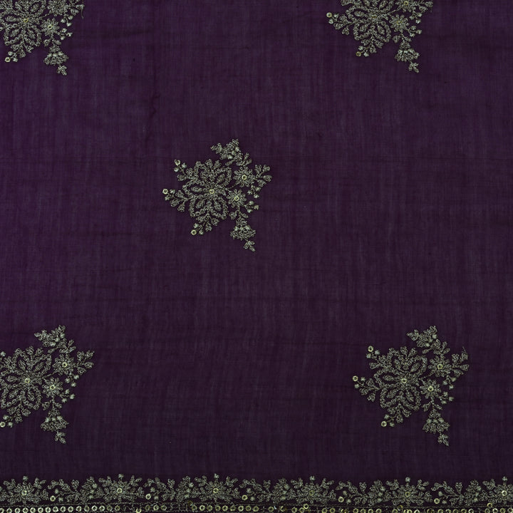 Purple Color Chanderi Embroidery Fabric