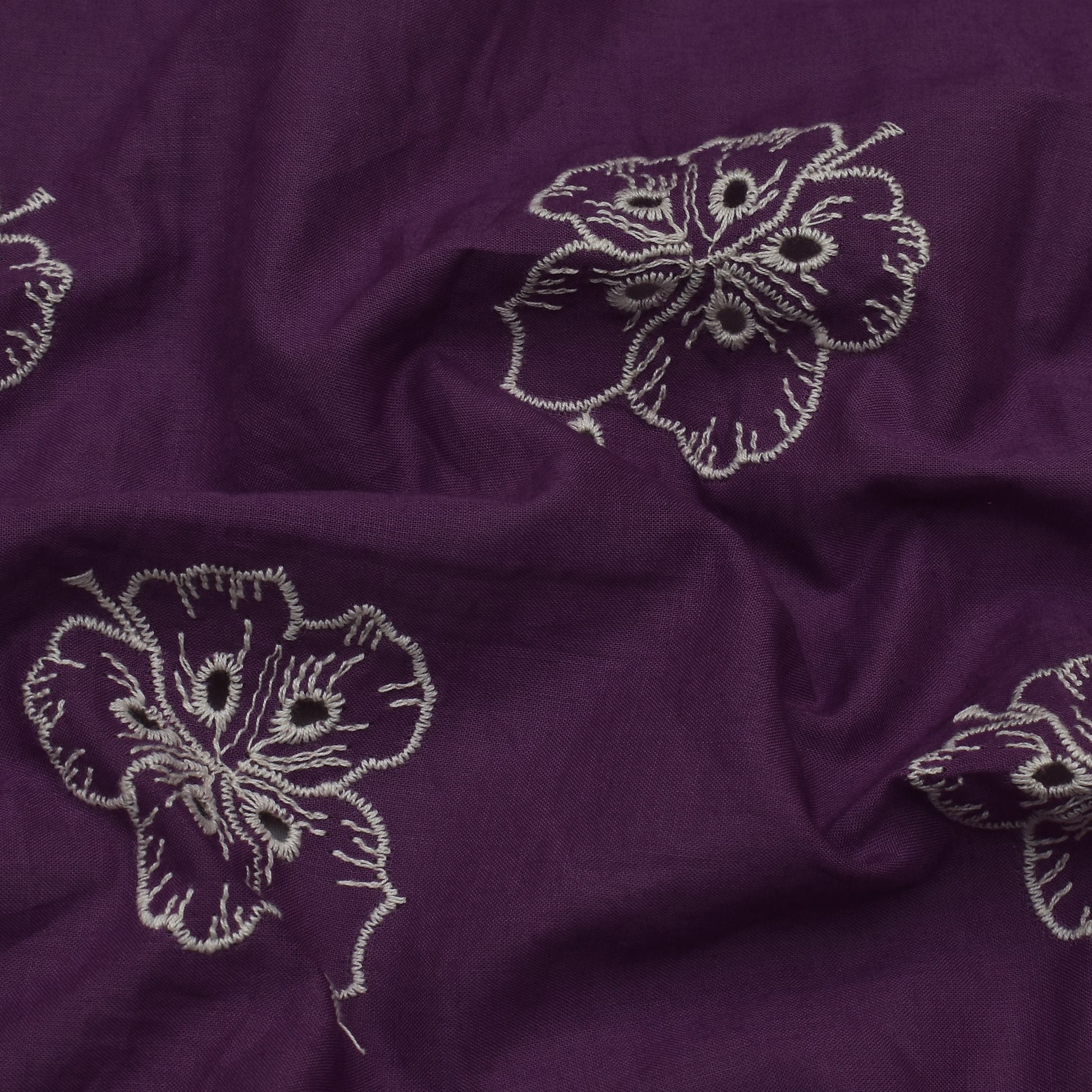 This purple color cotton fabric features beautiful chikan embroidery, adding a touch of elegance and intricate design to any project. Made of high-quality cotton, it offers both durability and comfort. Perfect for clothing, home decor, or crafts, this fabric will elevate any creation with its stunning color and expert embroidery.