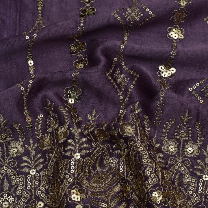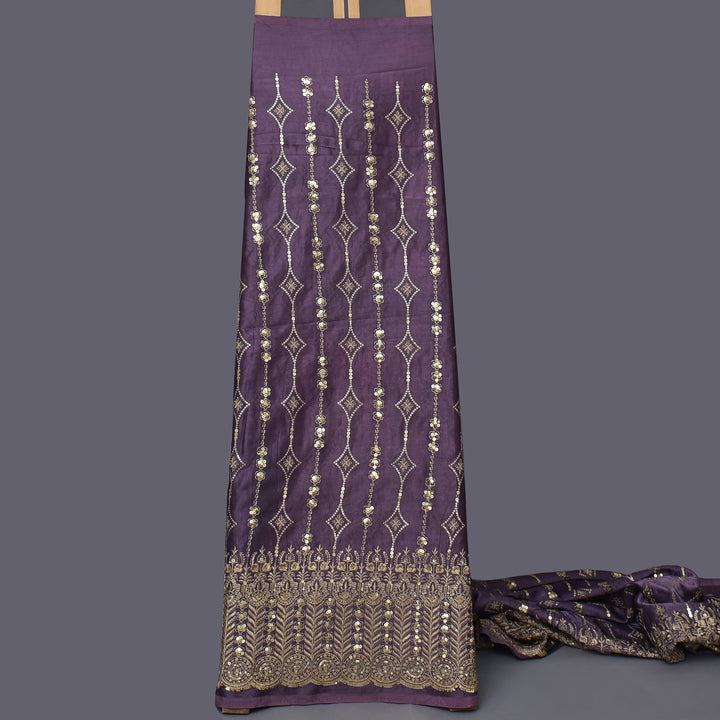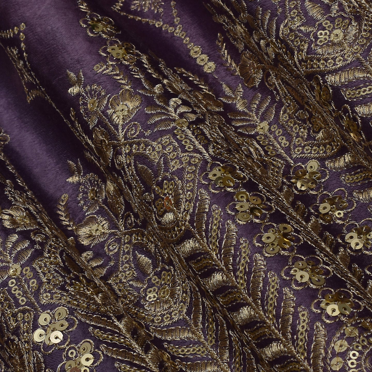 This purple Gajji silk fabric boasts intricate embroidery, adding a touch of elegance to any outfit. Made from high-quality silk, it offers luxurious softness and a smooth feel against the skin. Perfect for creating stunning dresses, blouses, and more. Elevate your wardrobe with this beautiful and versatile fabric.