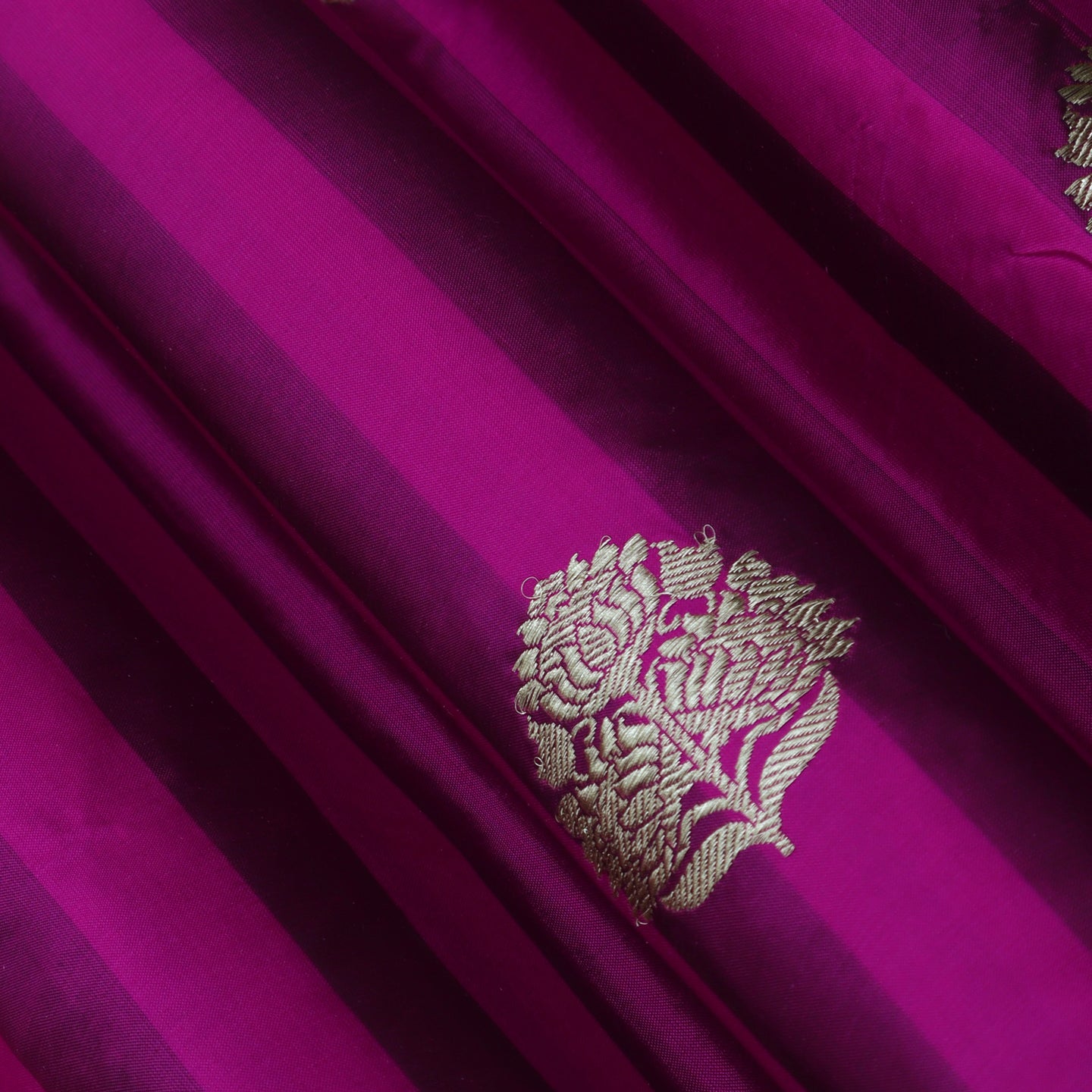 Expertly crafted from luxurious Kadwa silk, our Purple Color Brocade Fabric boasts intricate designs and a vibrant color that will elevate any garment or project. Embrace the timeless elegance and superior quality of this fabric, perfect for special occasions or adding a touch of sophistication to your wardrobe.