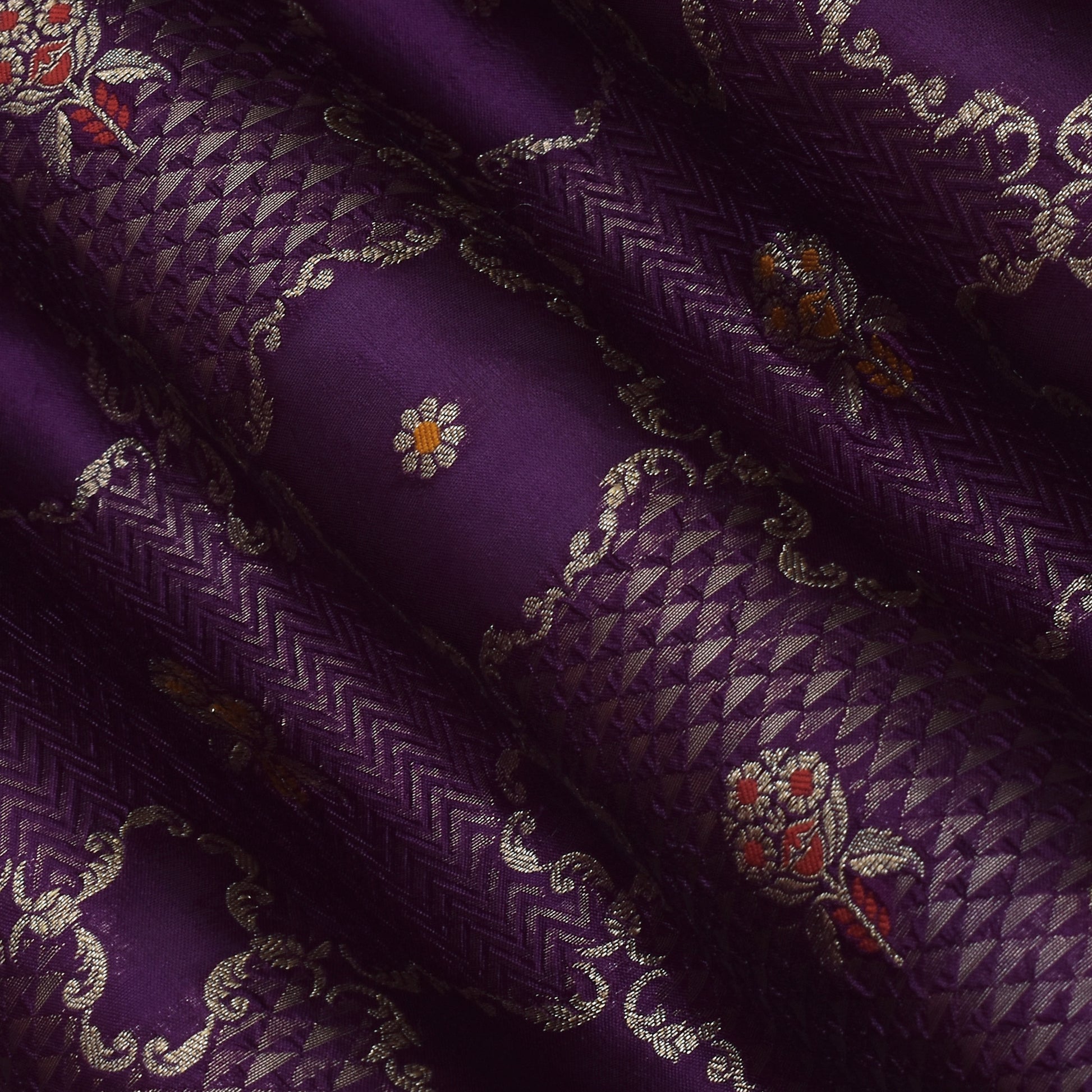 Experience the luxurious feel and rich color of our Purple Color Katan Meena Brocade Fabric. Made from high-quality materials, this fabric boasts intricate patterns and a smooth, comfortable texture. Perfect for adding a touch of elegance to any project. Upgrade your crafting game today!