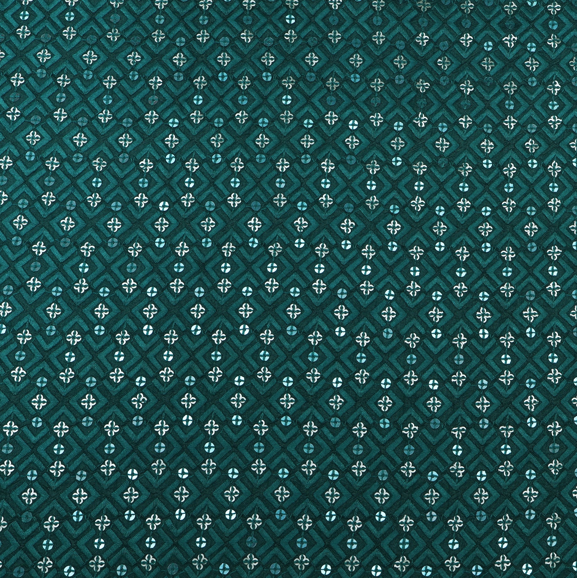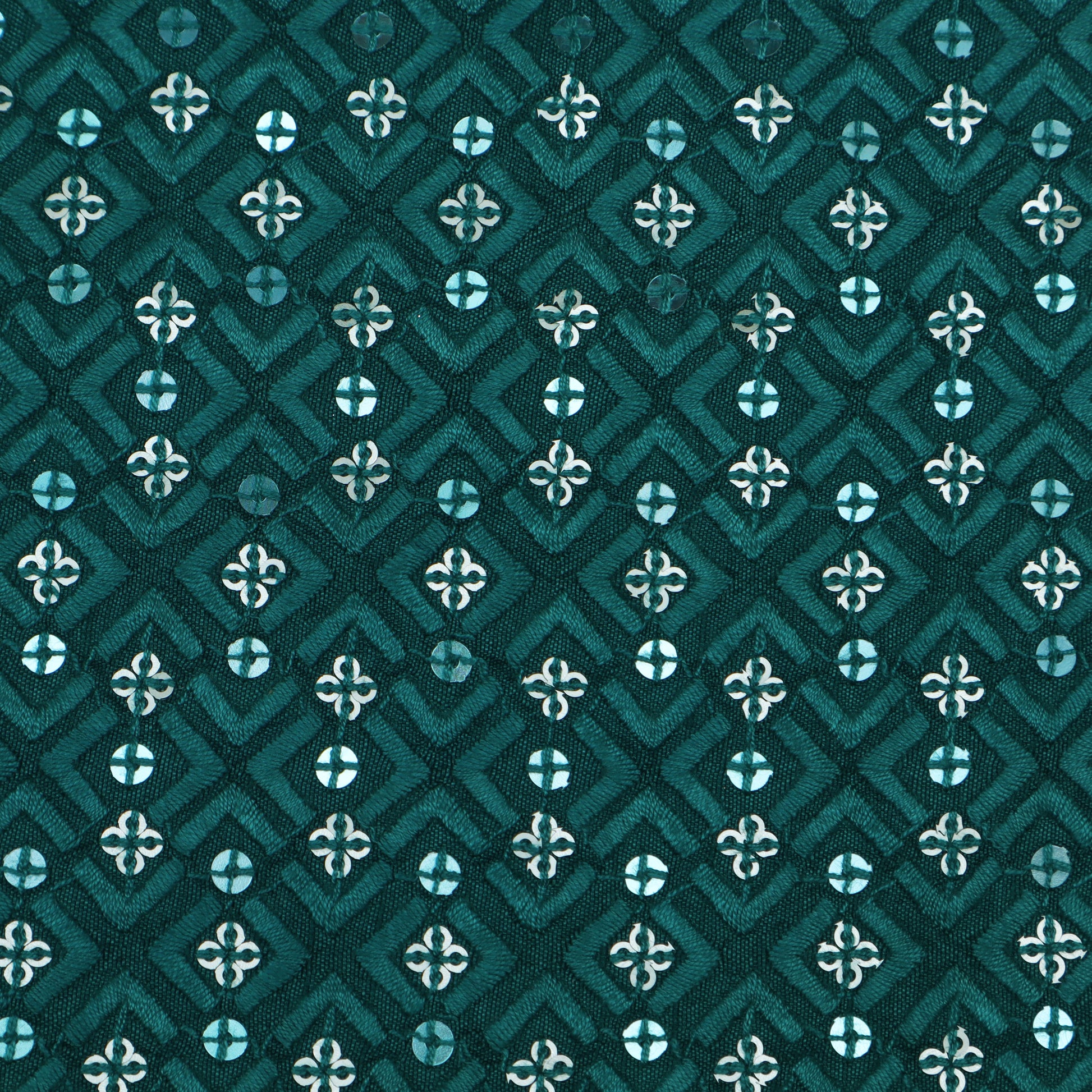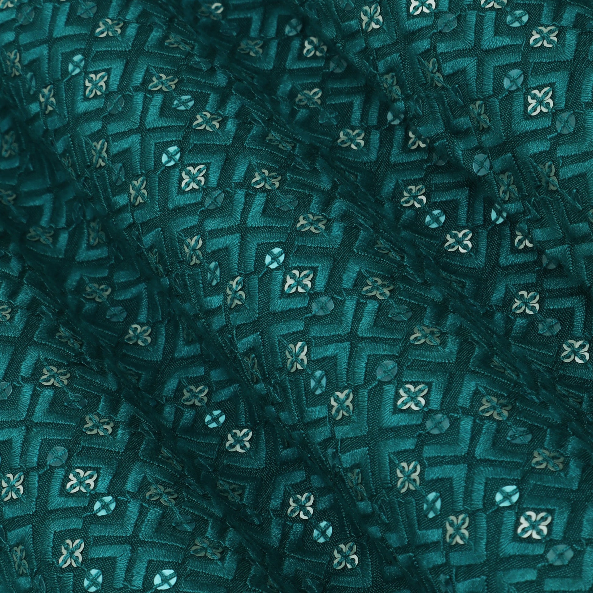 Discover the intricate elegance of our Rama Green Color Slub Silk Embroidery Fabric. Made from high-quality silk, this fabric features delicate embroidery that adds a touch of sophistication to any garment. With its rich color and luxurious texture, it's perfect for creating a statement piece. Elevate your wardrobe with this stunning fabric.