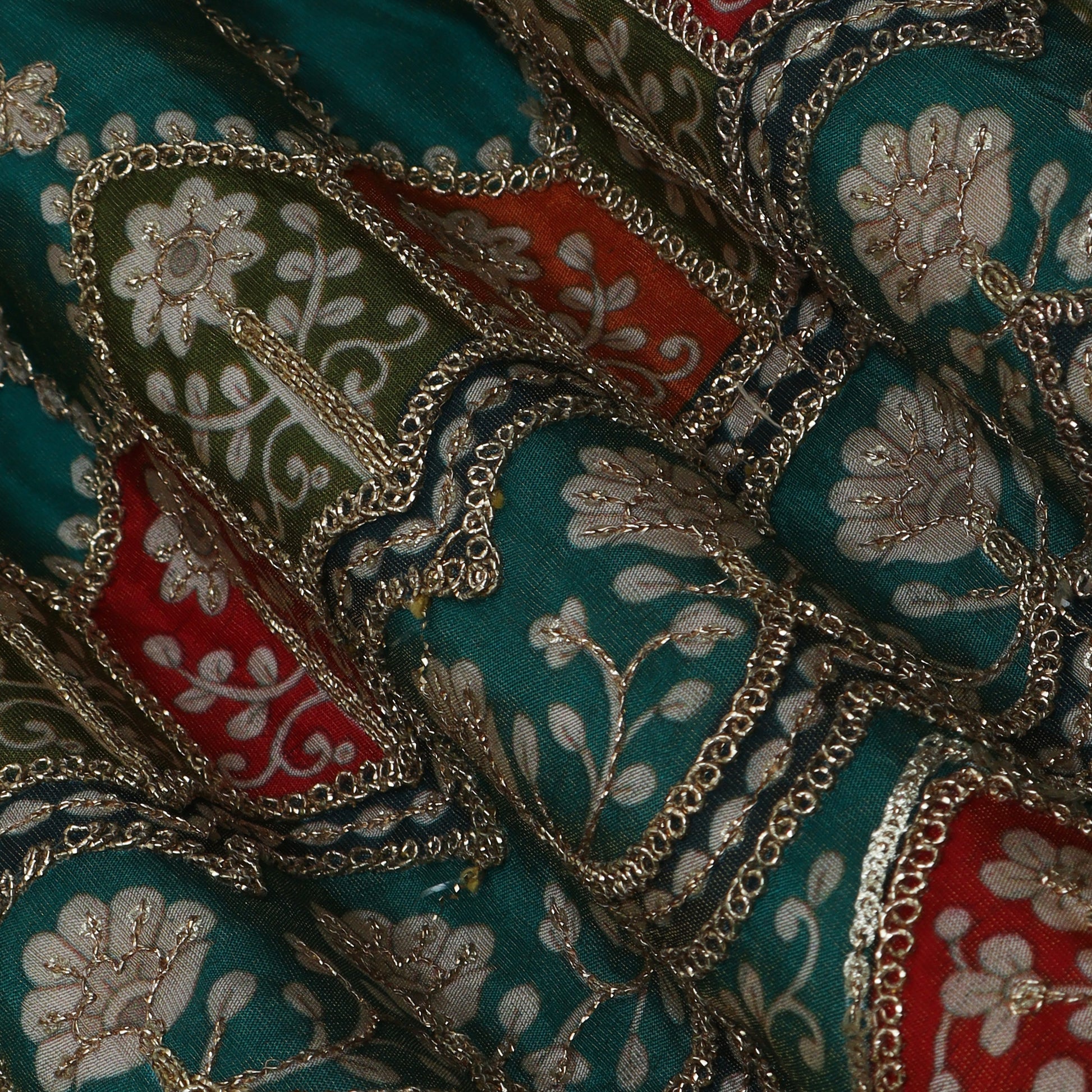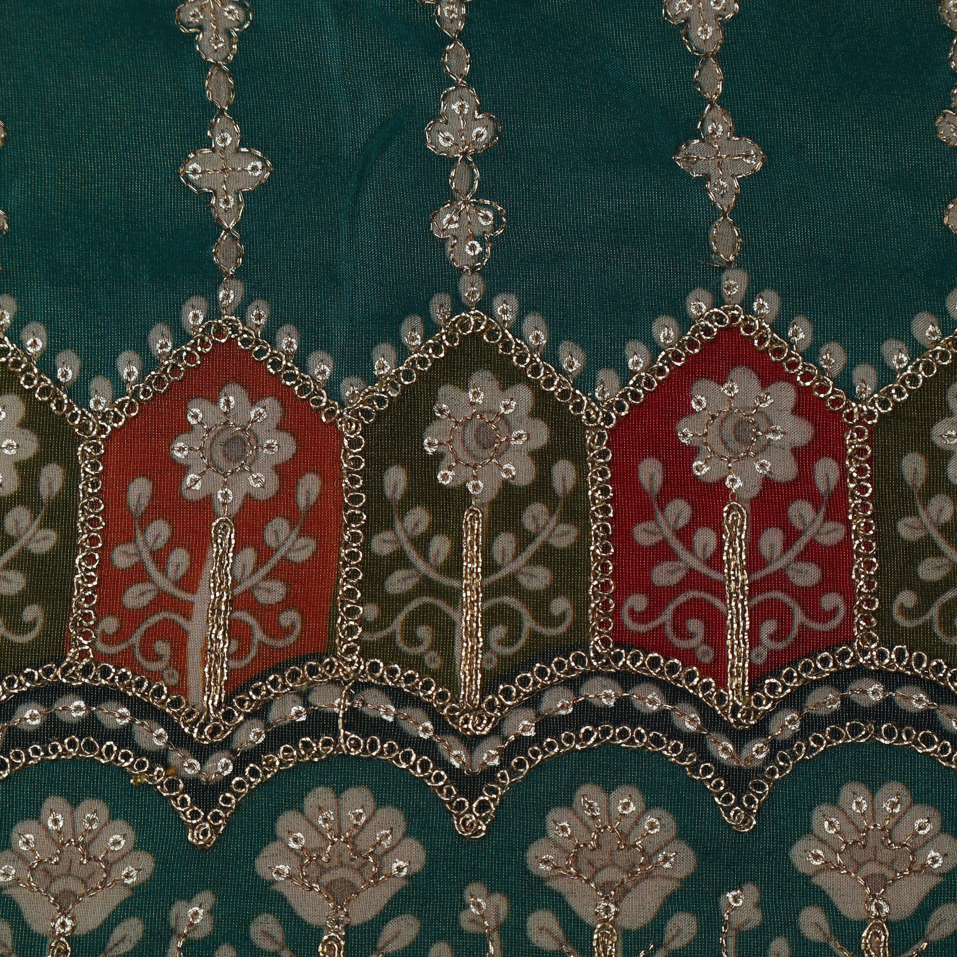 Rama Green Color Tissue Embroidery Fabric