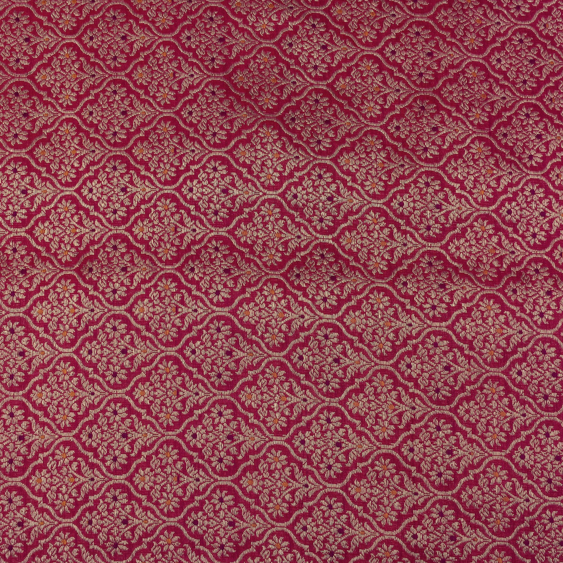 This Rani Color Brocade Fabric is expertly woven with intricate designs and bright colors, making it perfect for traditional and formal occasions. Made with high-quality materials, its durability and beauty will elevate any outfit. With its luxurious feel and stunning appearance, this fabric is a truly valuable addition to any wardrobe.