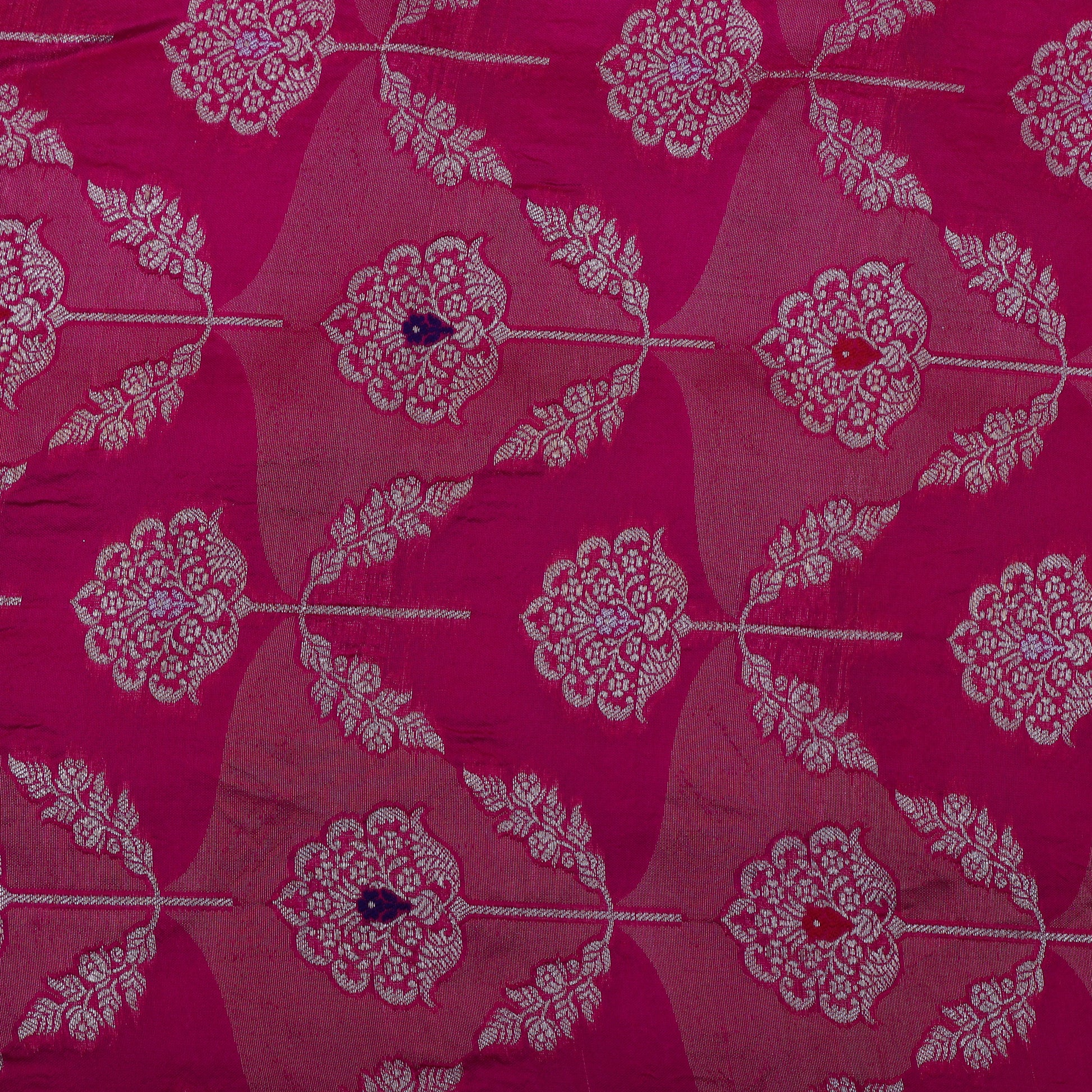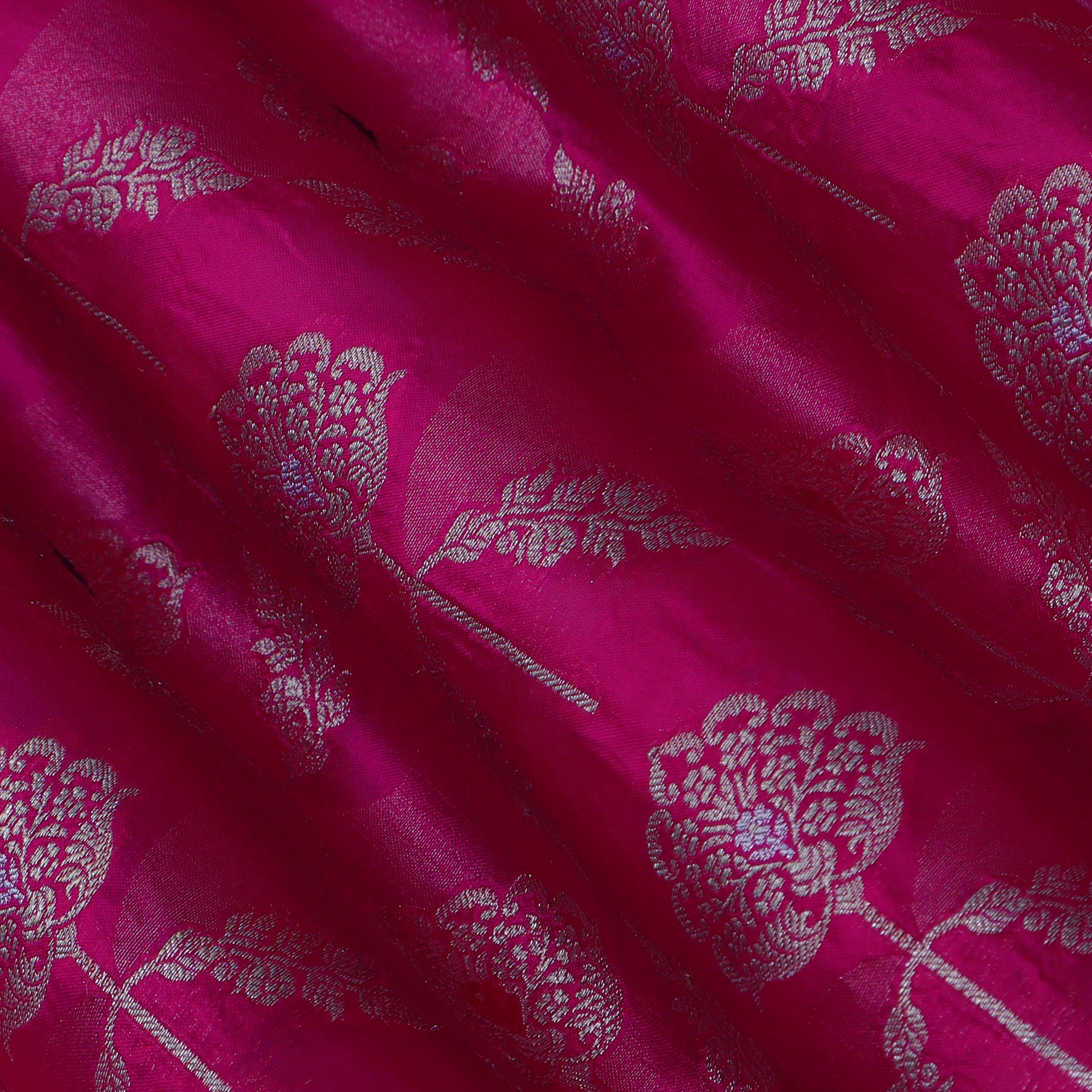This elegant Rani Color Katan Meena Brocade Fabric is a timeless material crafted with high quality silk and intricate meenakari work. Perfect for creating stunning traditional attire, this fabric is sure to elevate any design with its rich color and luxurious texture.