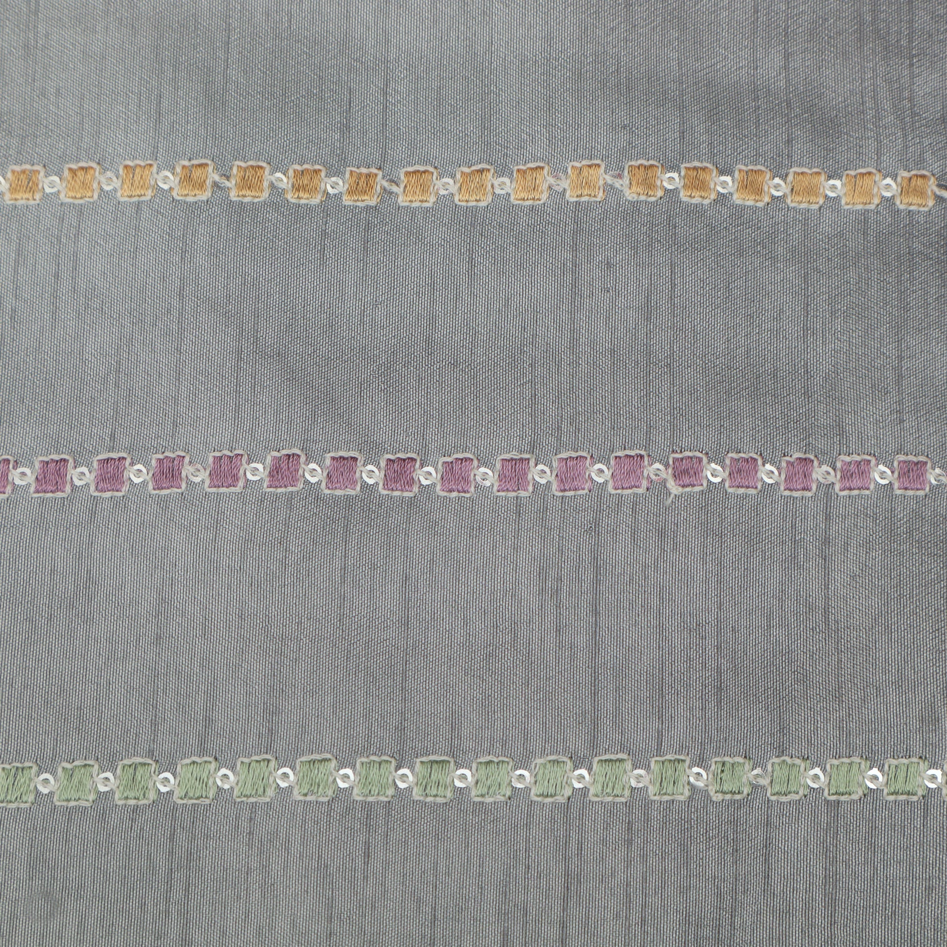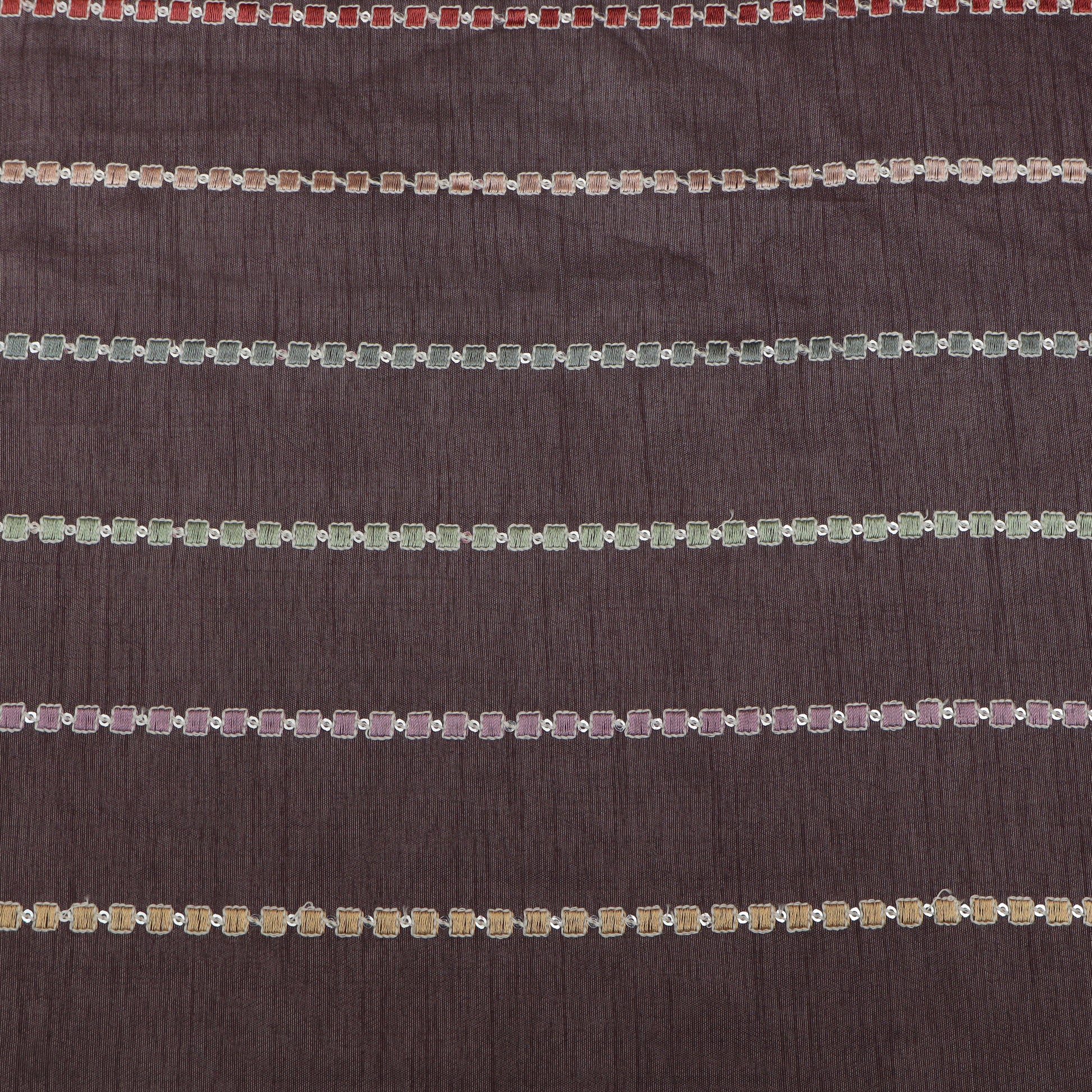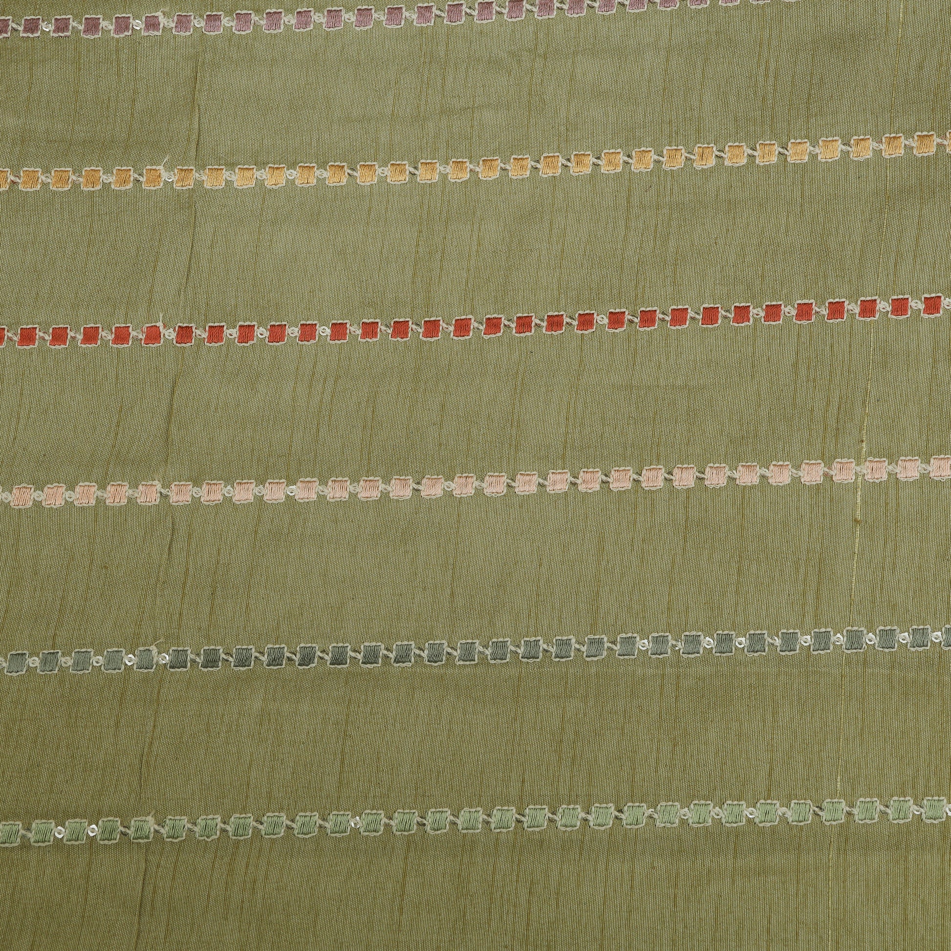 This elegant Raw Silk Embroidery Fabric showcases a refined blend of texture and craftsmanship. Crafted on a rich, earthy-toned raw silk base, the fabric features delicate linear embroidery arranged in graceful horizontal patterns. The subtle multicolour threadwork adds depth and visual interest without overpowering the fabric’s natural sophistication.