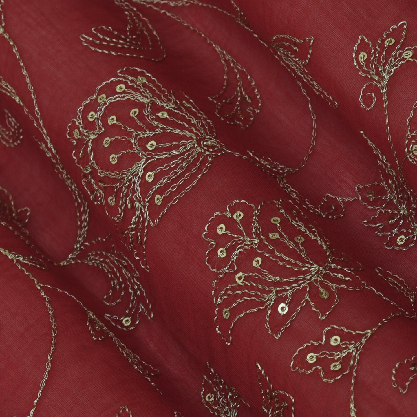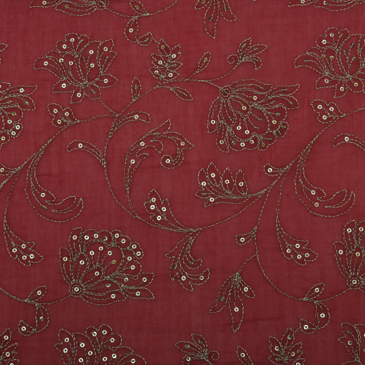 Red Color Chanderi Embroidery Fabric