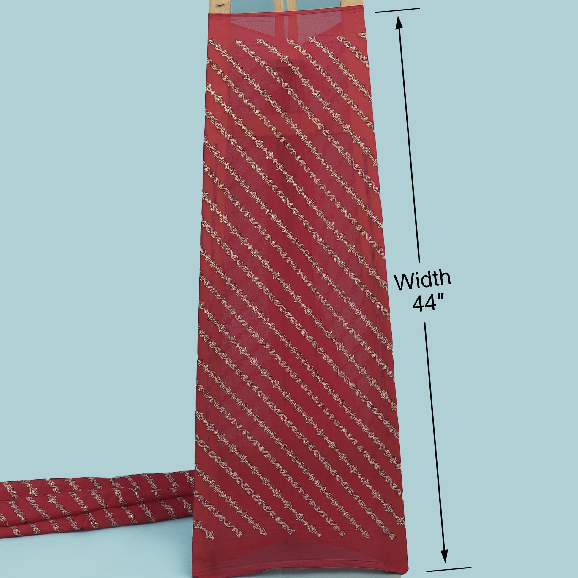 This high-quality Red Color Chanderi Stripe Fabric is expertly crafted with precision and care. Made from a luxurious chanderi blend, this fabric offers both durability and style. Its vibrant red color and chic stripe design make it the perfect choice for elegant and sophisticated garments. Elevate your wardrobe with this versatile fabric.