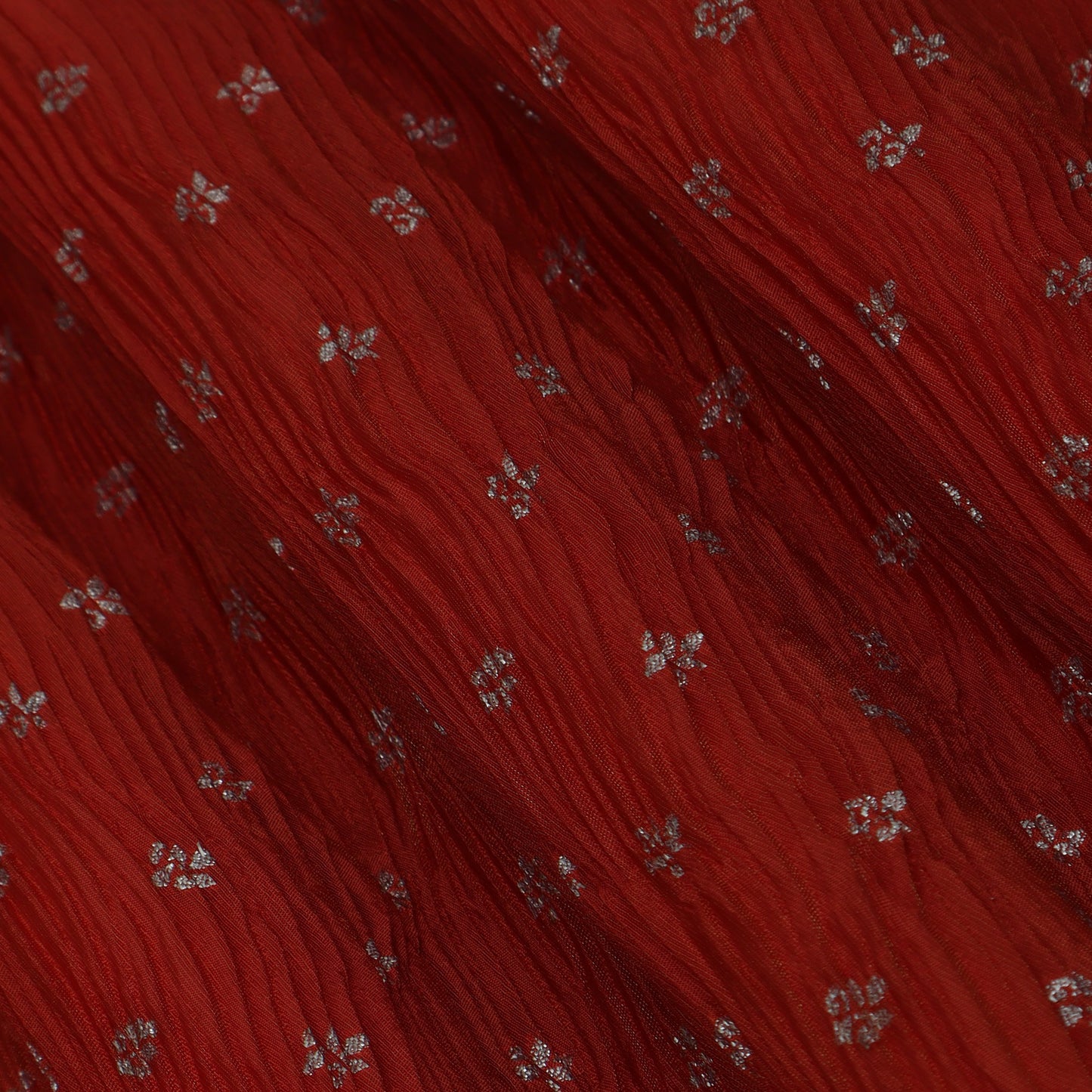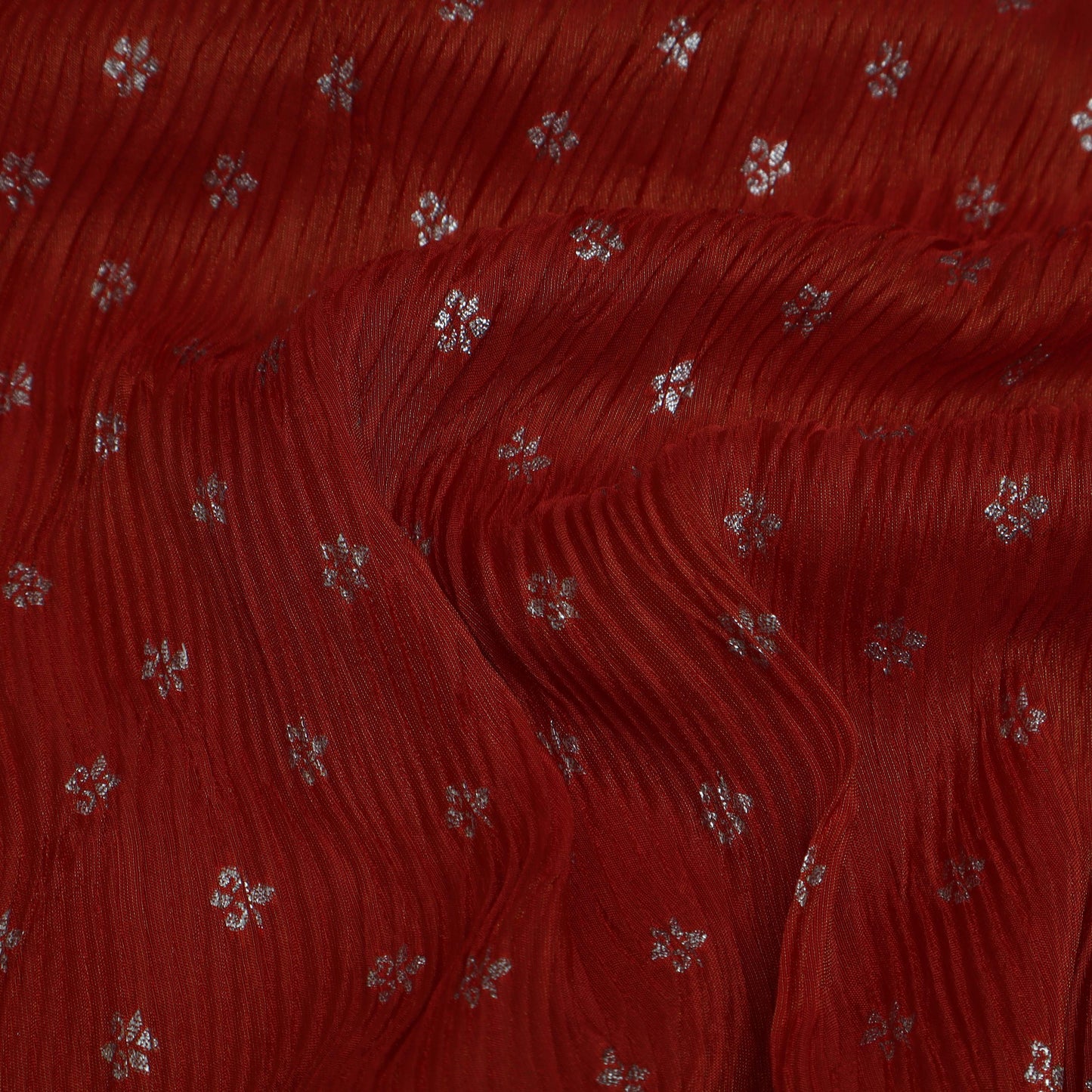This elegant Red Color Crush Tissue Jacquard Fabric features a delicate tissue jacquard pattern and a deep, rich red color. Made with premium materials, this fabric is perfect for creating luxurious drapes, upholstery, and clothing. Elevate any project with its sophisticated and timeless design.