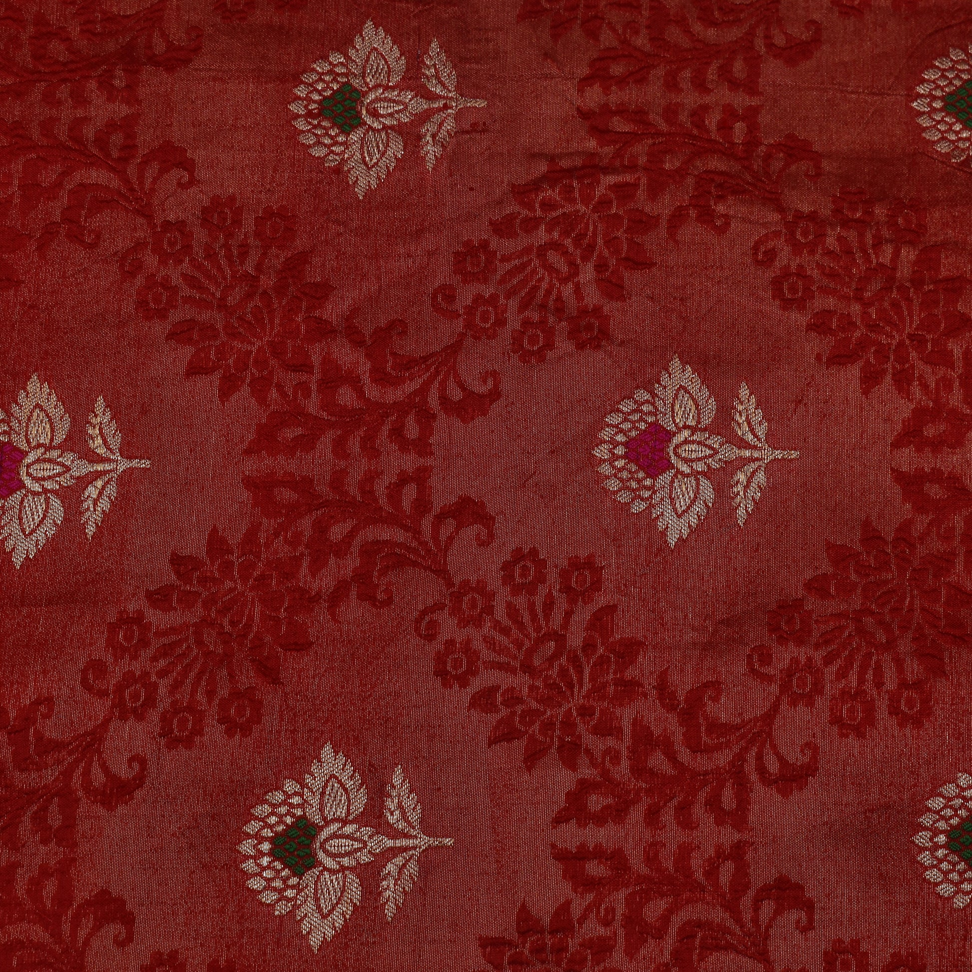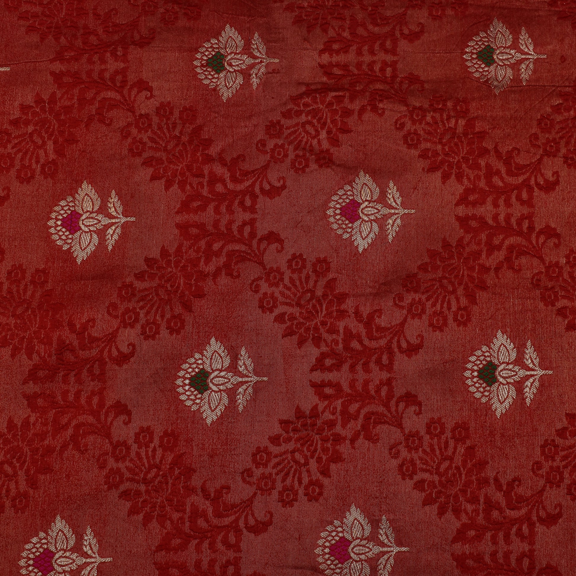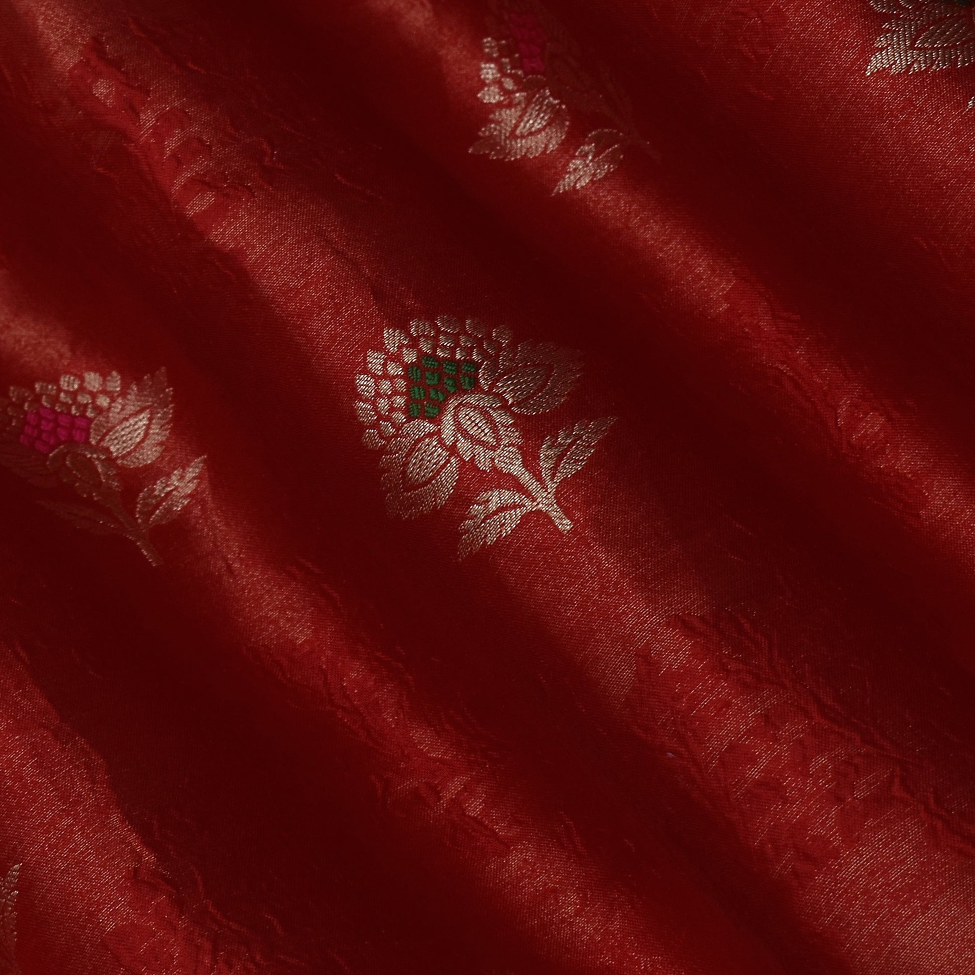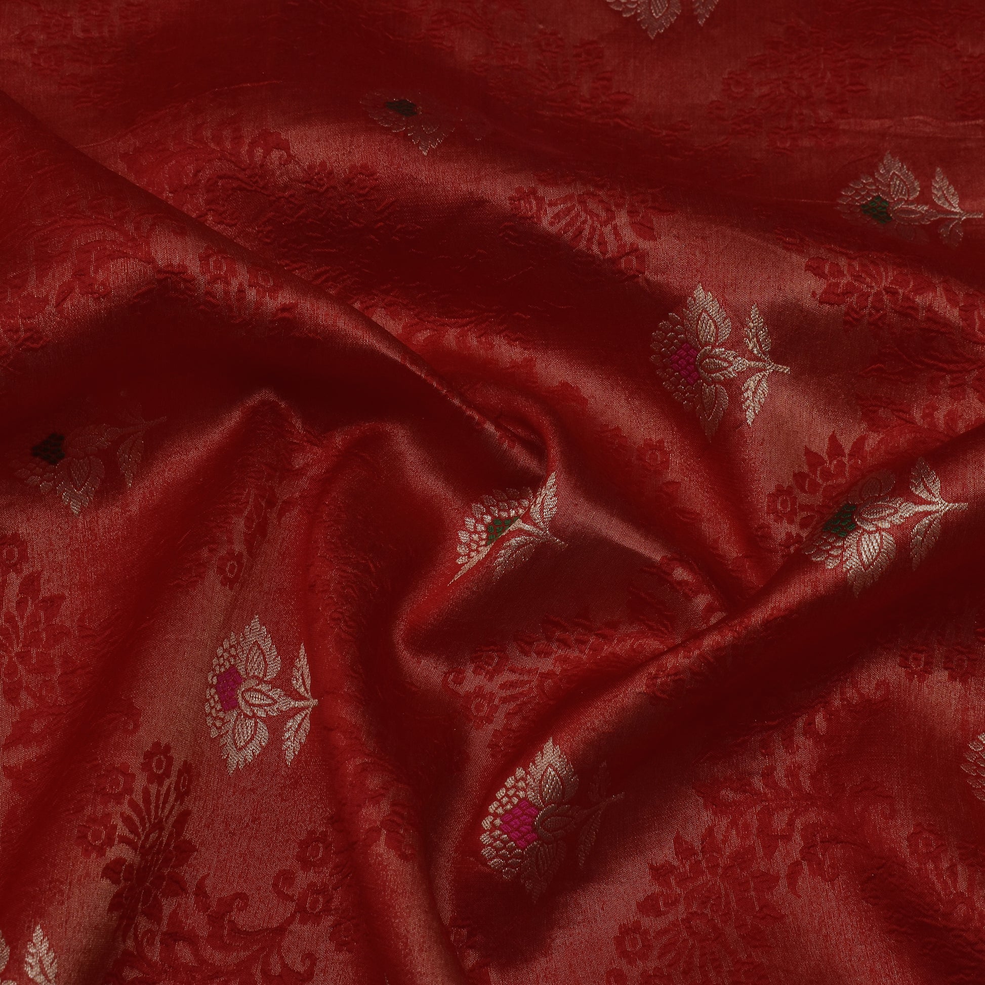 Expertly crafted from katan silk and adorned with intricate meena brocade designs, this luxurious fabric is perfect for creating stunning traditional attire. The rich red color adds vibrancy and elegance, while the high-quality material ensures durability and comfort. Elevate your wardrobe with this exquisite fabric.