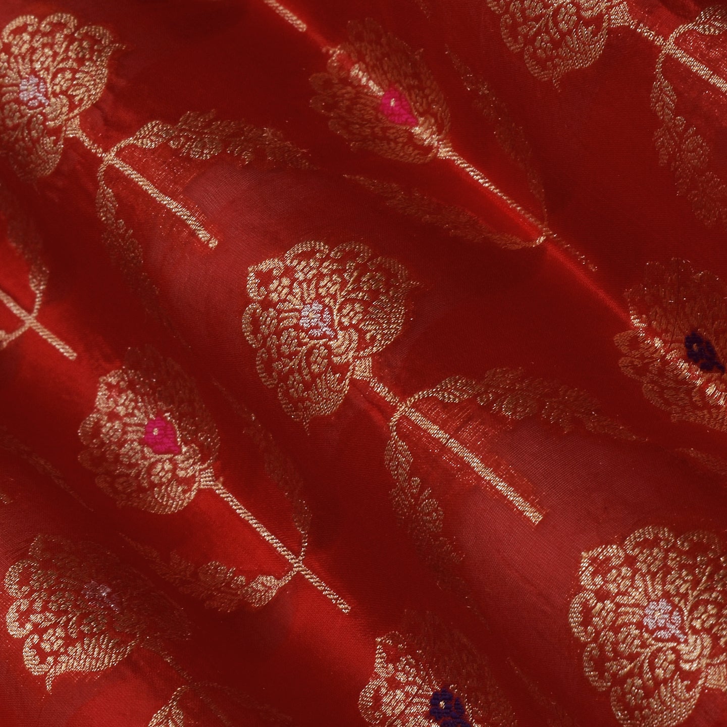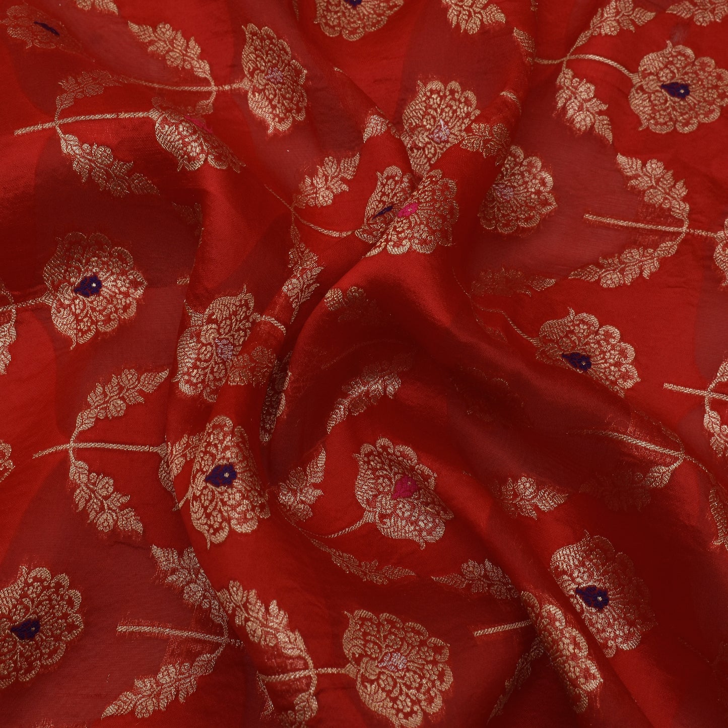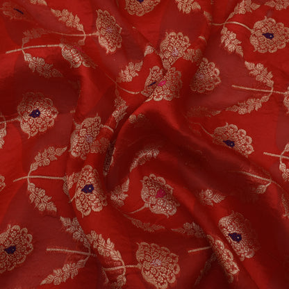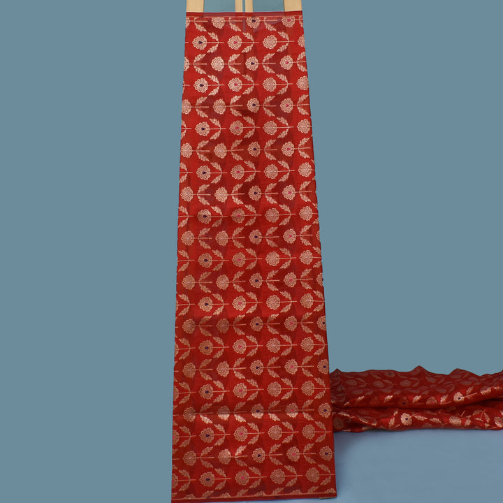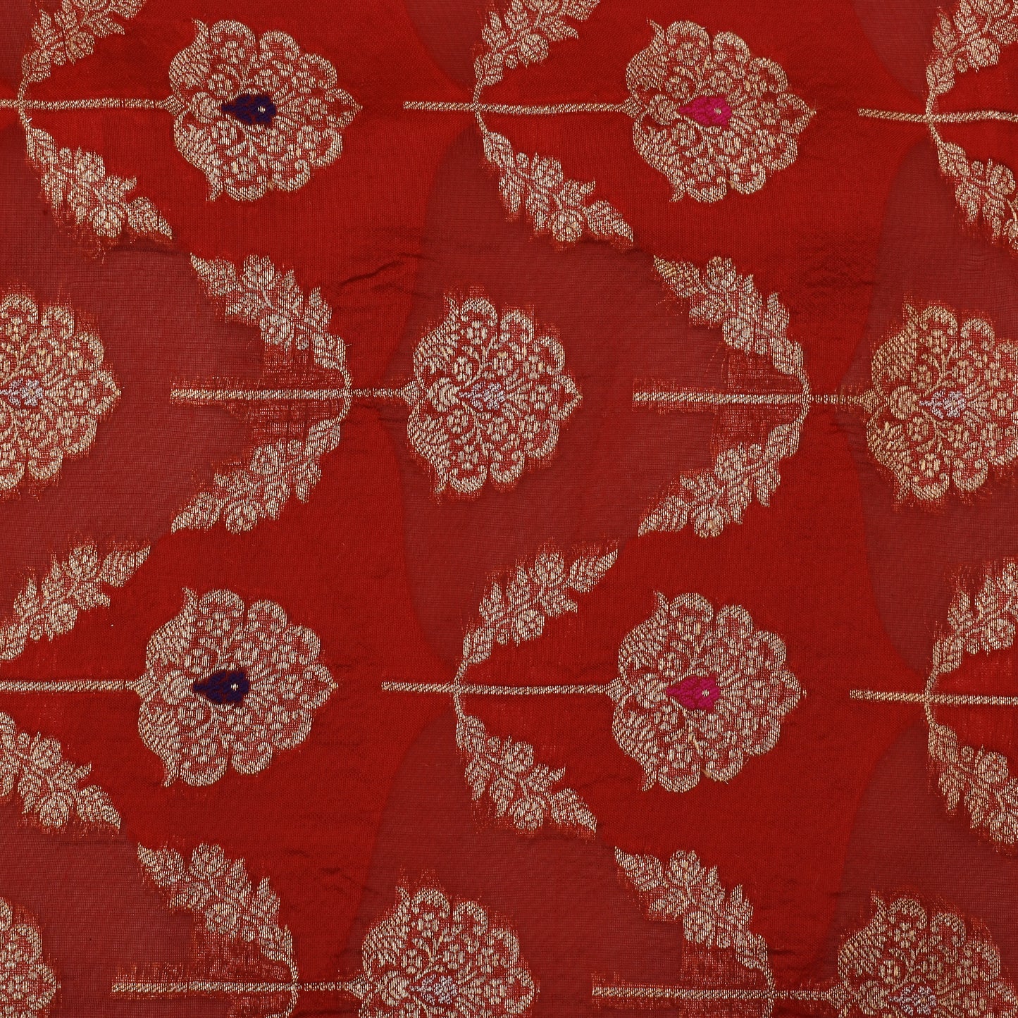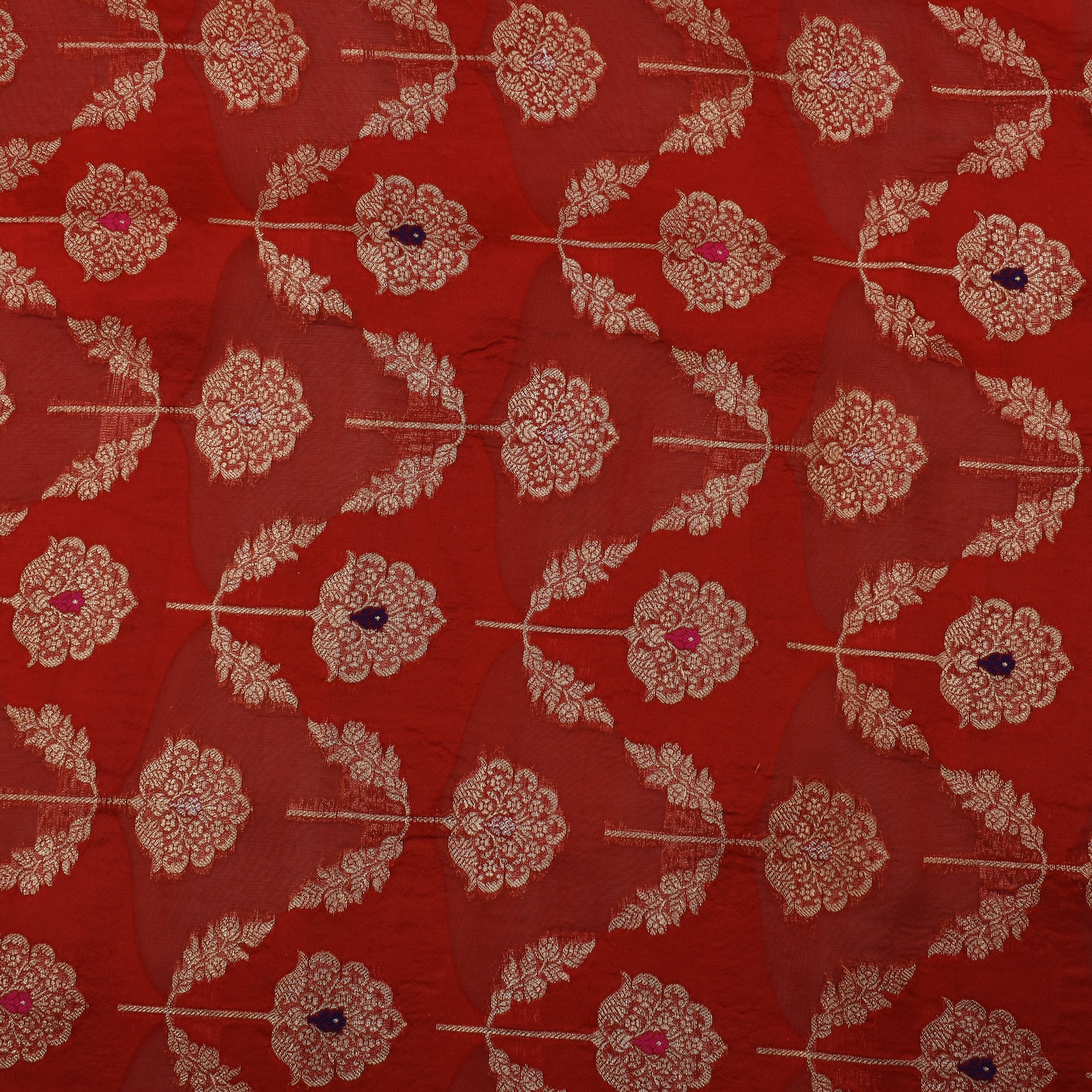 This Red Color Katan Meena Brocade Fabric is expertly woven for a luxurious feel and vibrant color. Made with high-quality materials, it offers a soft texture and stunning sheen, adding a touch of elegance to any project. Perfect for creating stylish garments or home decor pieces.