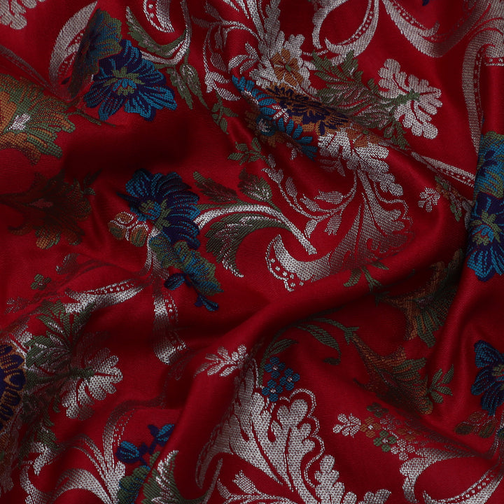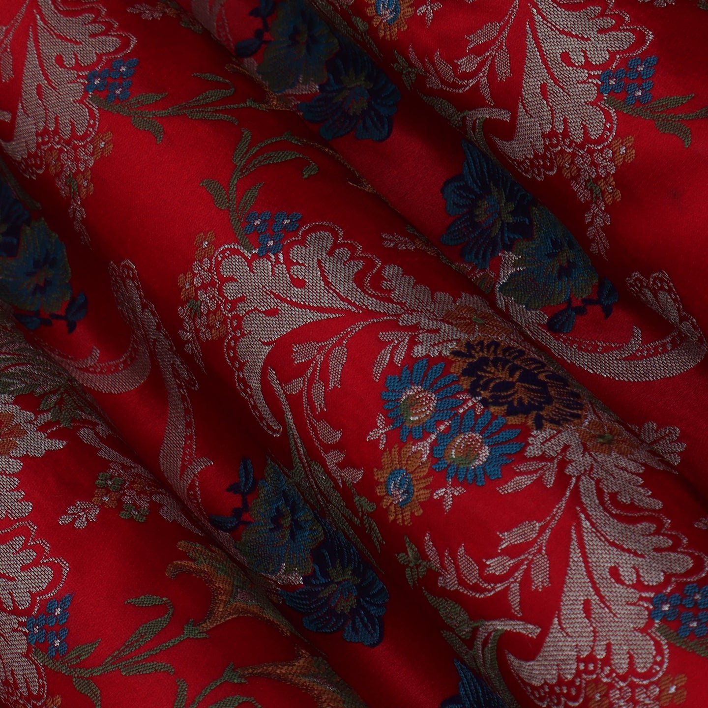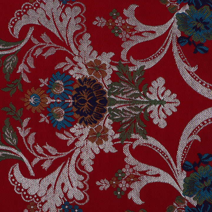 This multi-colored Kimkhab fabric is perfect for any occasion. The vibrant red hues add a touch of elegance to any outfit. Made with superior quality material, it offers both durability and style. Elevate your wardrobe with this unique and sophisticated fabric.