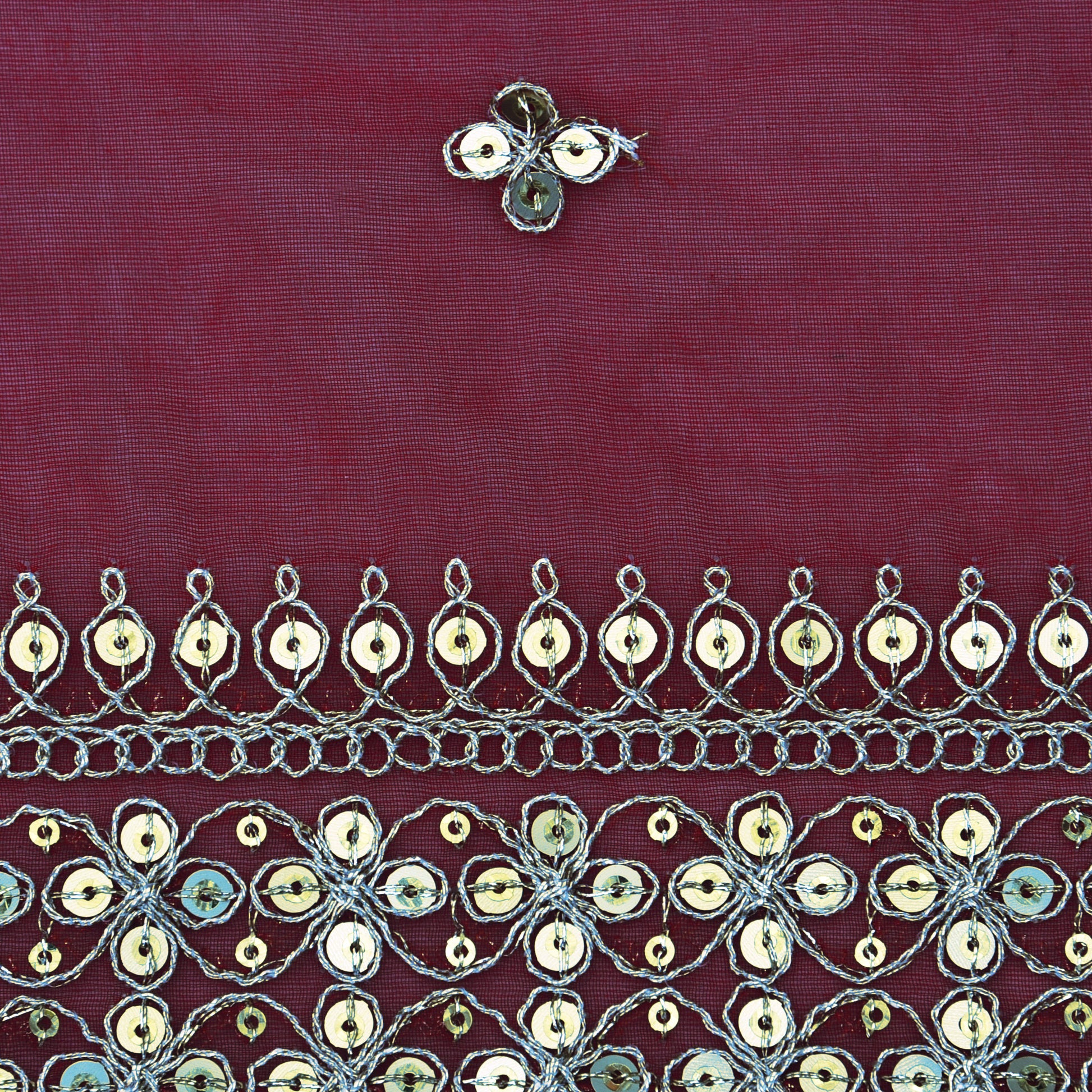 Red Color Organza Embroidery Fabric