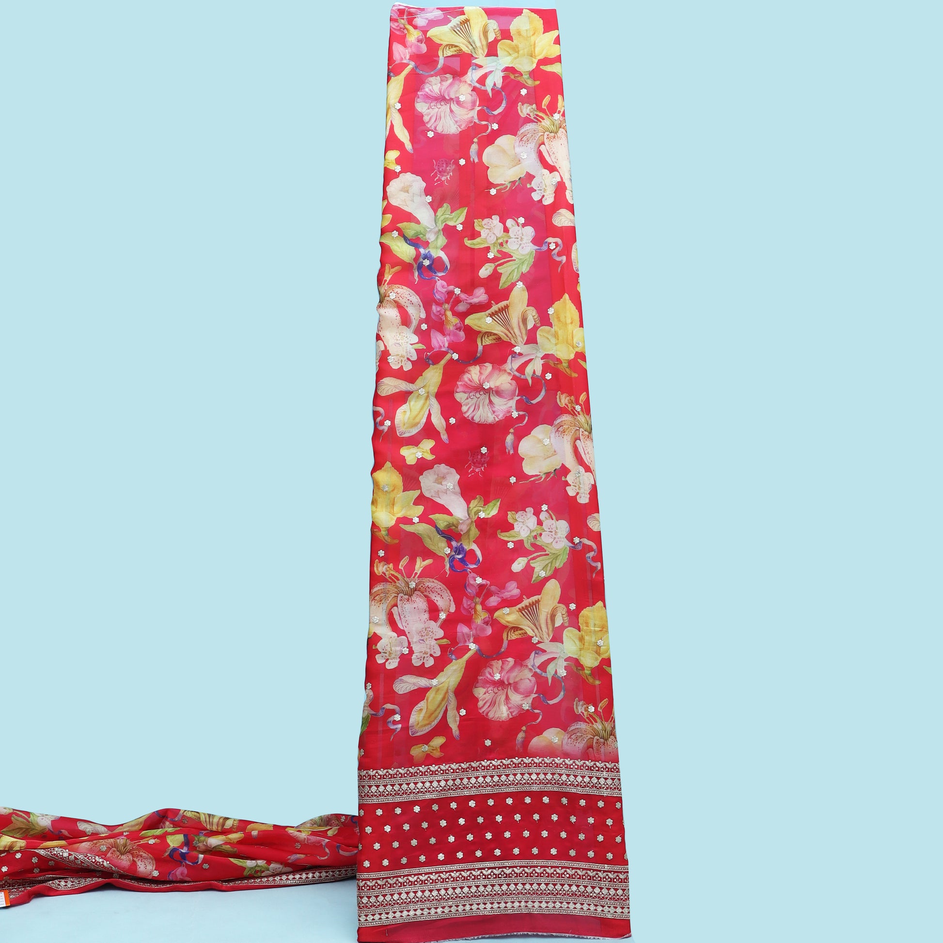 This high-quality Red Color Organza Print Embroidery Fabric is a must-have for any sewing enthusiast. With its vibrant red color and intricate print embroidery, this fabric will add a touch of elegance to any project. Made from durable materials, it offers both style and durability. Perfect for creating stunning garments and home decor items that are sure to impress.