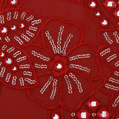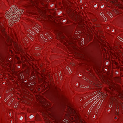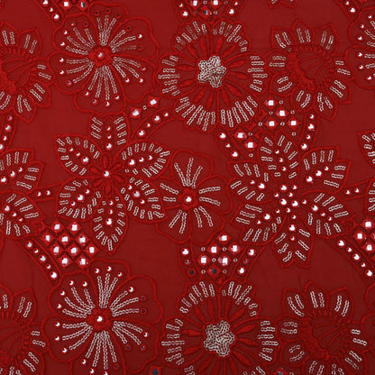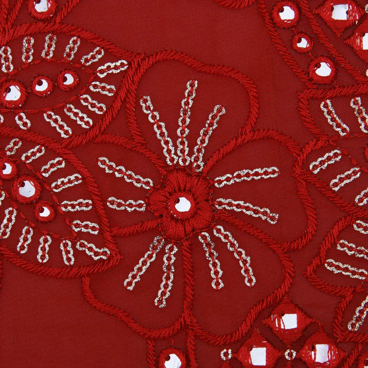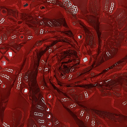 Red Georgette Embroidery Fabric(Cut Pieces 2.5Mtr)