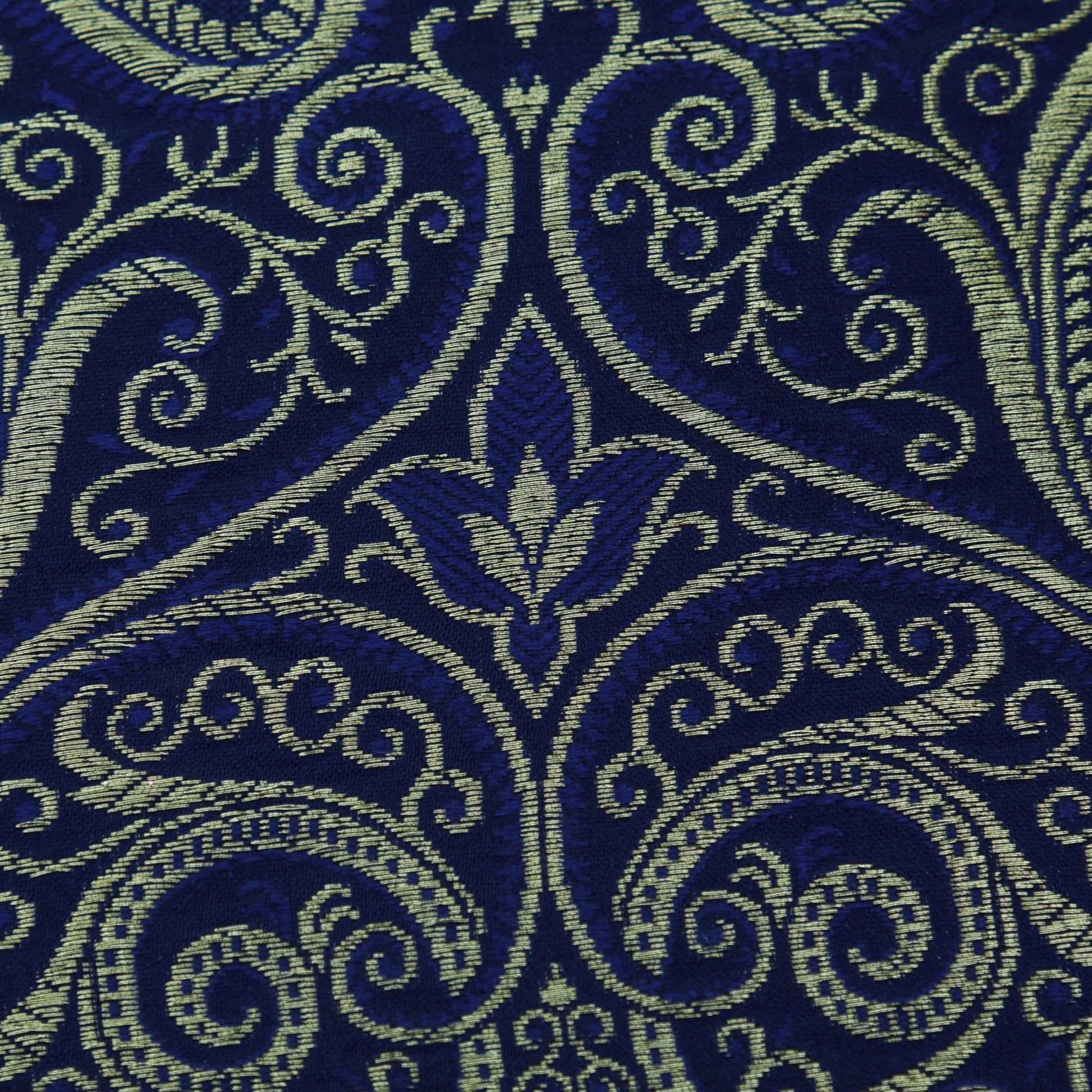 This Royal Blue Color Satin Brocade Fabric boasts an elegant sheen and intricate brocade design. Made with high-quality materials, it offers a luxurious touch to any project. Perfect for formal wear, home decor, and crafts. Elevate your creations with this premium fabric choice.