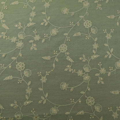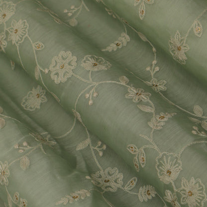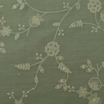 Sea Green Color Chanderi Embroidery Fabric
