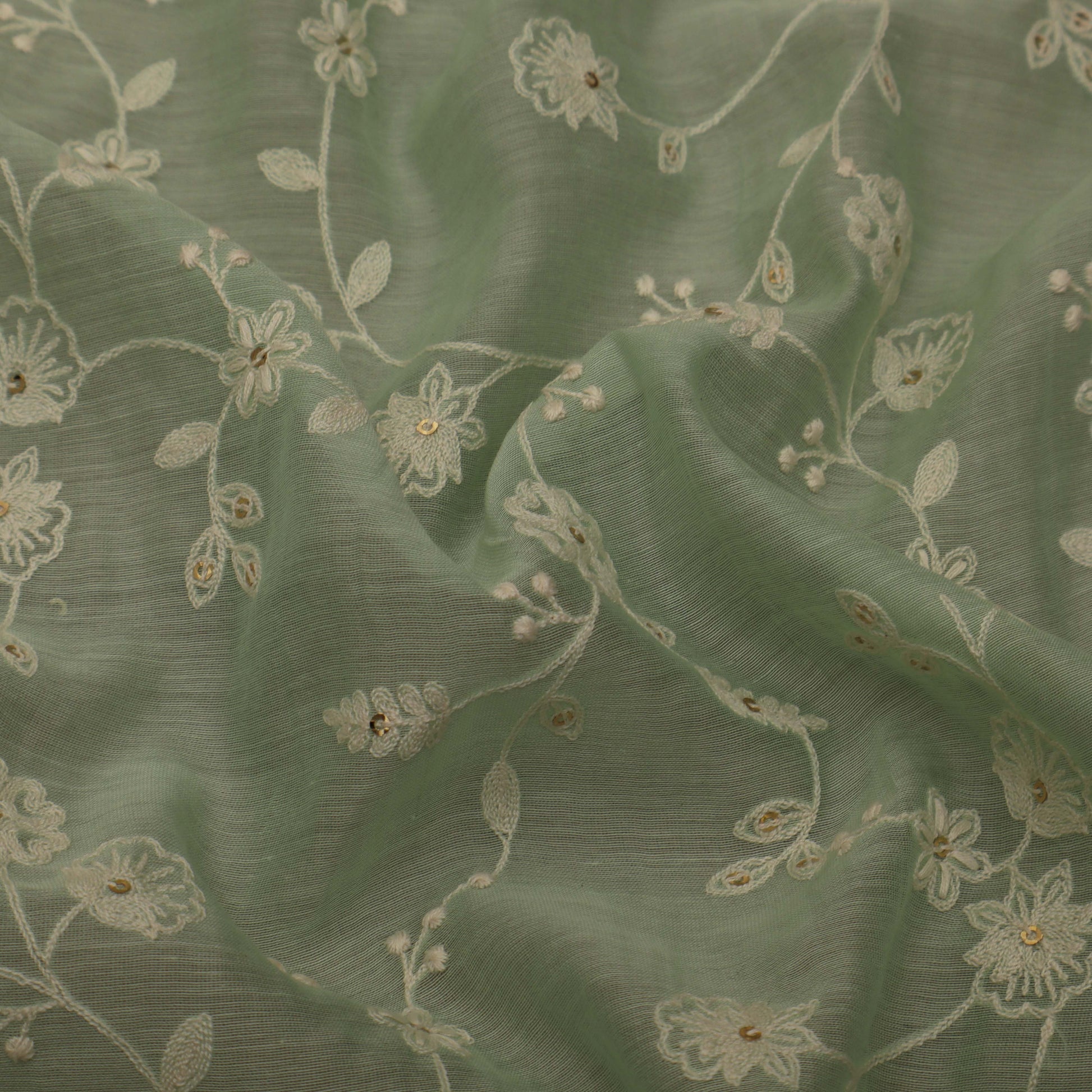 This sea green chanderi fabric is intricately embroidered to add a touch of elegance to any outfit. Made with high-quality material, it offers a luxurious feel and adds a unique texture to any garment. Perfect for special occasions or everyday wear, this fabric is a must-have for anyone seeking quality and style.