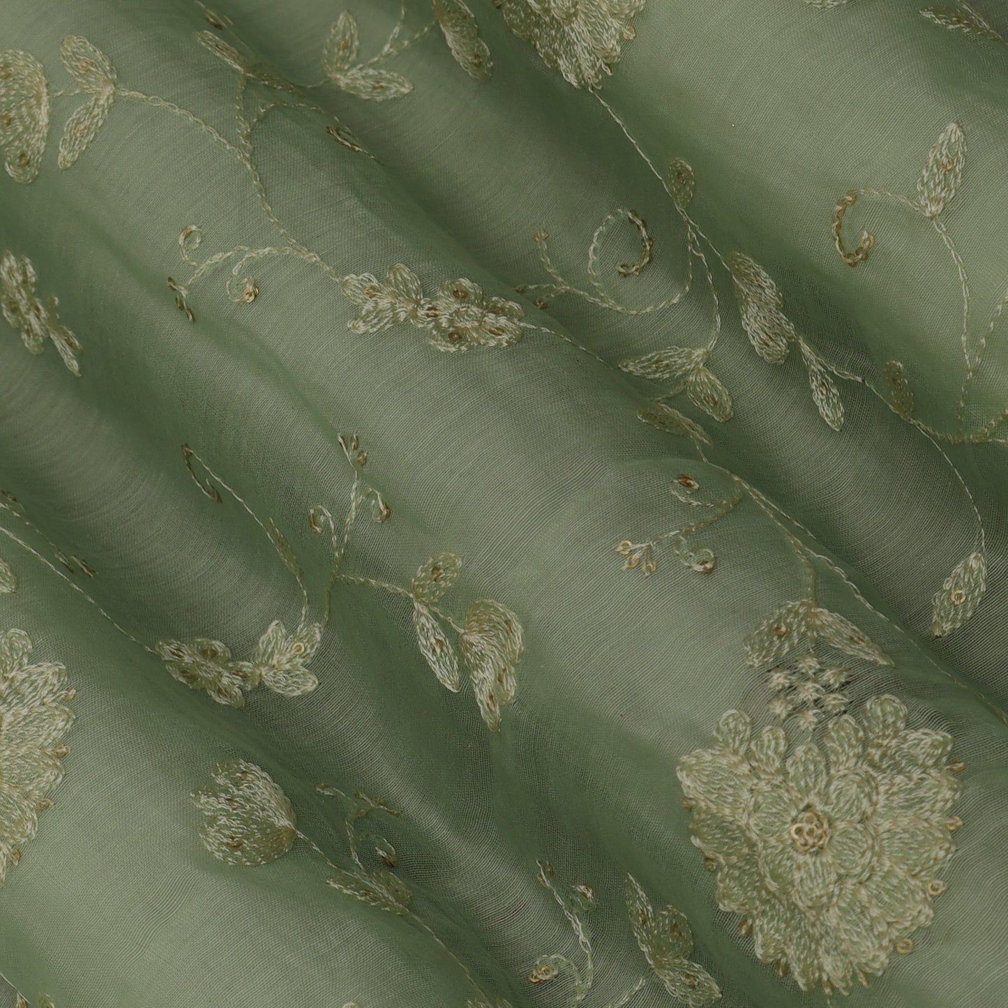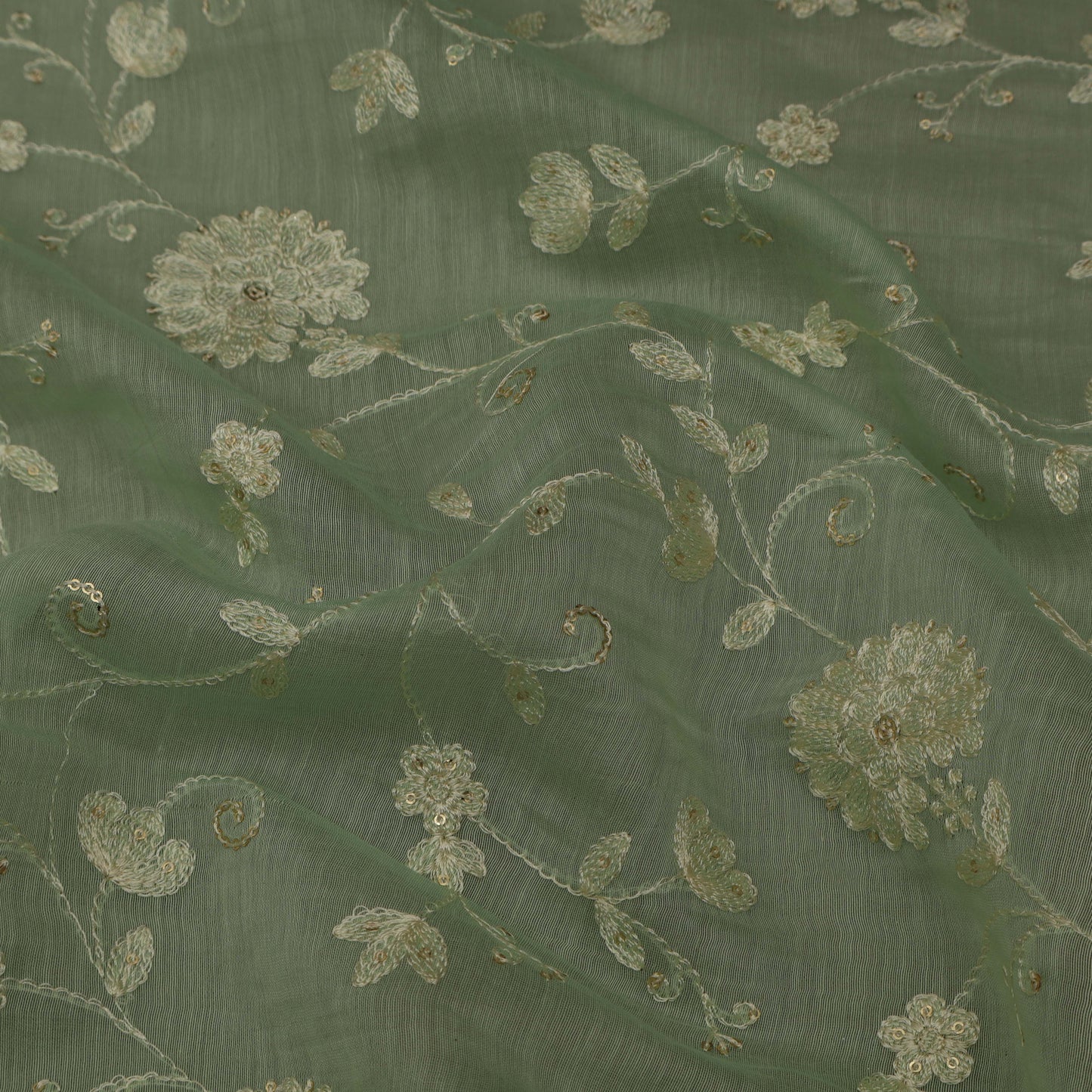 This chanderi fabric features a gorgeous sea green color and delicate embroidery, perfect for your next crafting project. Made from high-quality materials, this fabric offers a luxurious feel and stunning appearance. Enhance your designs with the unique texture and color of this beautiful fabric.