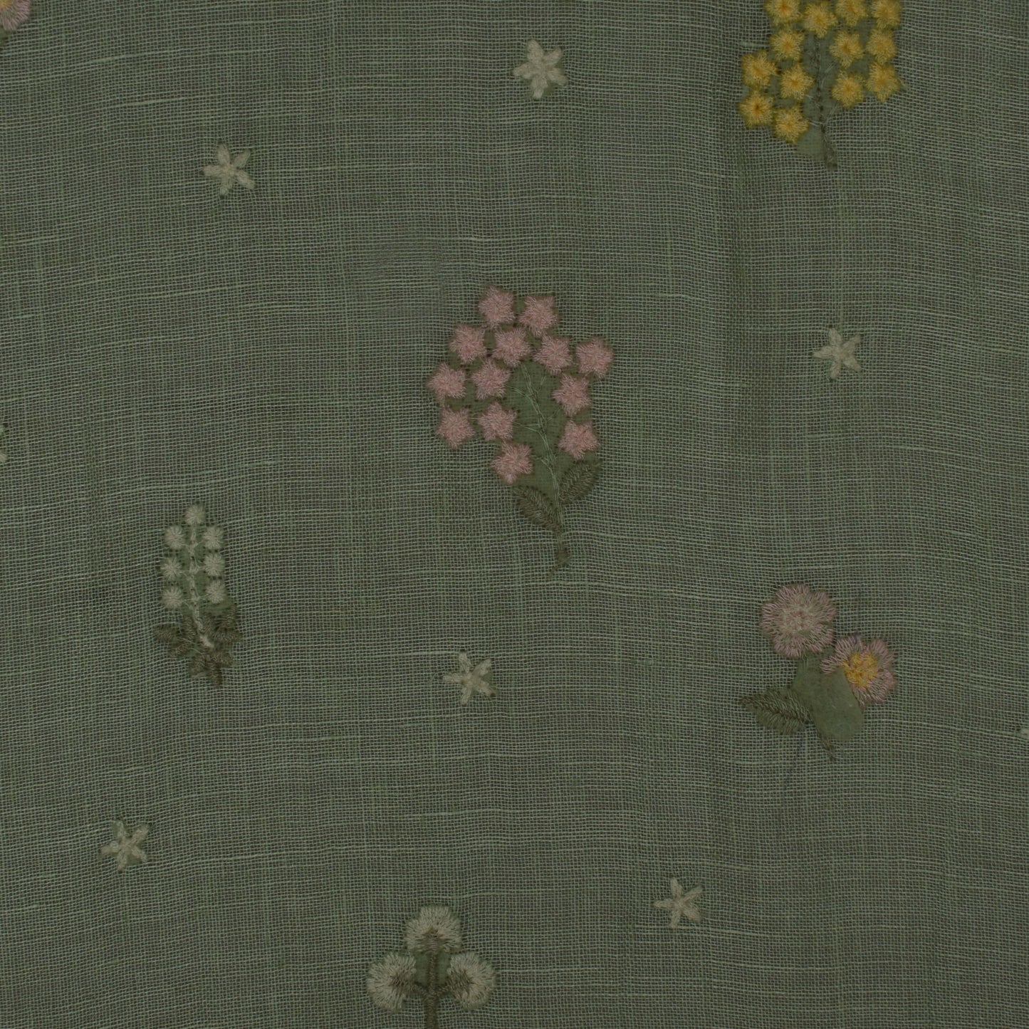This sea green linen fabric features intricate embroidery, perfect for adding a touch of elegance to any project. Made from high-quality linen, this fabric offers a soft and breathable feel, making it ideal for clothing, home decor, and more. The beautiful sea green color adds a refreshing and calming touch to any design.