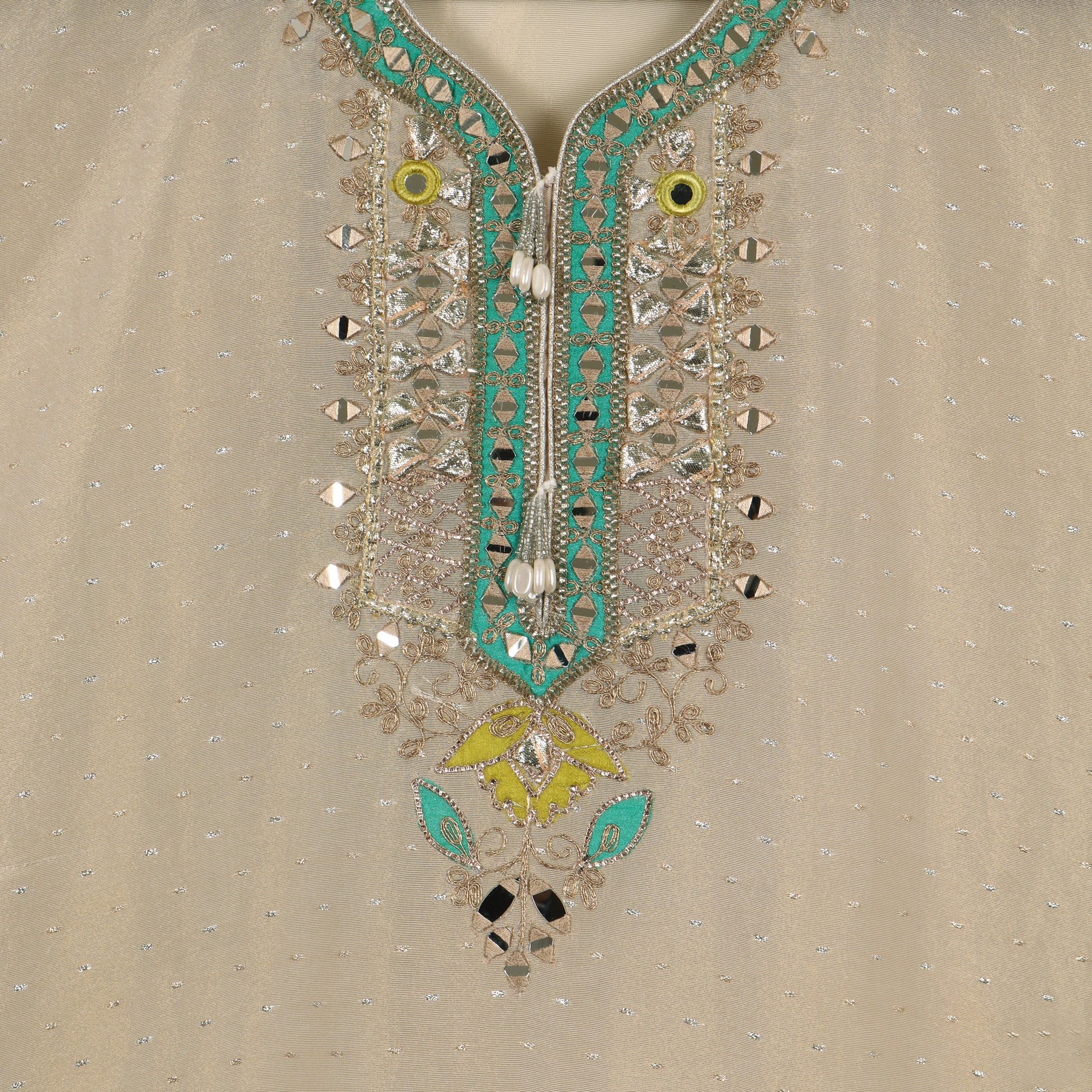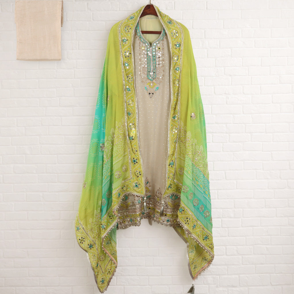 Shine with effortless elegance in our stunning Semi Stitched Tissue Suit, crafted from premium tissue fabric known for its luminous sheen and graceful texture. Designed to offer both structure and flexibility, this semi-stitched suit allows easy size customization for a perfect fit.