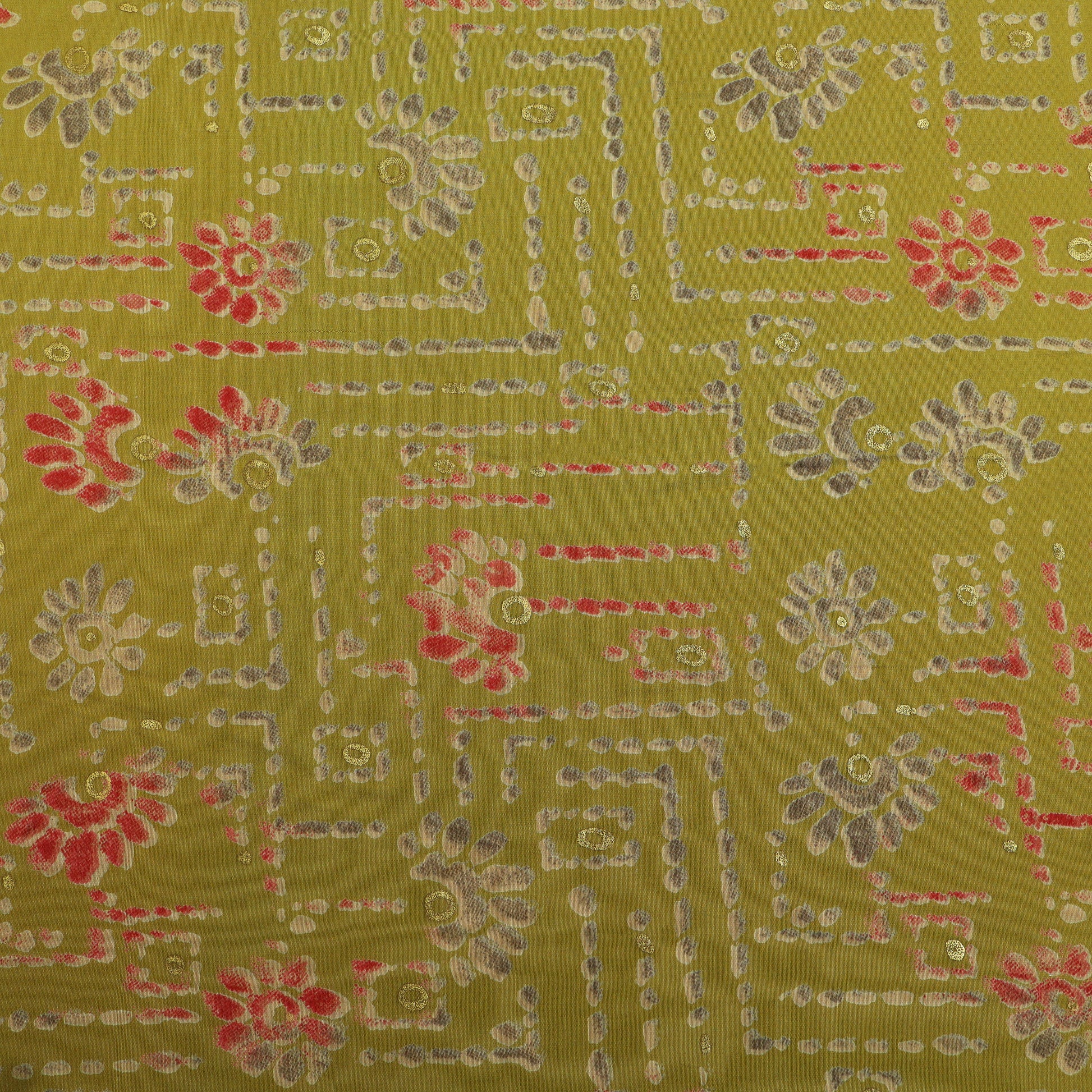 Elevate your fashion game with our Silk Chanderi Foil Print Fabric. Made from high-quality silk and featuring a stunning foil print, this fabric is perfect for creating luxurious and eye-catching garments. With its unique blend of style and durability, it's a must-have for any fashion enthusiast.