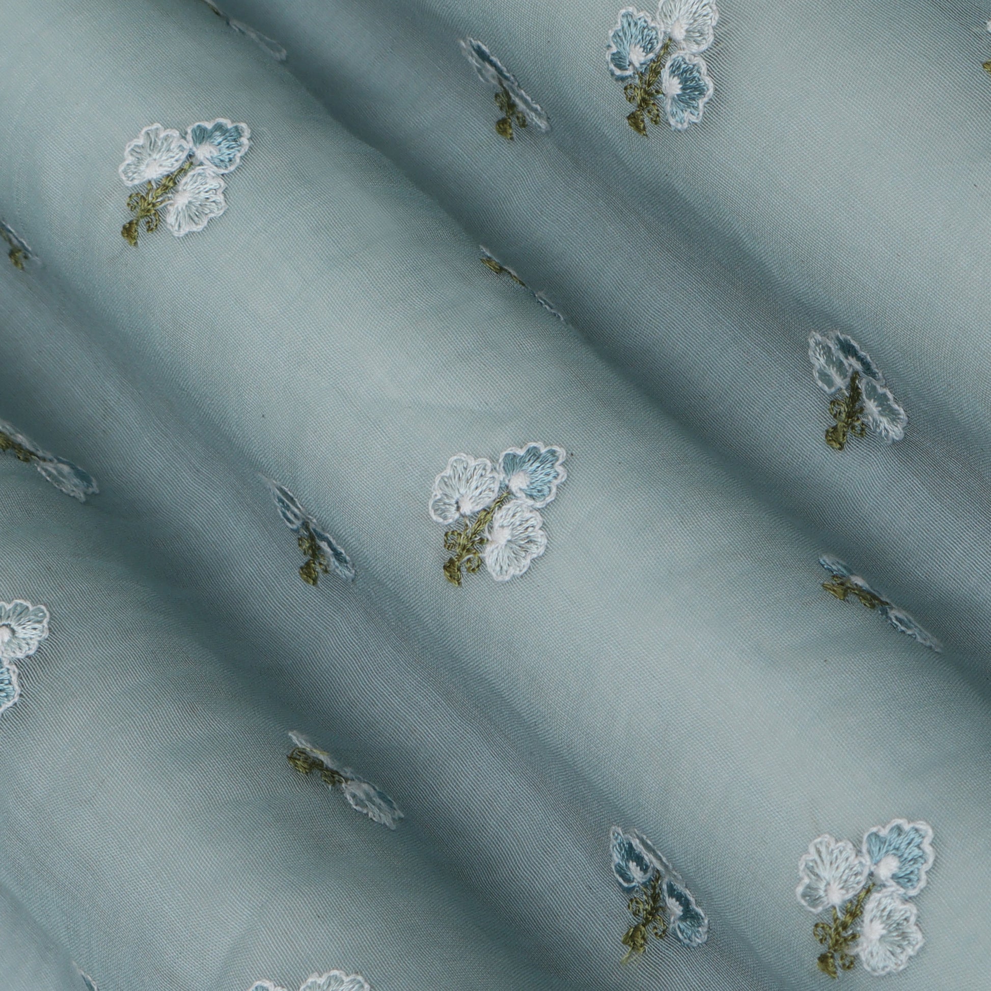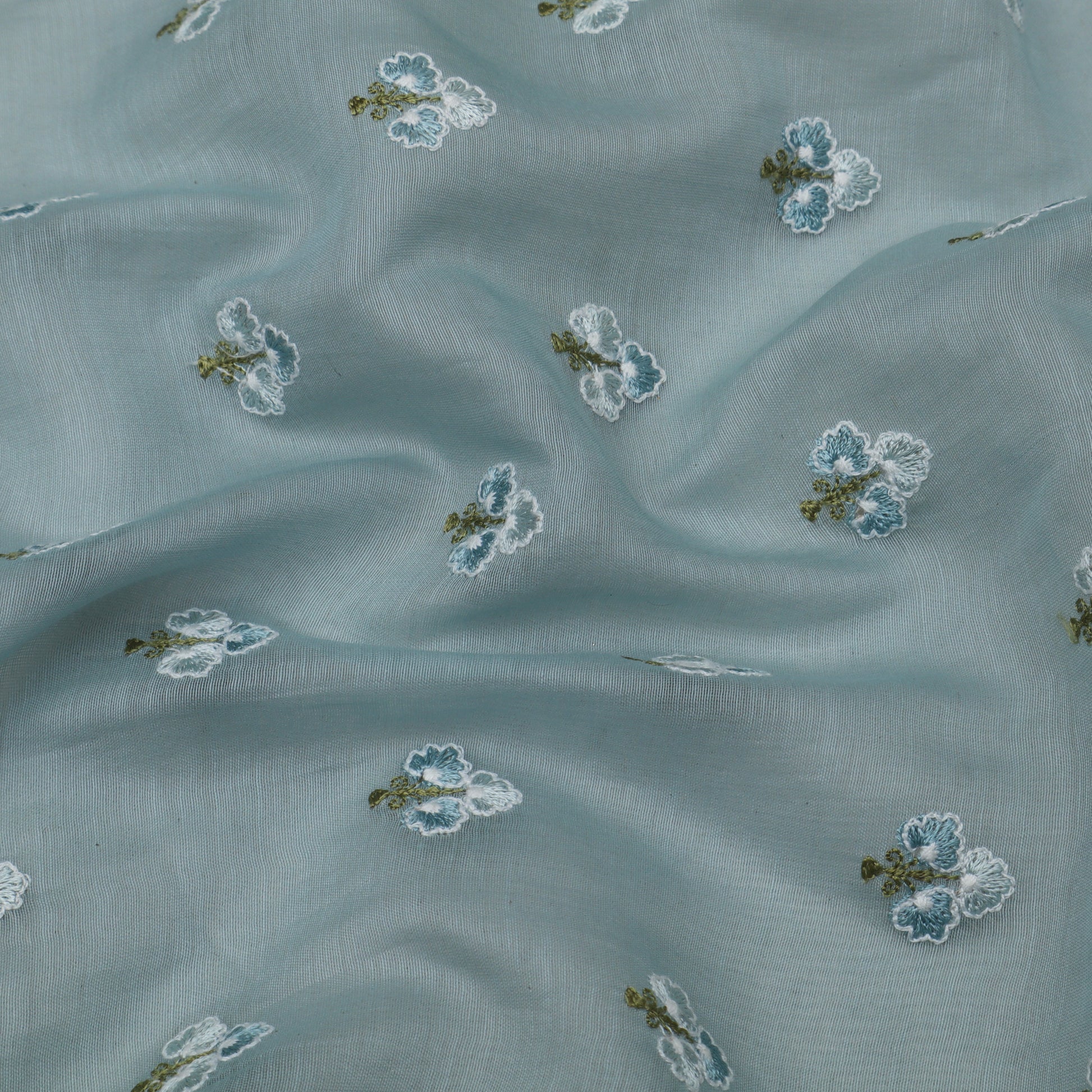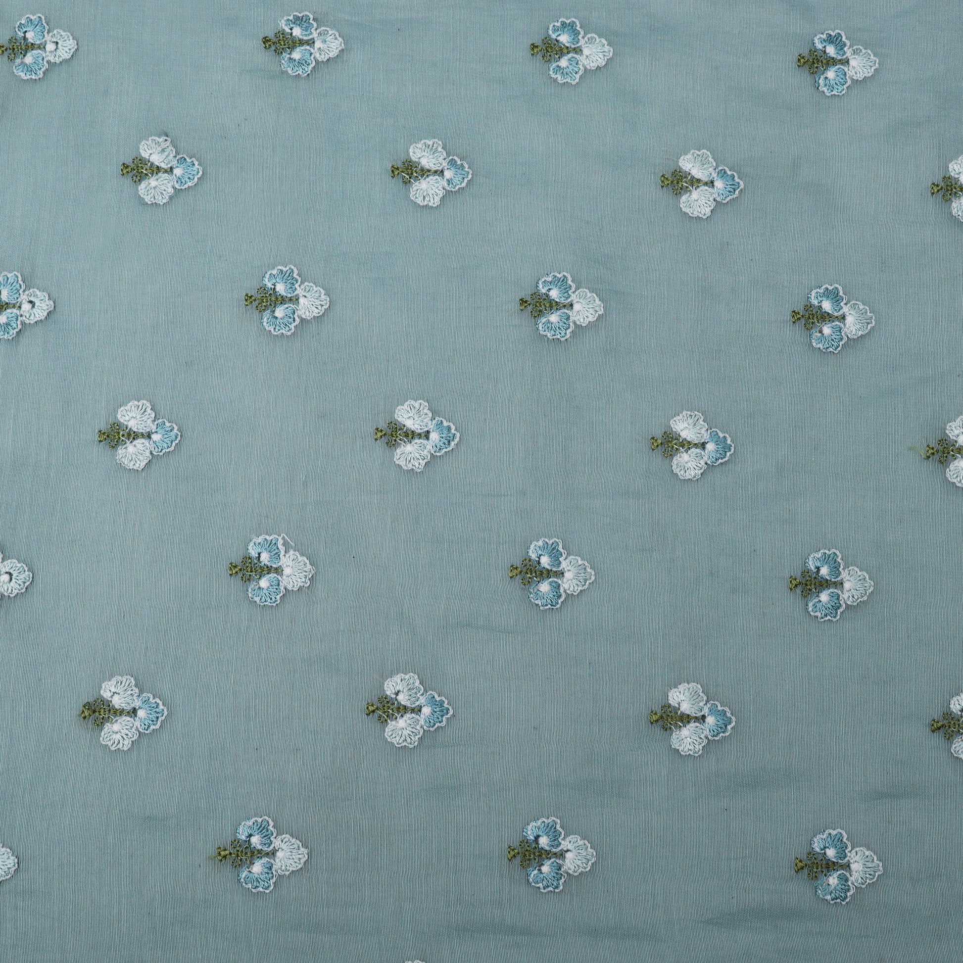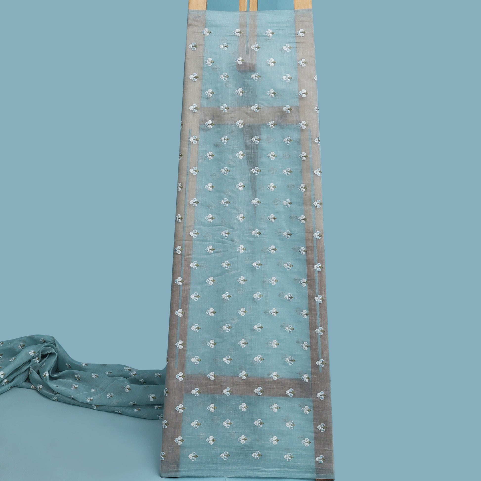 This sky blue color chanderi booti fabric offers a luxurious blend of silk and cotton, providing a smooth and comfortable feel. Its intricate booti pattern adds a touch of elegance, making it perfect for high-end clothing and home decor projects. Experience the superior quality and versatility of this fabric in your next creation.