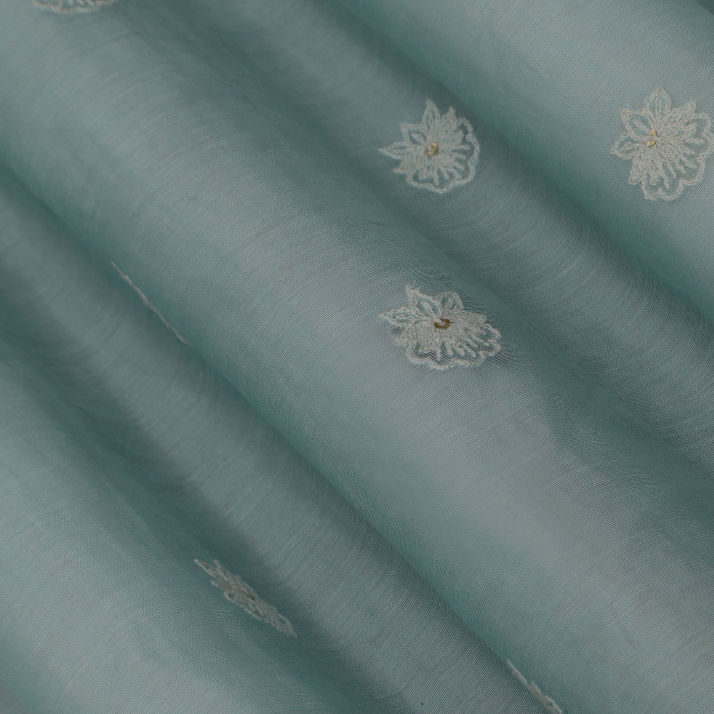 Sky Blue color Chanderi Embroidery Fabric