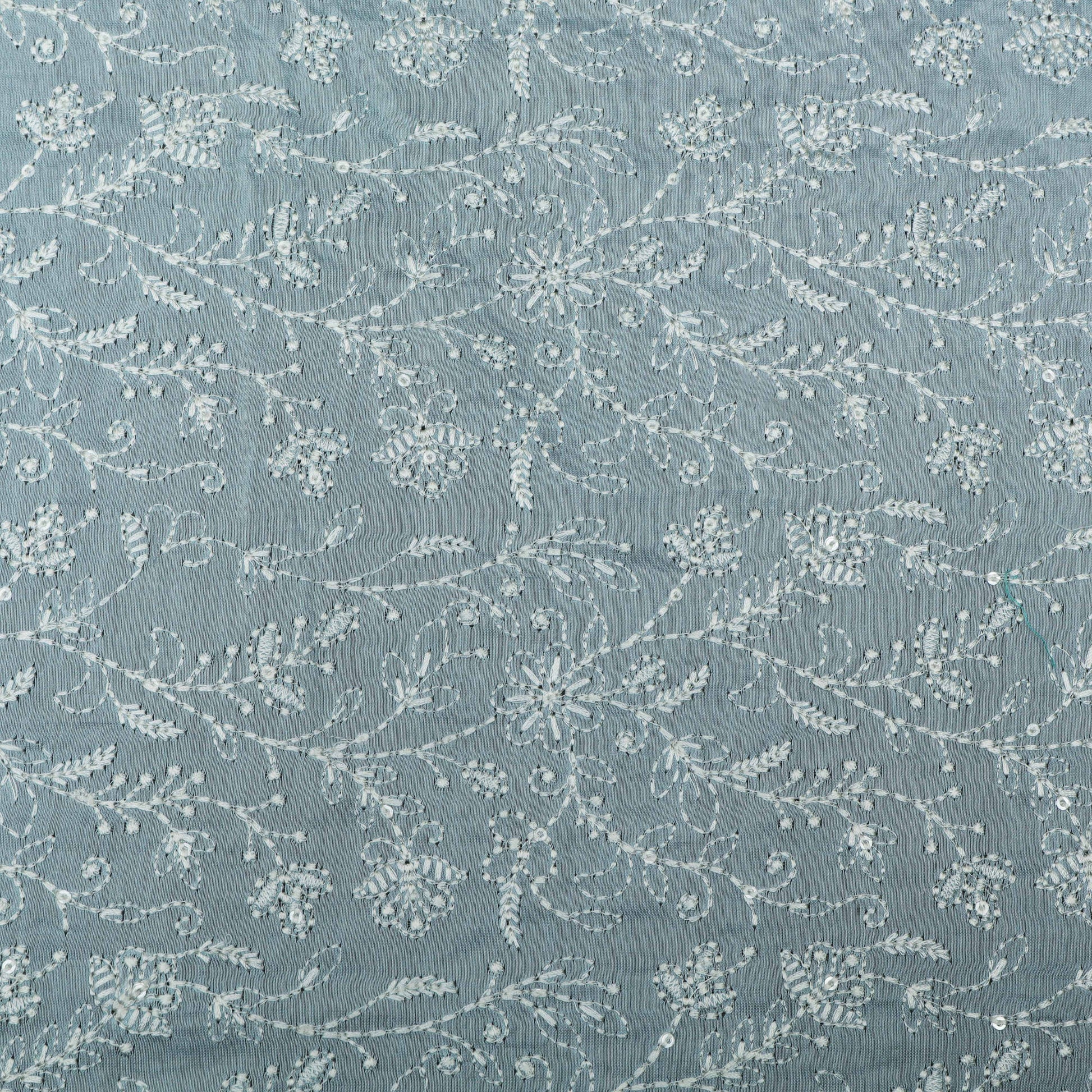 Sky Blue Color Chanderi Embroidery Fabric