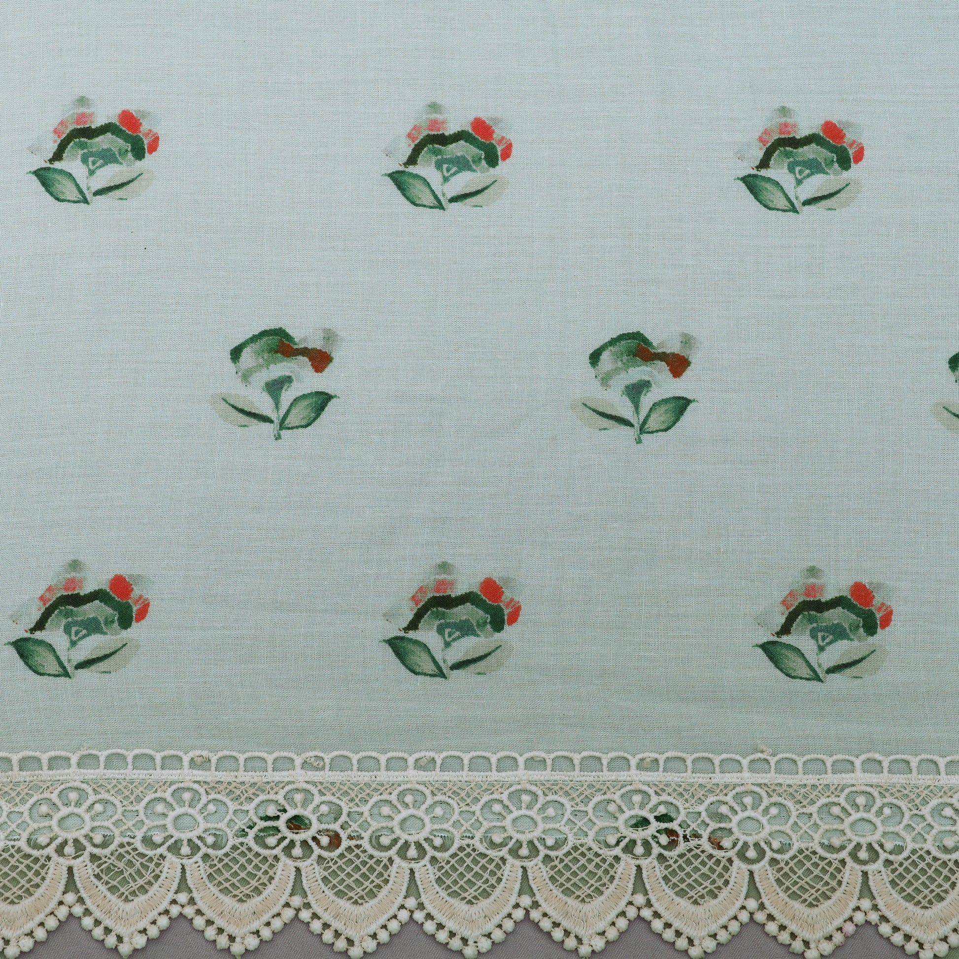 Sky Blue Color Cotton Printed Border Embroidery Fabric