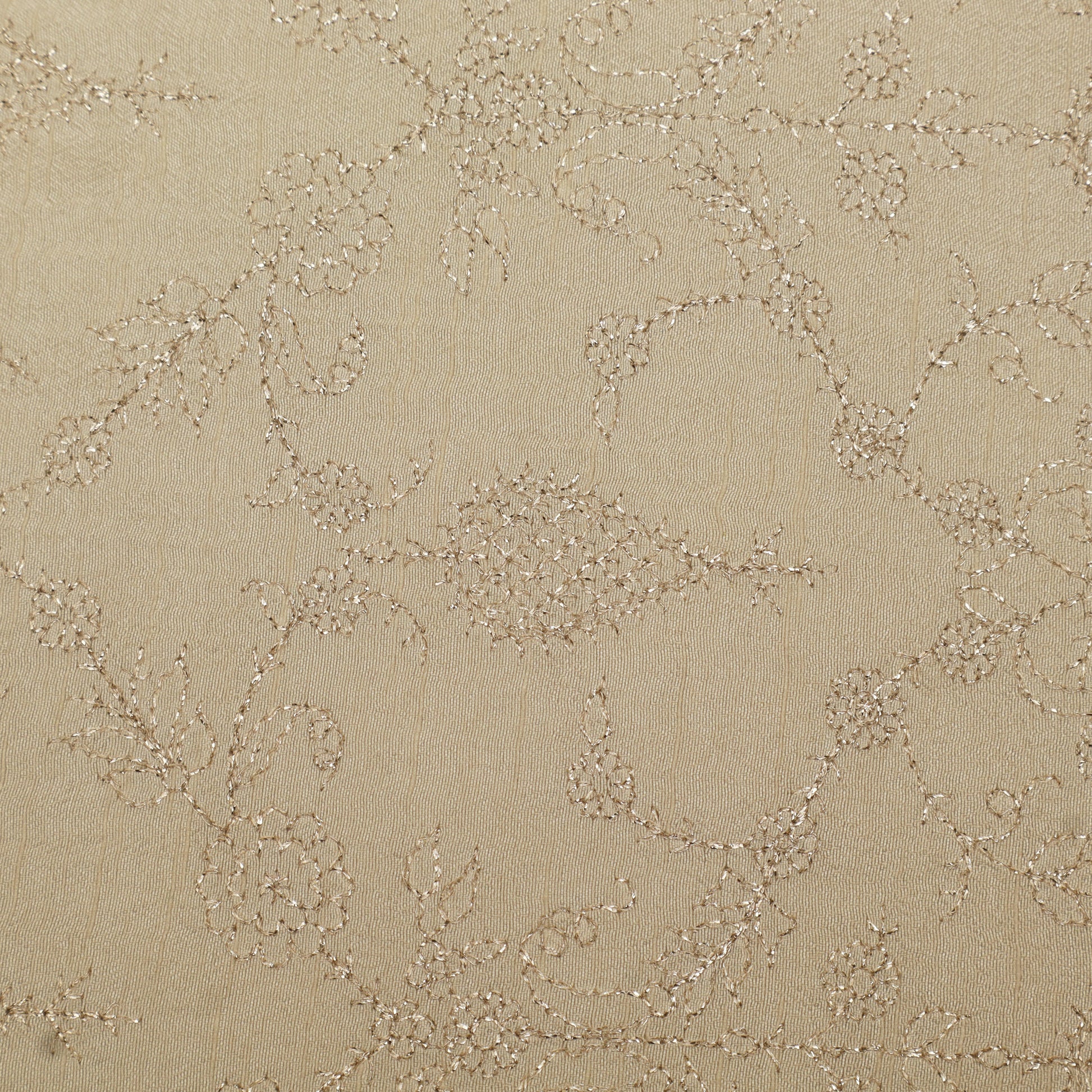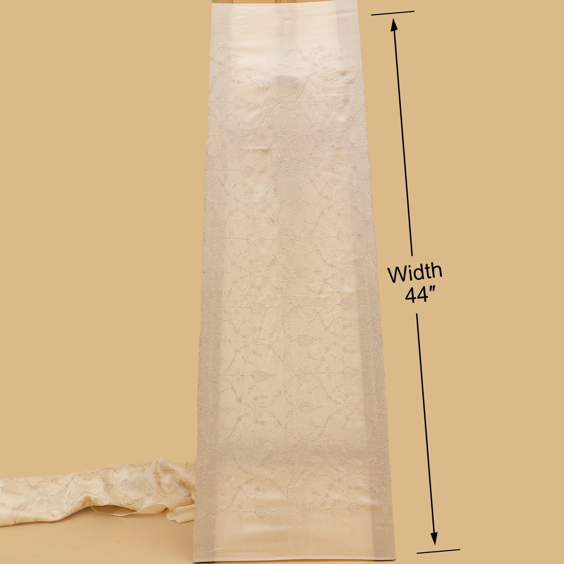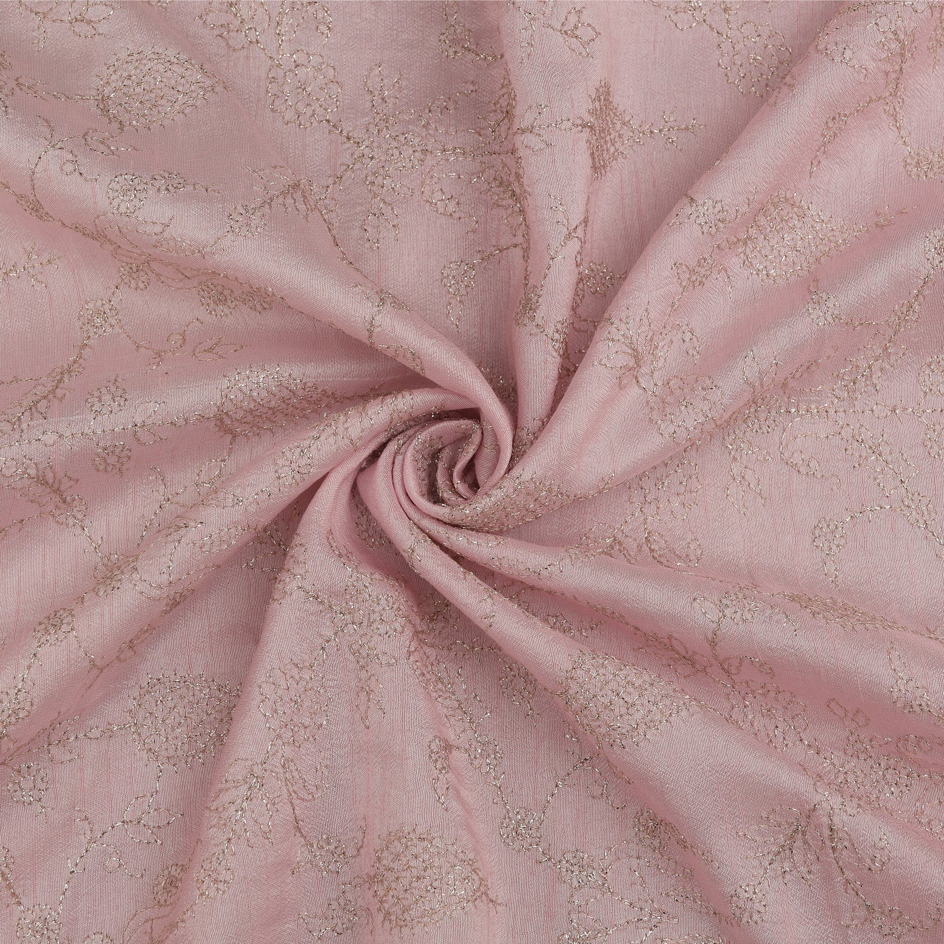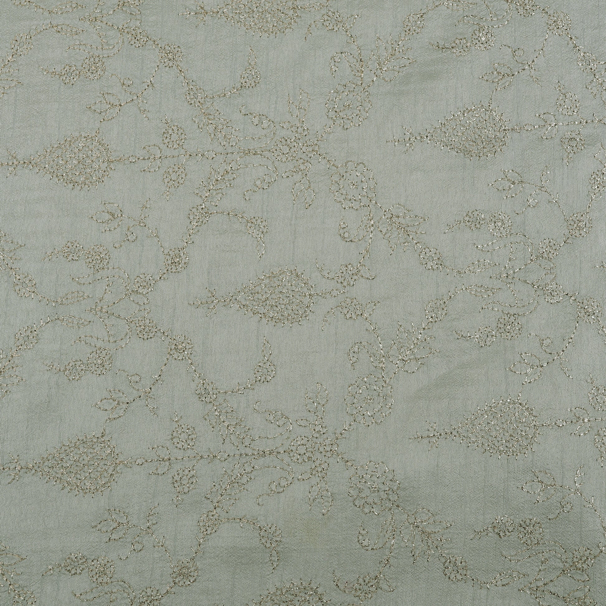 This elegant Slub Silk Embroidery Fabric showcases the natural charm of slub silk paired with delicate, fine embroidery. The subtle textured base highlights graceful floral and vine motifs, beautifully stitched with soft, shimmering threads that add a refined glow without overpowering the fabric’s elegance.
