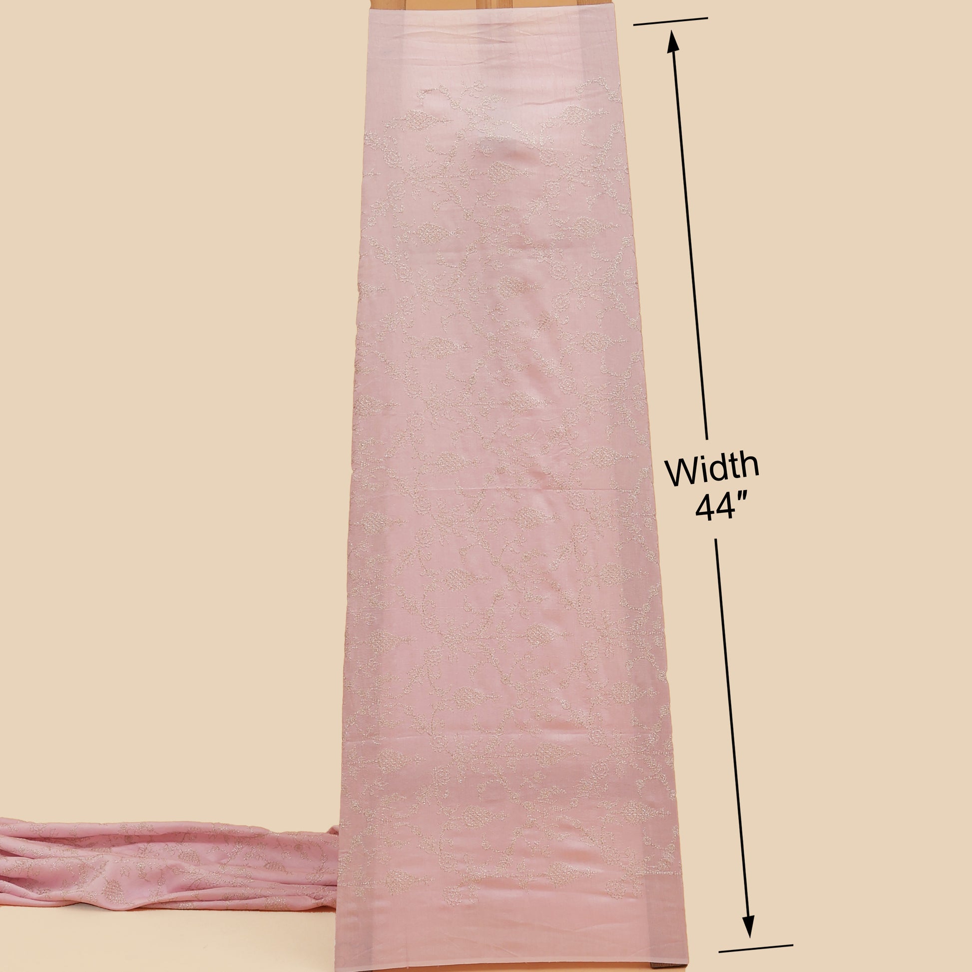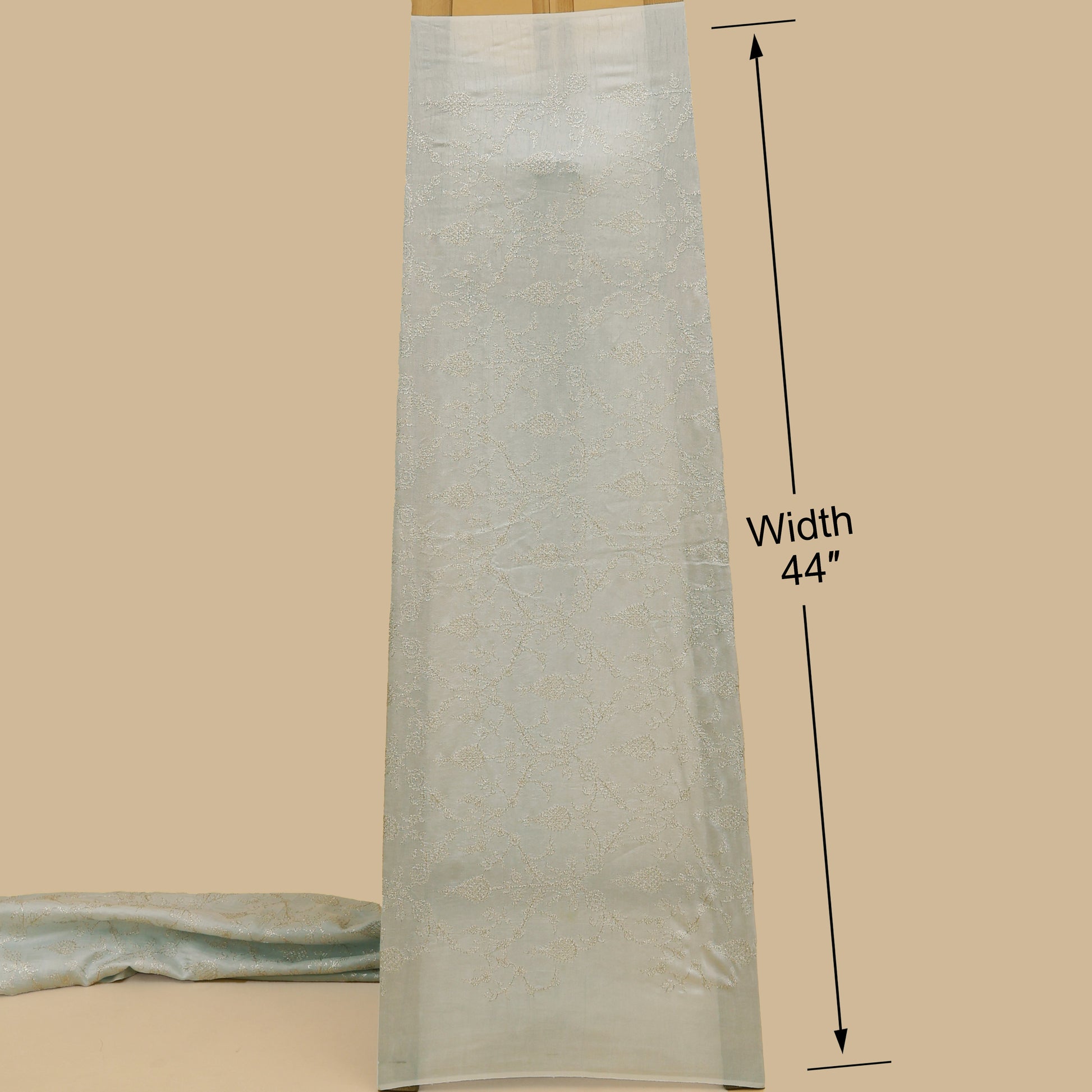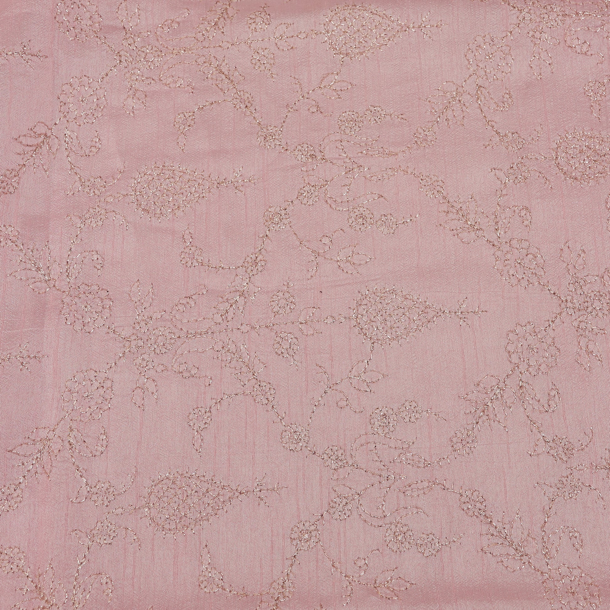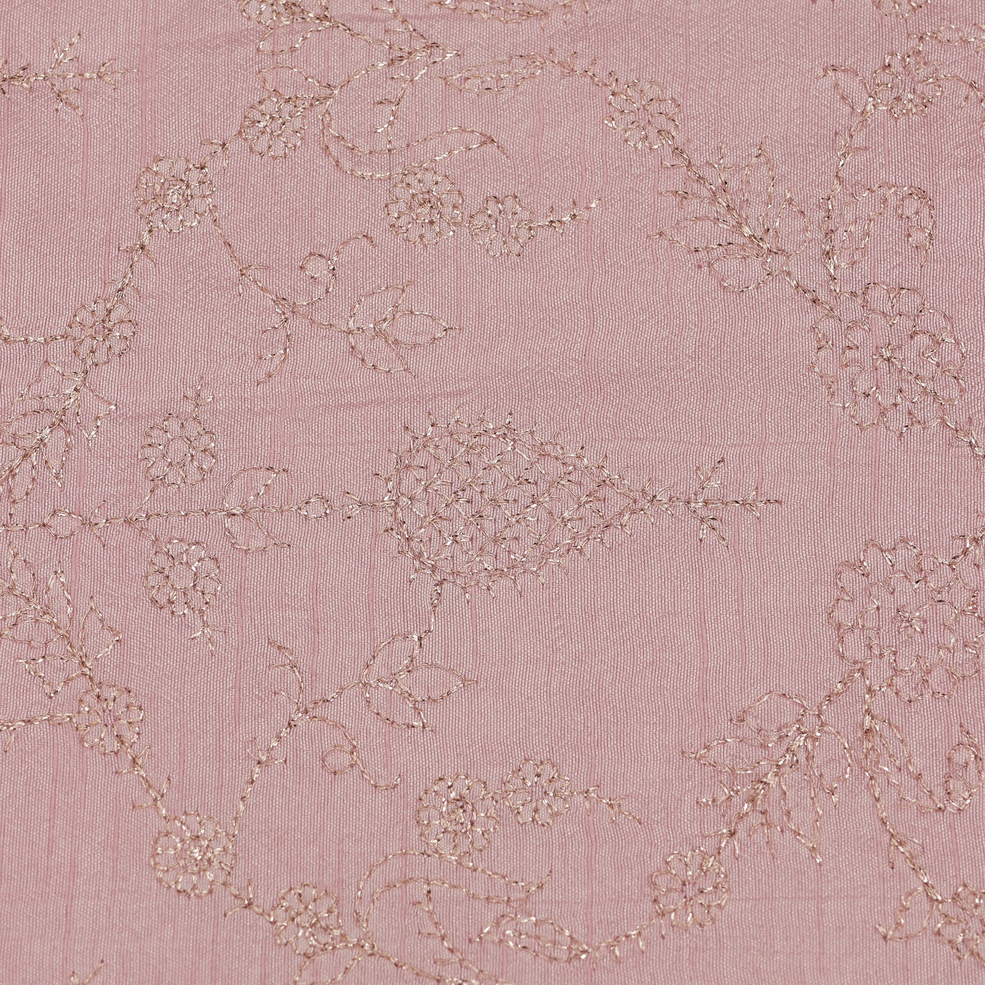 This elegant Slub Silk Embroidery Fabric showcases the natural charm of slub silk paired with delicate, fine embroidery. The subtle textured base highlights graceful floral and vine motifs, beautifully stitched with soft, shimmering threads that add a refined glow without overpowering the fabric’s elegance.