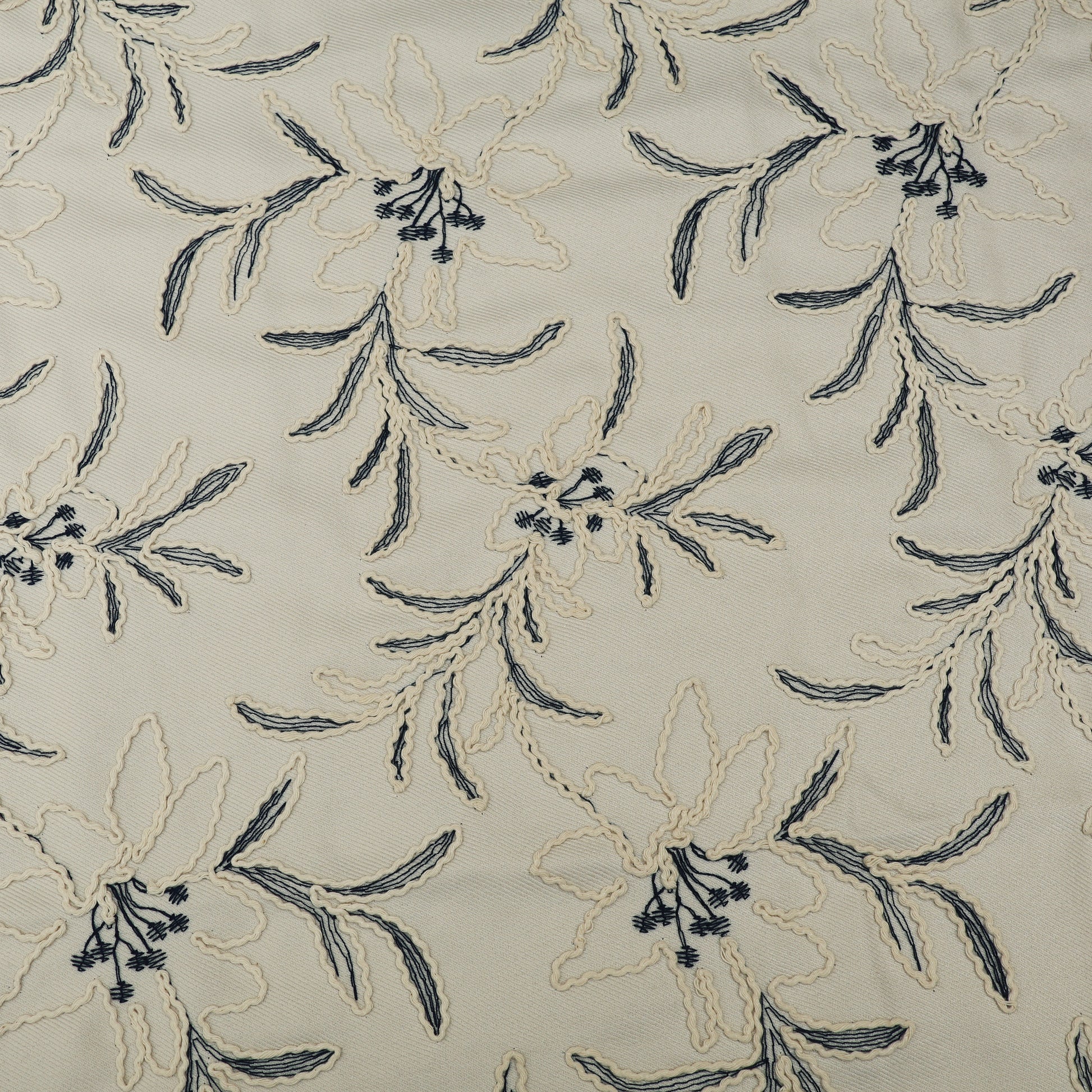 Gracefully crafted, this Spun Silk Embroidery Fabric showcases delicate threadwork on a soft spun silk base, offering a perfect balance of elegance and comfort. The fabric features finely embroidered floral and vine motifs, highlighted with subtle contrast detailing that adds depth and artisanal charm.