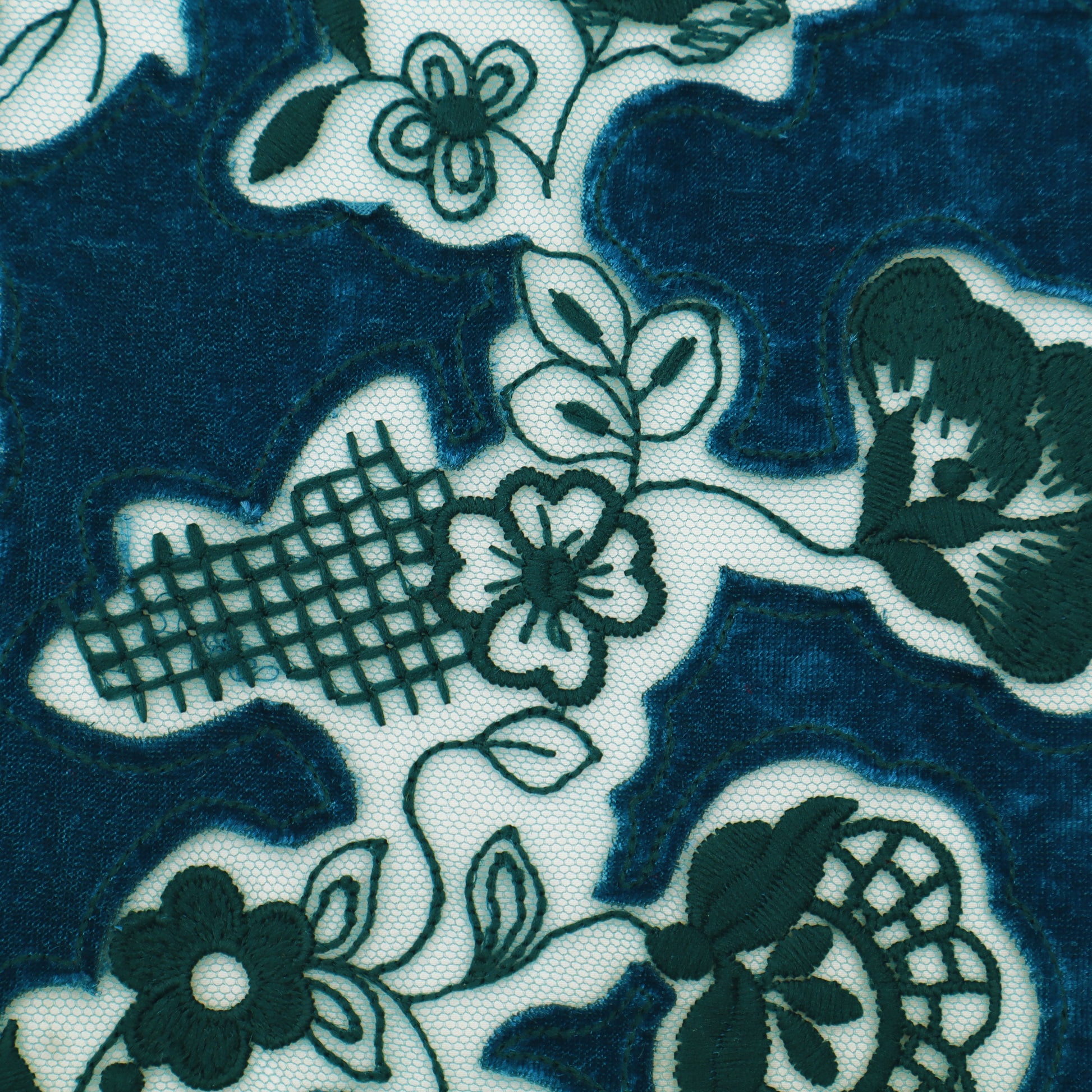 Teal Blue Velvet Net Embroidery