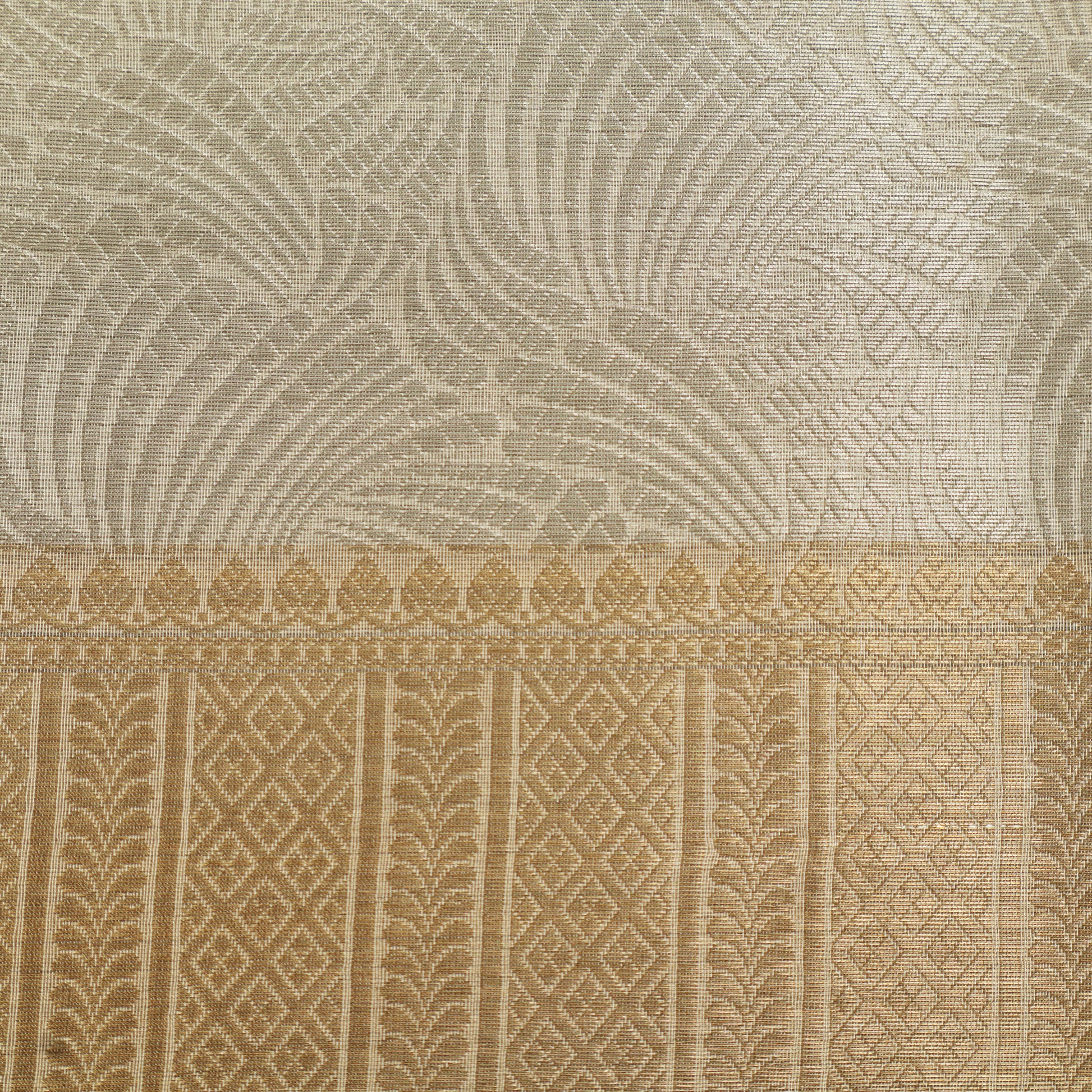 The shimmering zari motifs woven seamlessly into the tissue fabric give it a regal character without making it heavy. With a soft yet structured drape, Tissue Zari Brocade is comfortable to wear while offering a grand festive look—perfect for elegant ethnic ensembles.