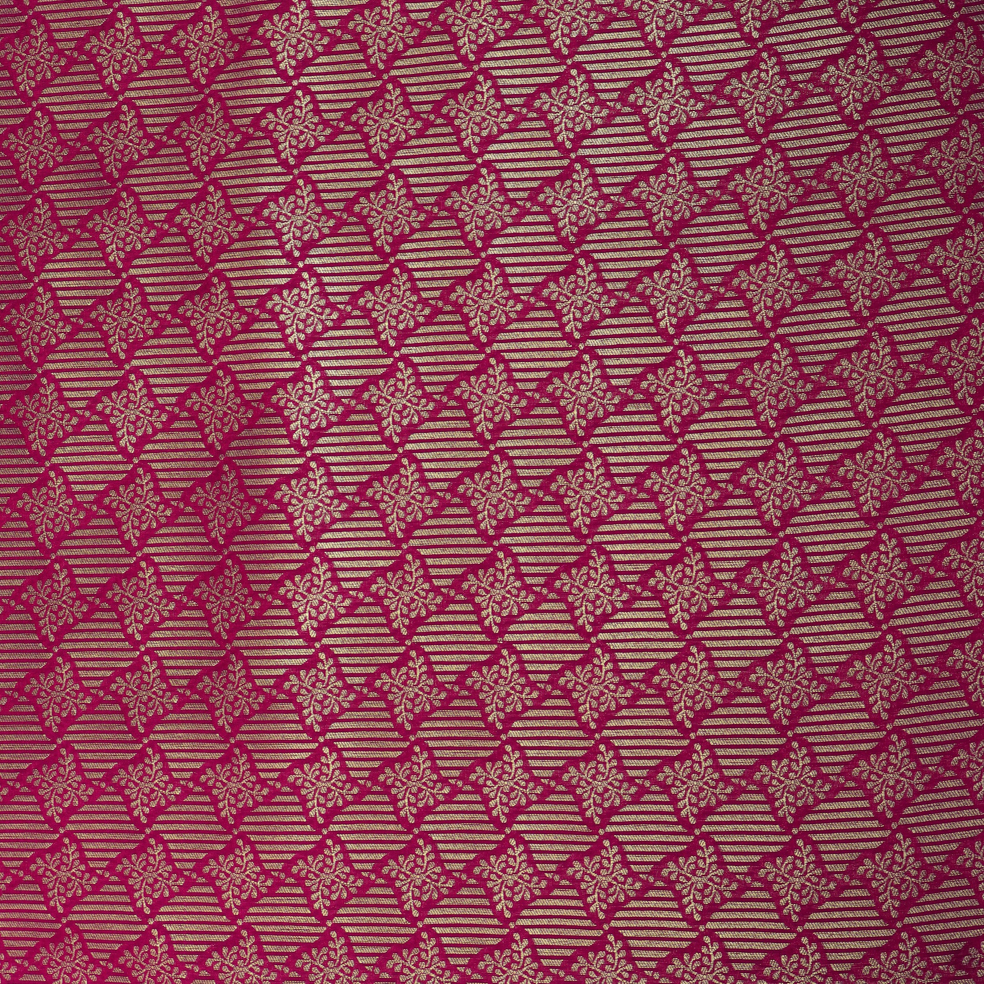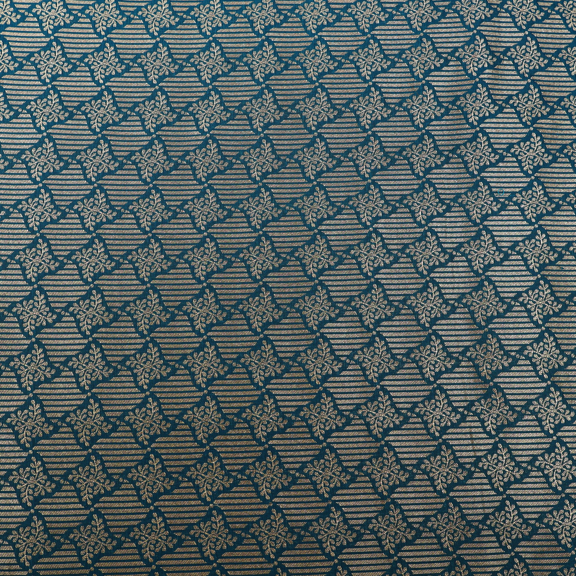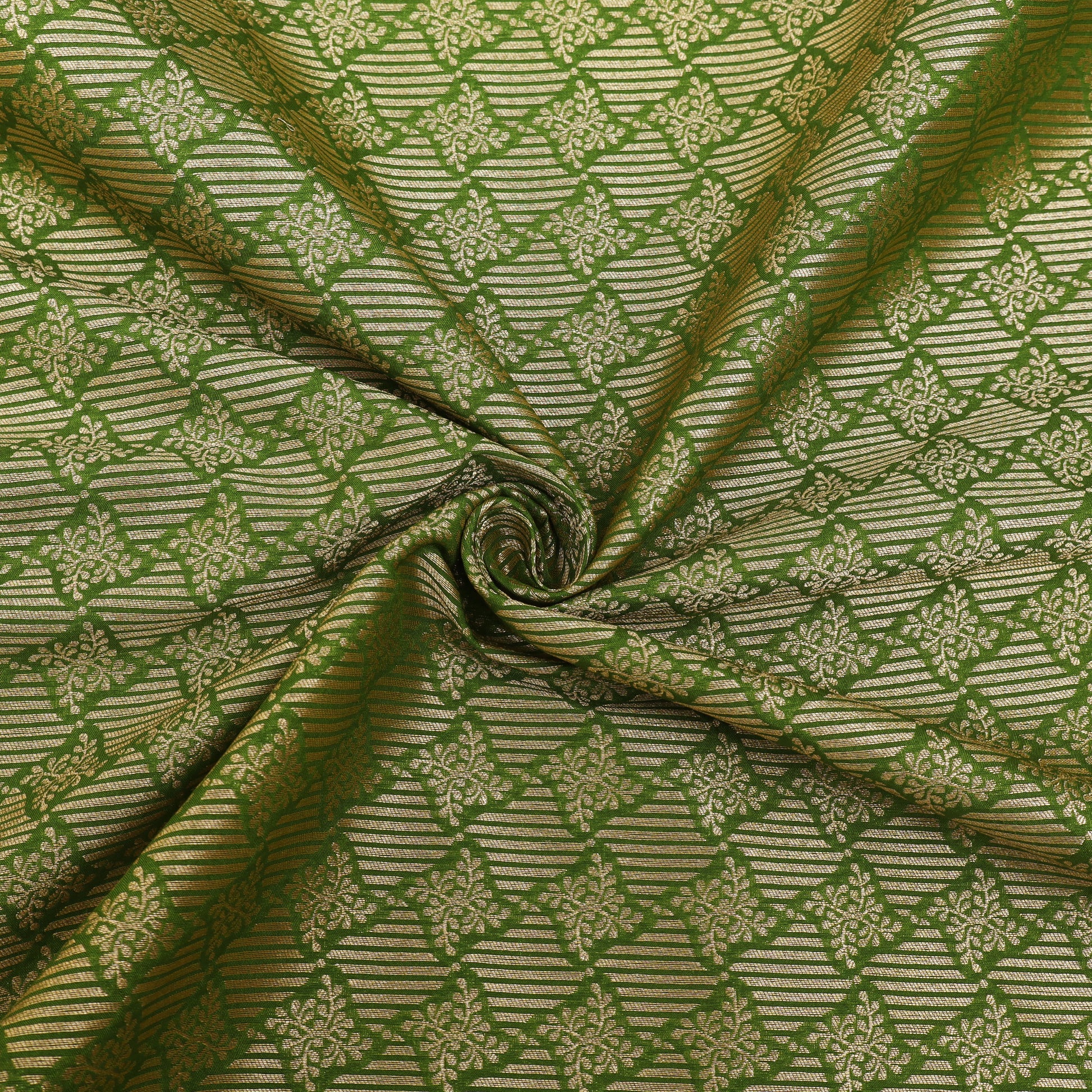 Elevate your ethnic creations with this luxurious Brocade Fabric, featuring an elegant blend of rich green tones and subtle gold weaving. The fabric showcases a classic all-over geometric floral pattern, intricately woven with metallic zari threads that add a refined sheen and royal appeal.