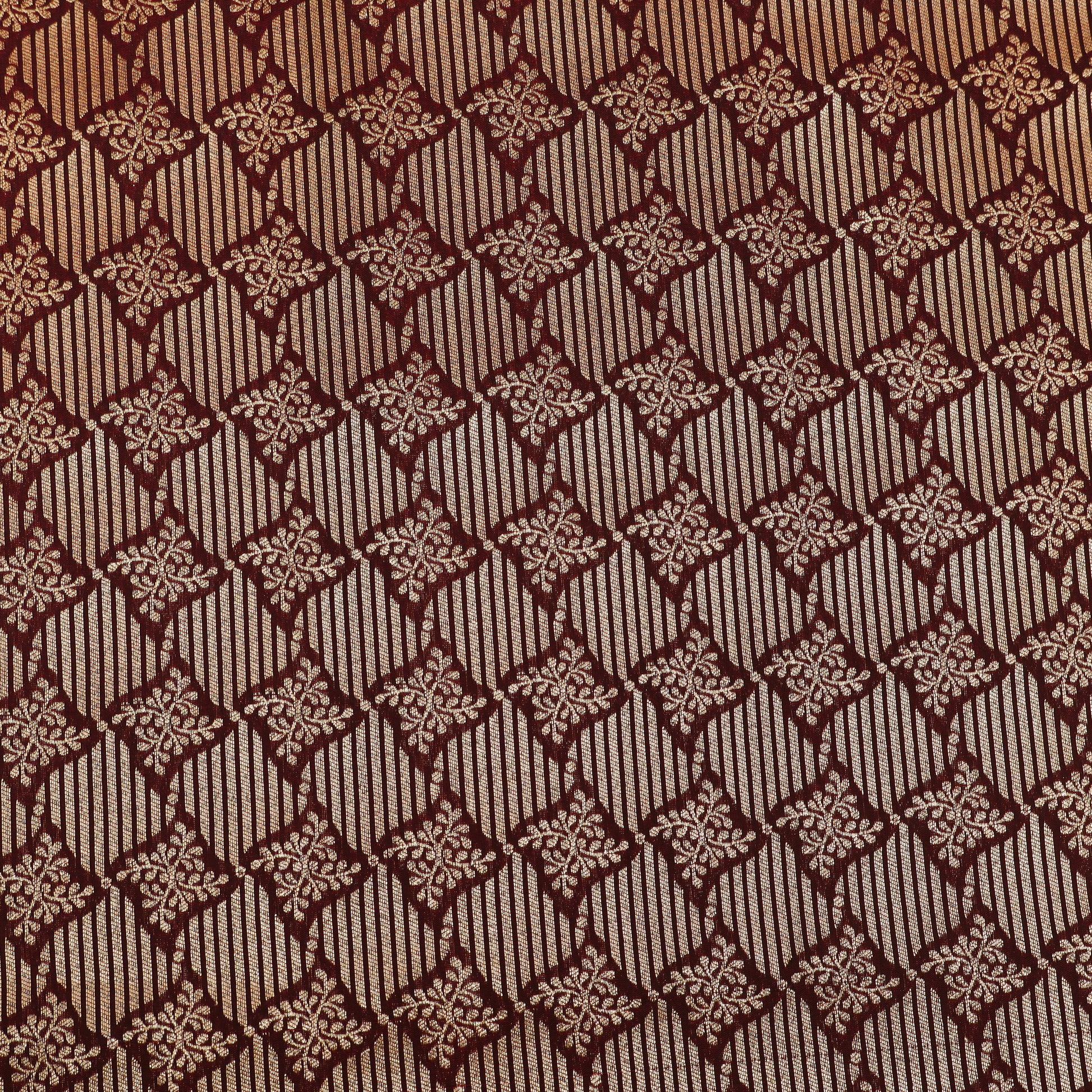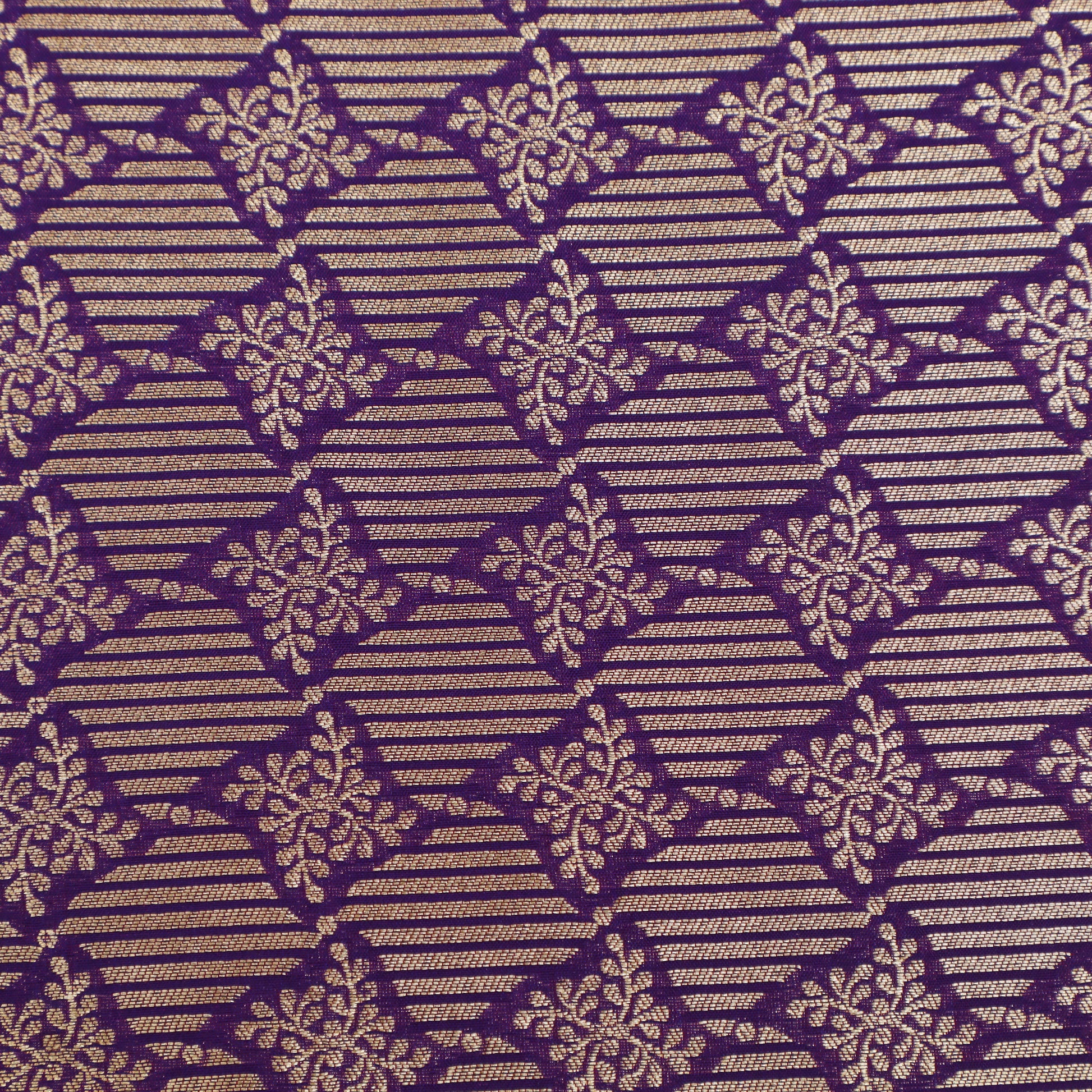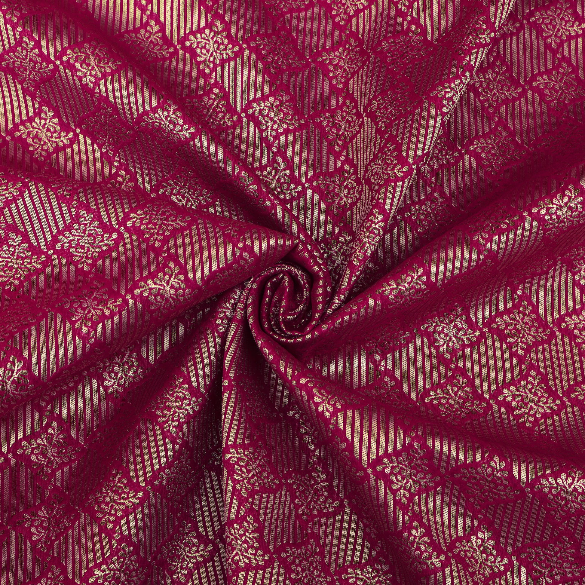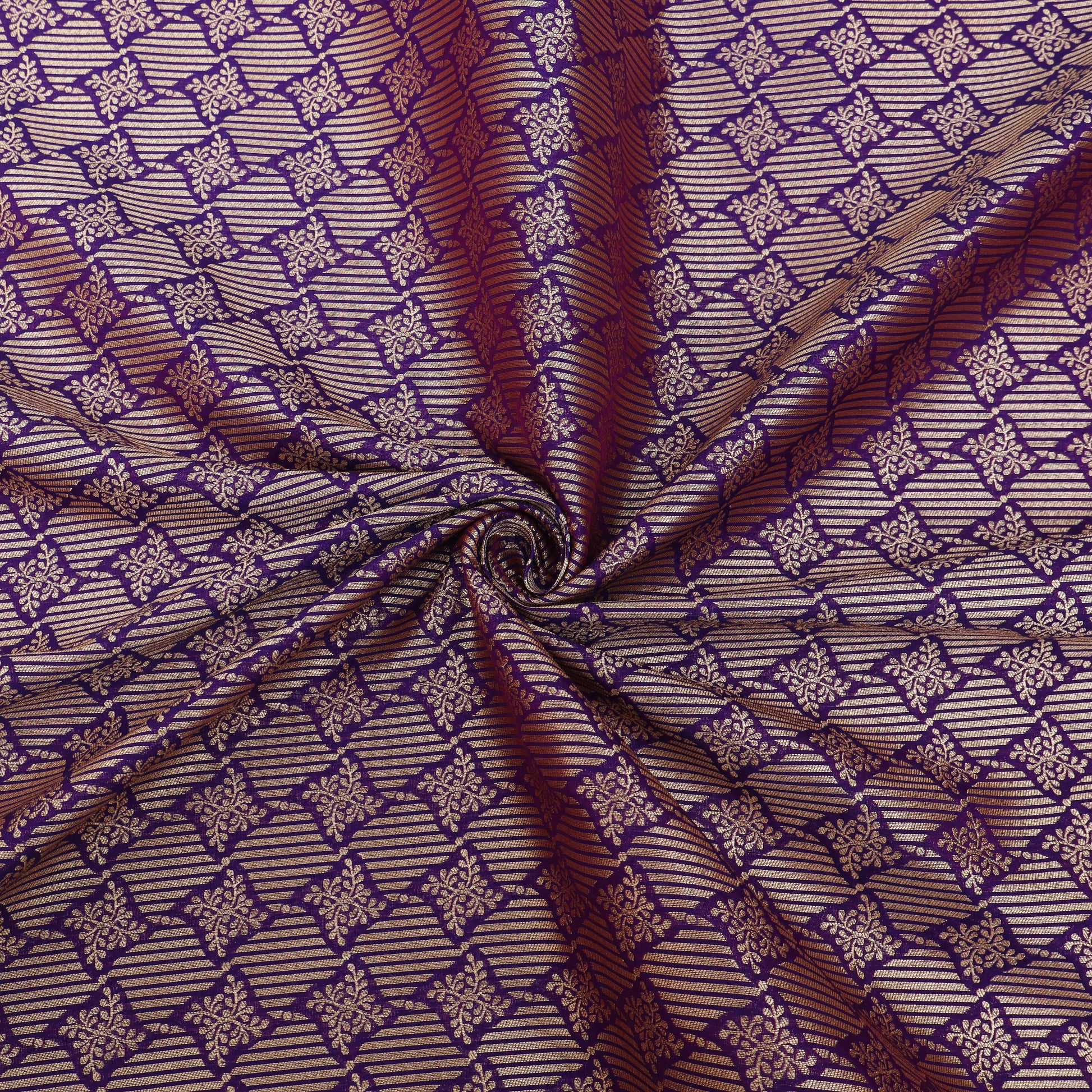 Elevate your ethnic creations with this luxurious Brocade Fabric, featuring an elegant blend of rich green tones and subtle gold weaving. The fabric showcases a classic all-over geometric floral pattern, intricately woven with metallic zari threads that add a refined sheen and royal appeal.