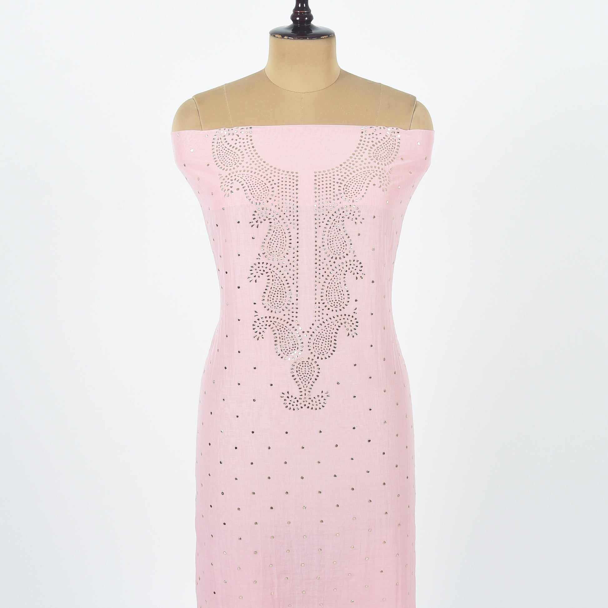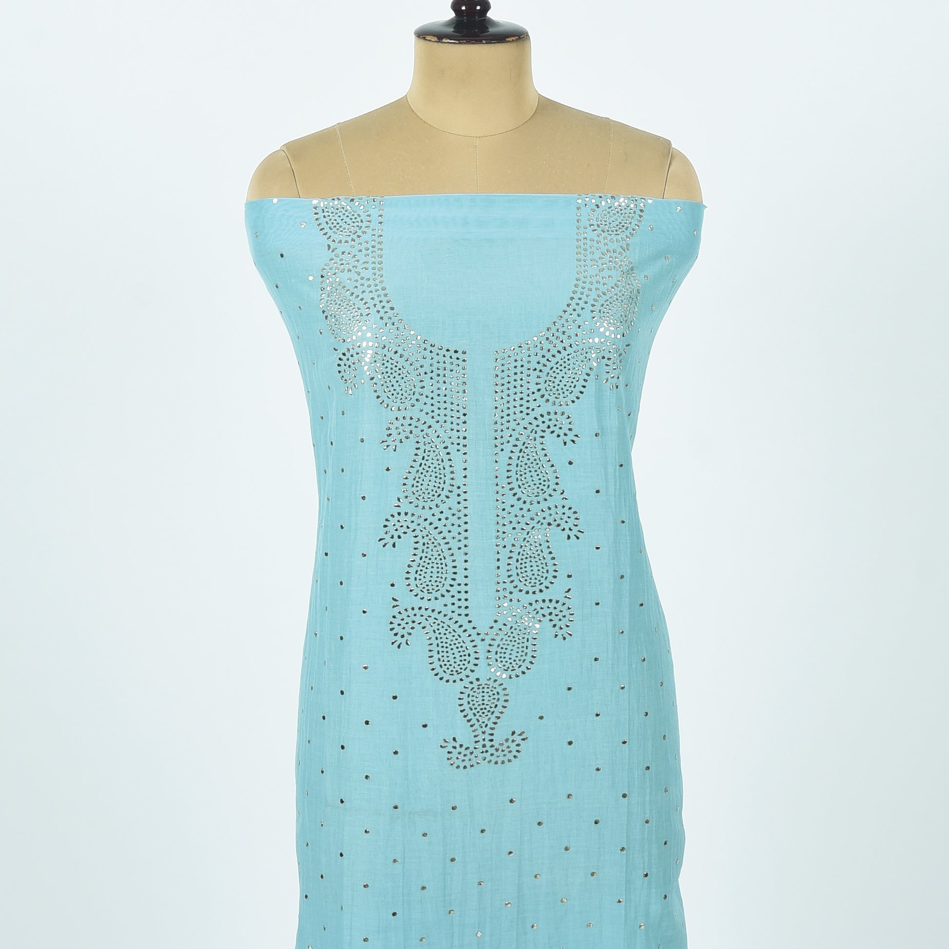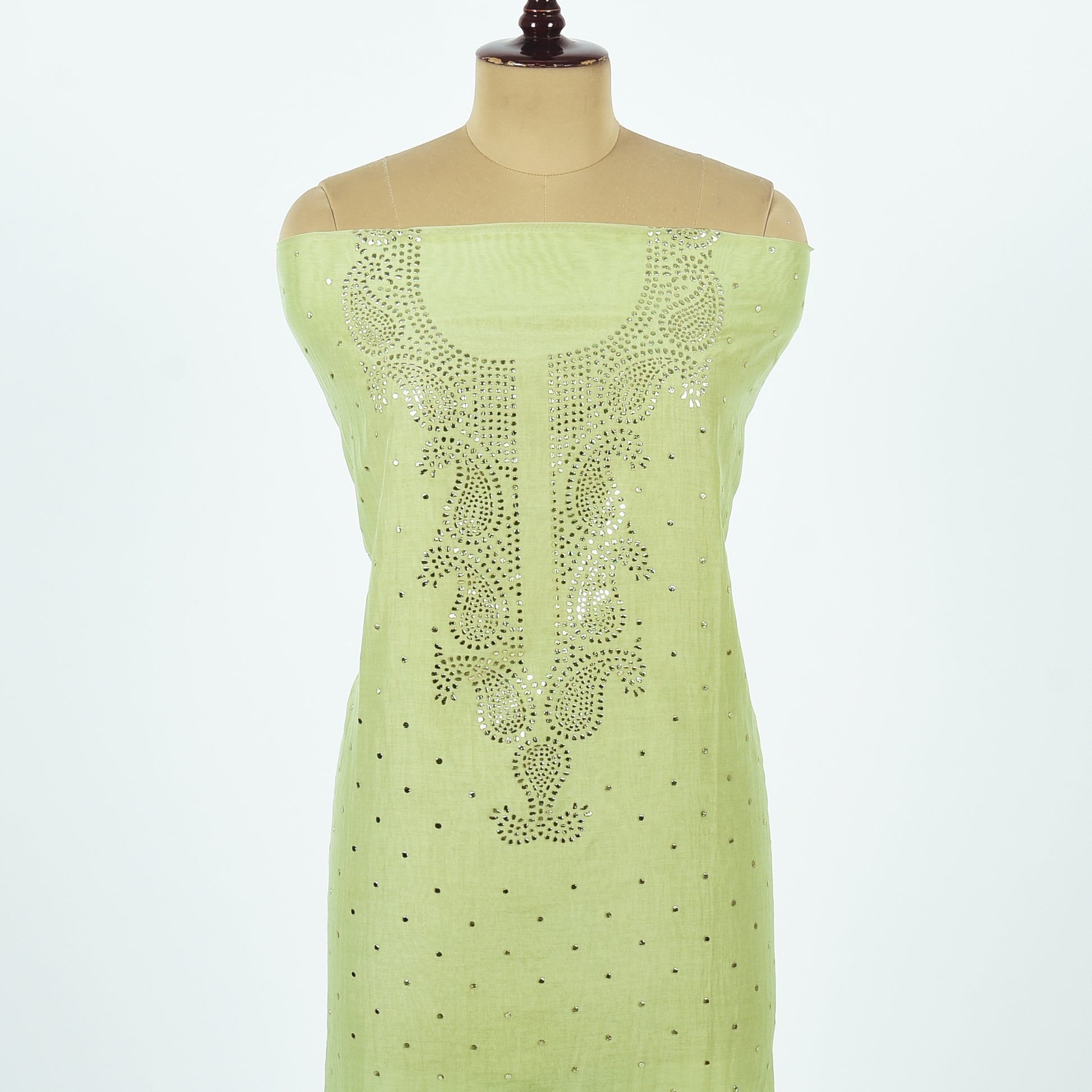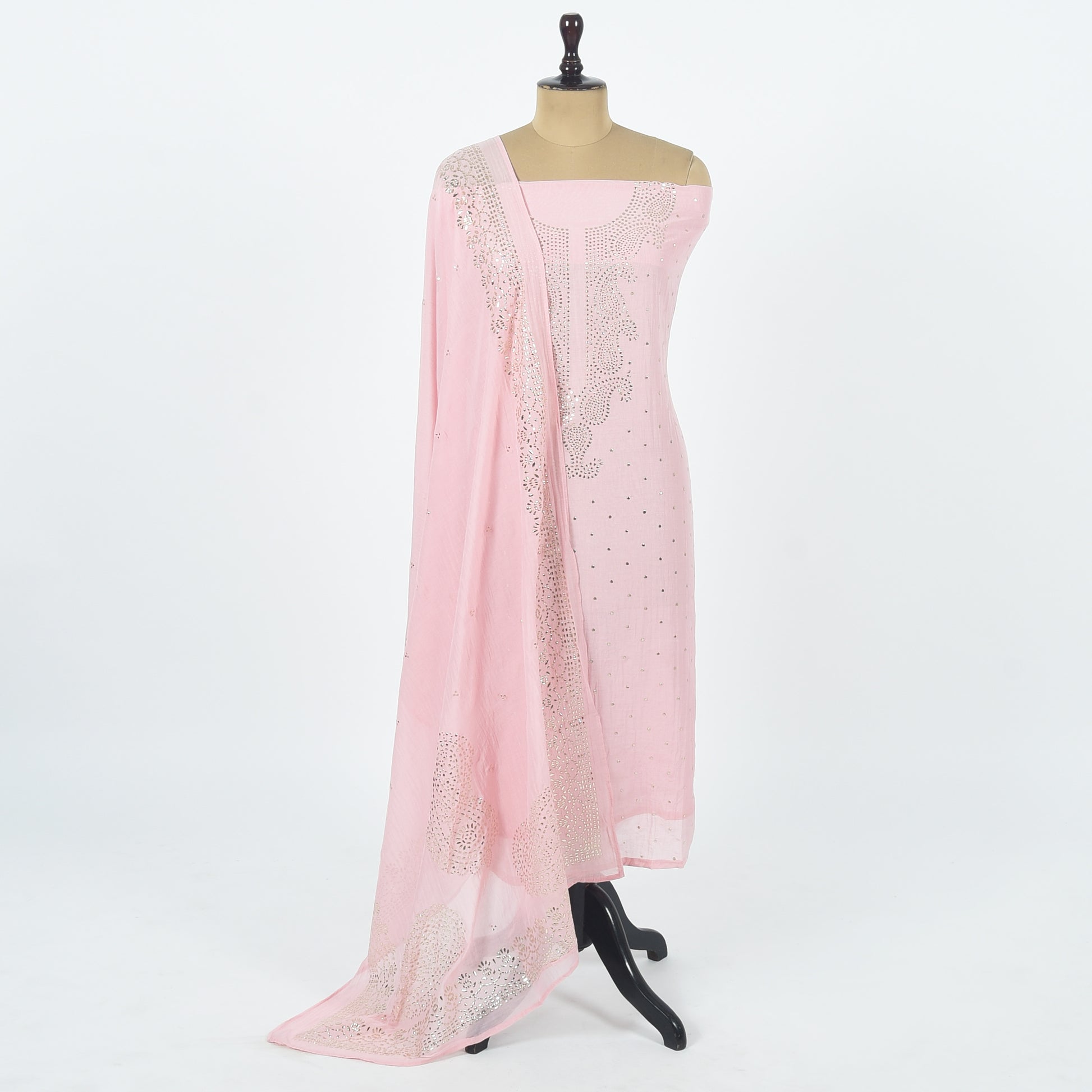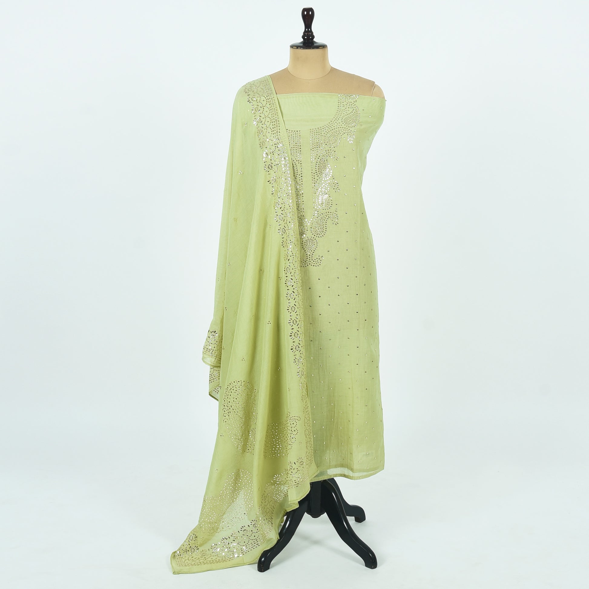Elevate your wardrobe with our Unstitched Chanderi Suit Set. Handmade from Chanderi fabric, this set includes a top, bottom, and dupatta for ultimate customization. Impeccable craftsmanship and luxurious materials make this set a must-have for any fashion-forward individual.