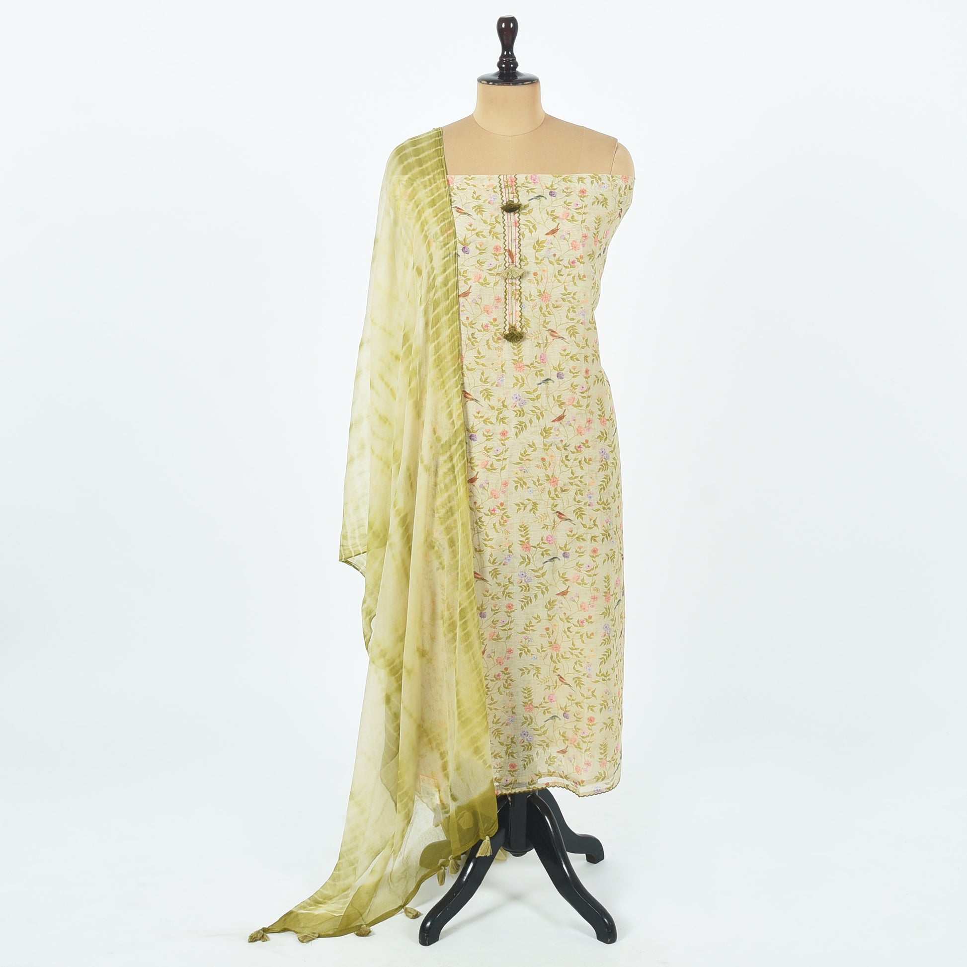 Unstitched Chanderi Suit Set