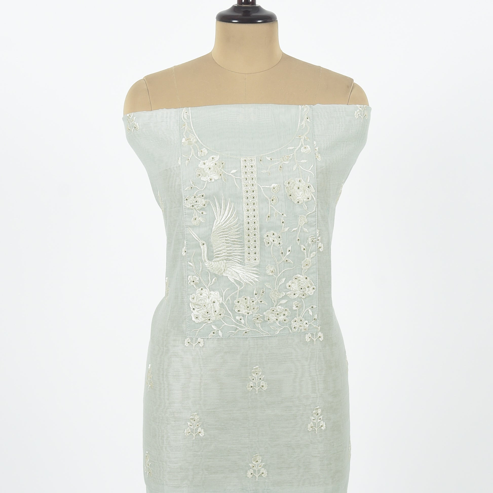 Elevate your wardrobe with this premium unstitched Chanderi suit set featuring a top, bottom, and dupatta. Crafted from authentic Chanderi fabric known for its lightweight texture and subtle sheen, this set offers versatility for customized tailoring according to your measurements and style preferences. Perfect for both festive occasions and formal gatherings.