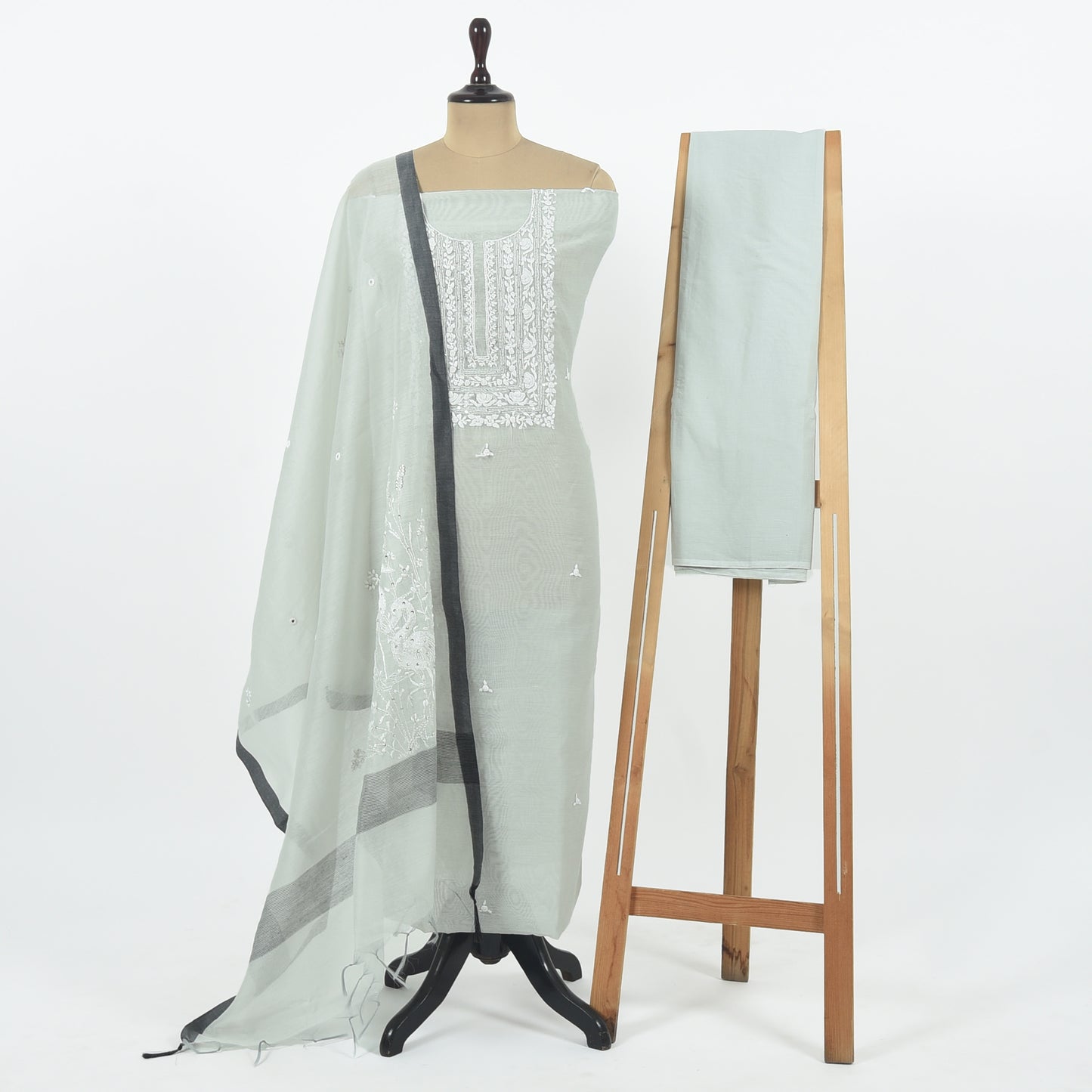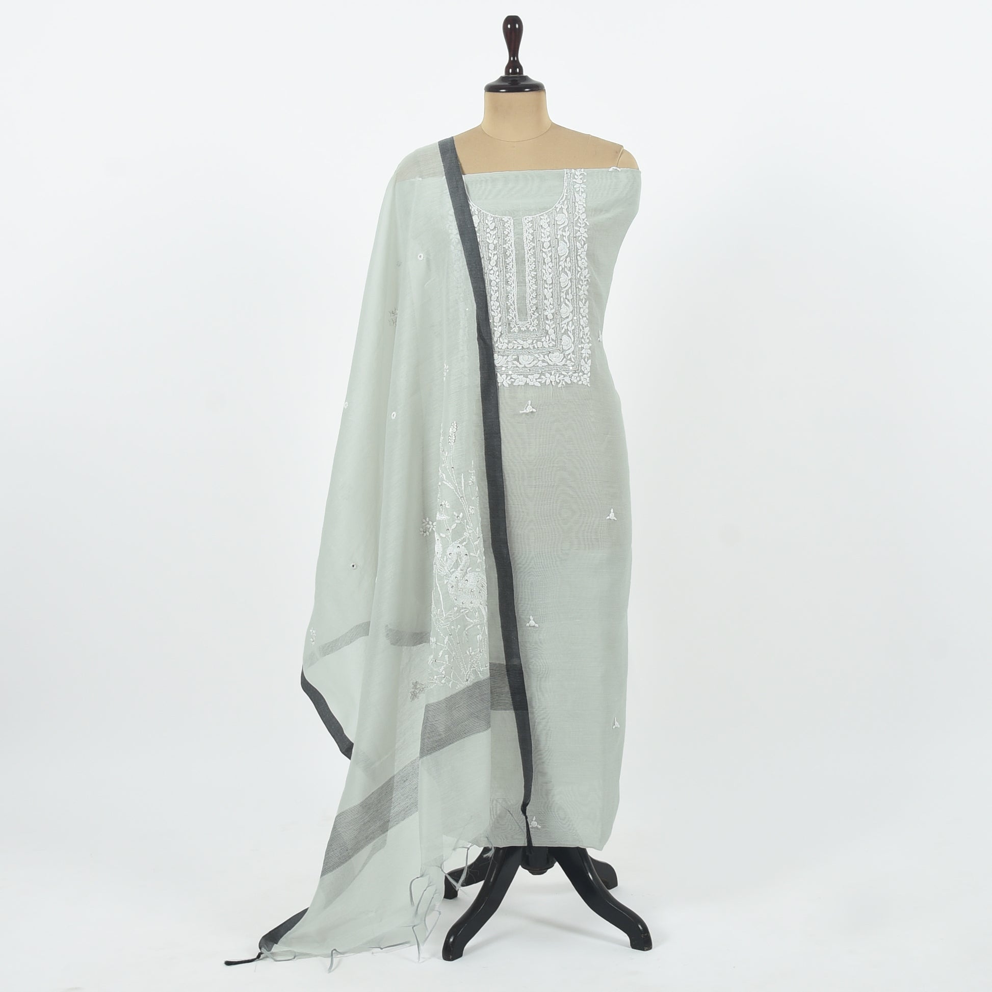 Elevate your wardrobe with this premium unstitched Chanderi suit set featuring a top, bottom, and dupatta. Crafted from authentic Chanderi fabric known for its lightweight texture and subtle sheen, this set offers versatility for customized tailoring according to your measurements and style preferences. Perfect for both festive occasions and formal gatherings.