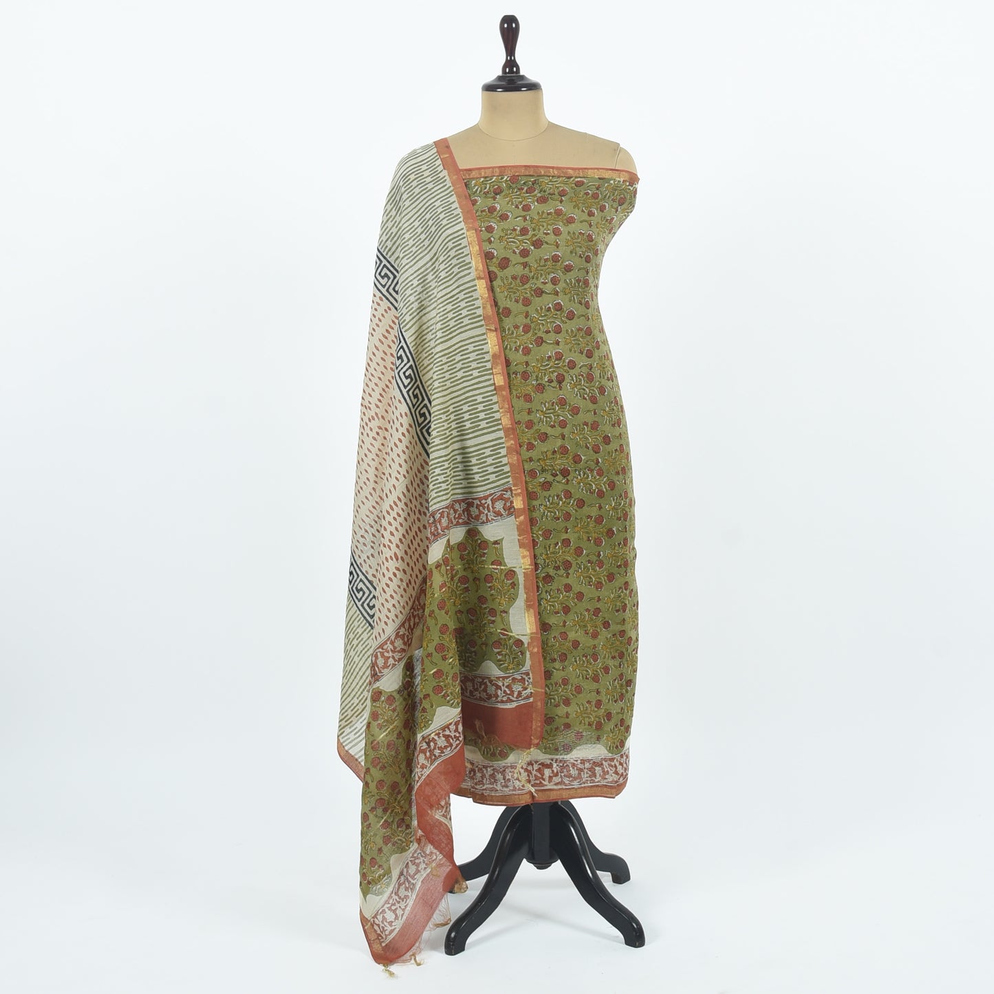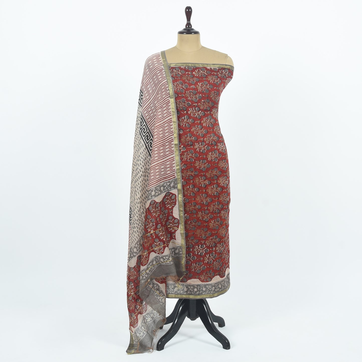 Unstitched Chanderi Suit Set