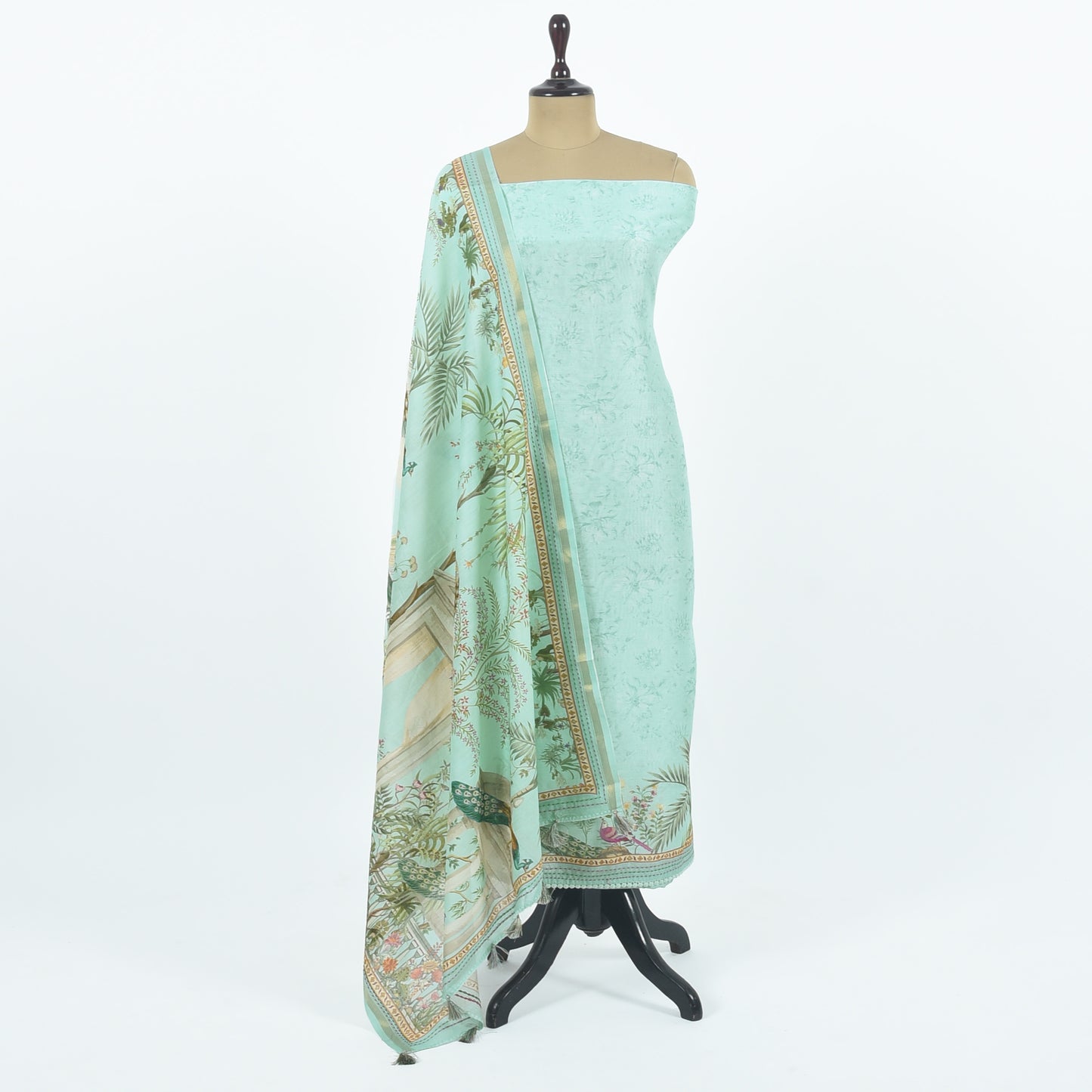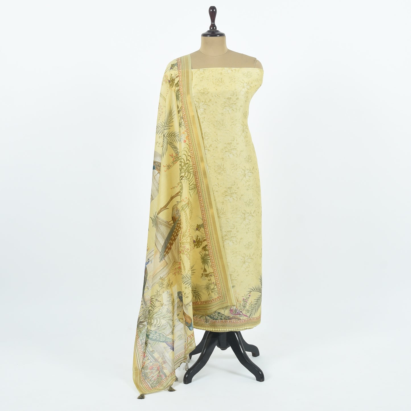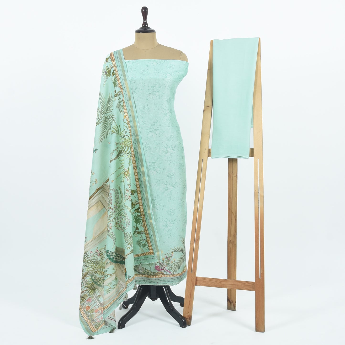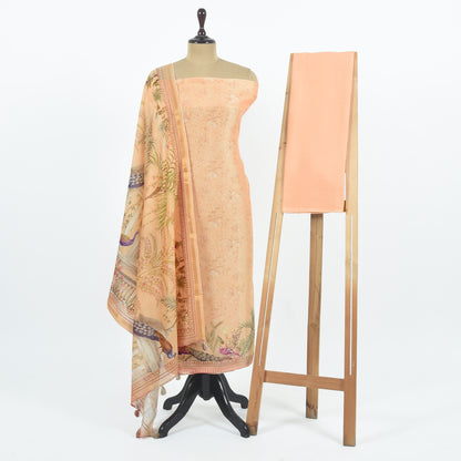 Elevate your wardrobe with our Unstitched Chanderi Suit Set. Handmade from Chanderi fabric, this set includes a top, bottom, and dupatta for ultimate customization. Impeccable craftsmanship and luxurious materials make this set a must-have for any fashion-forward individual.