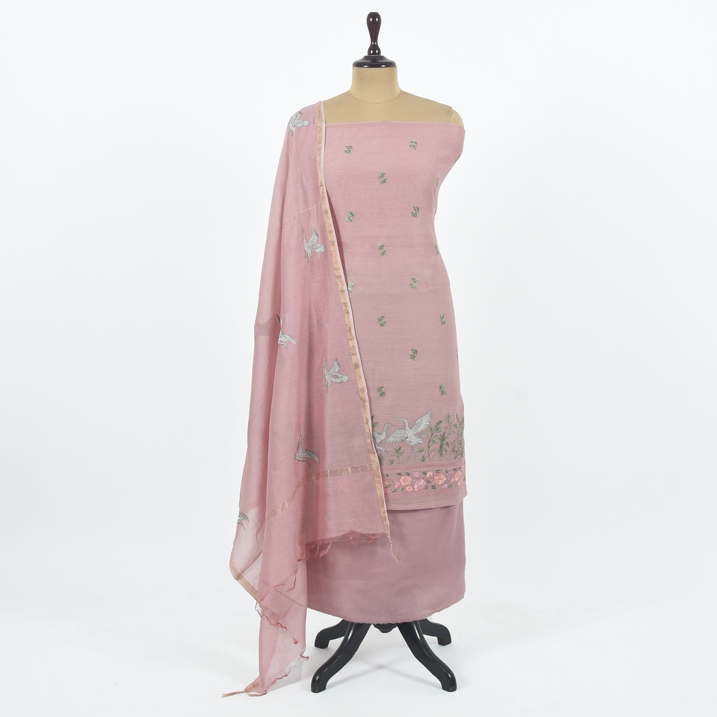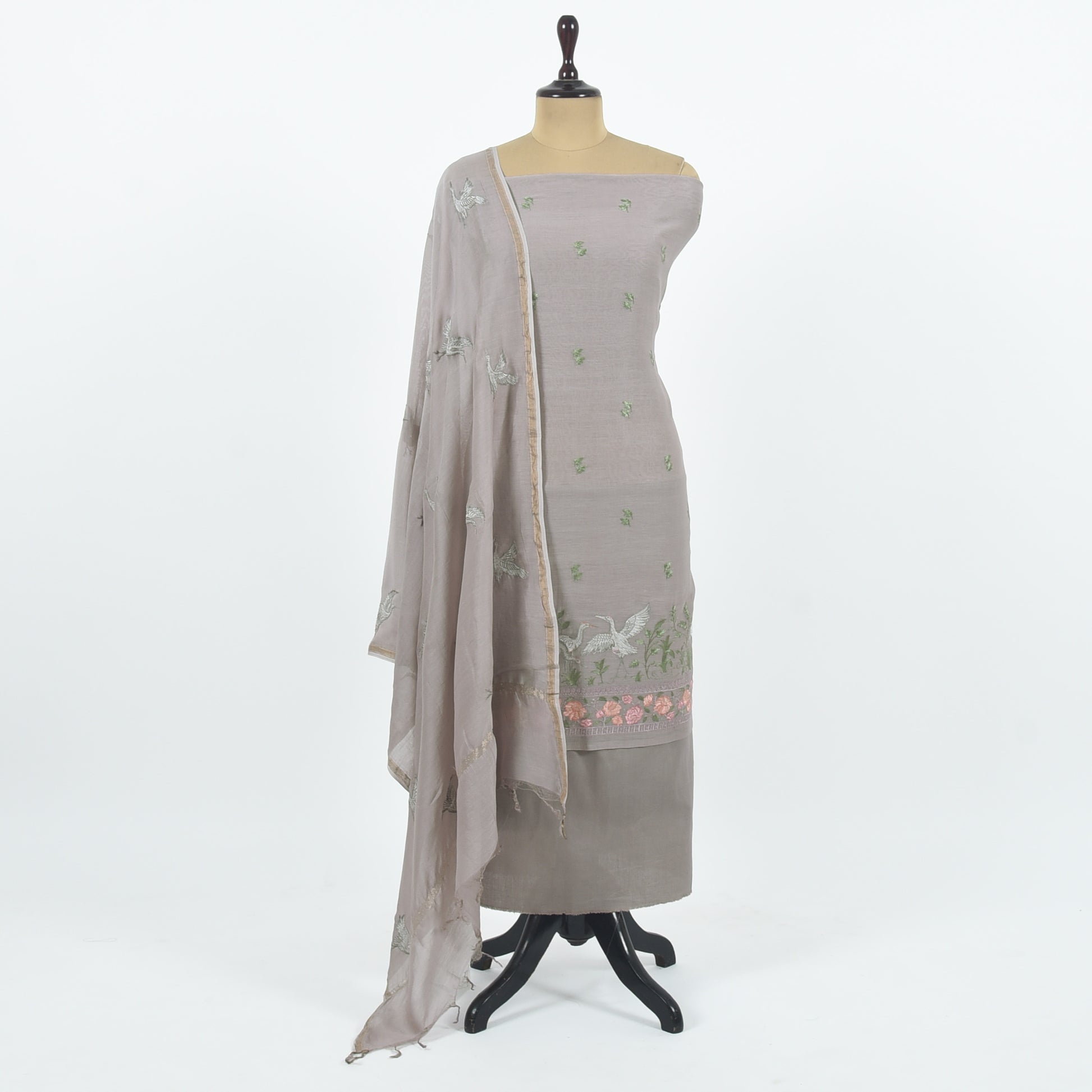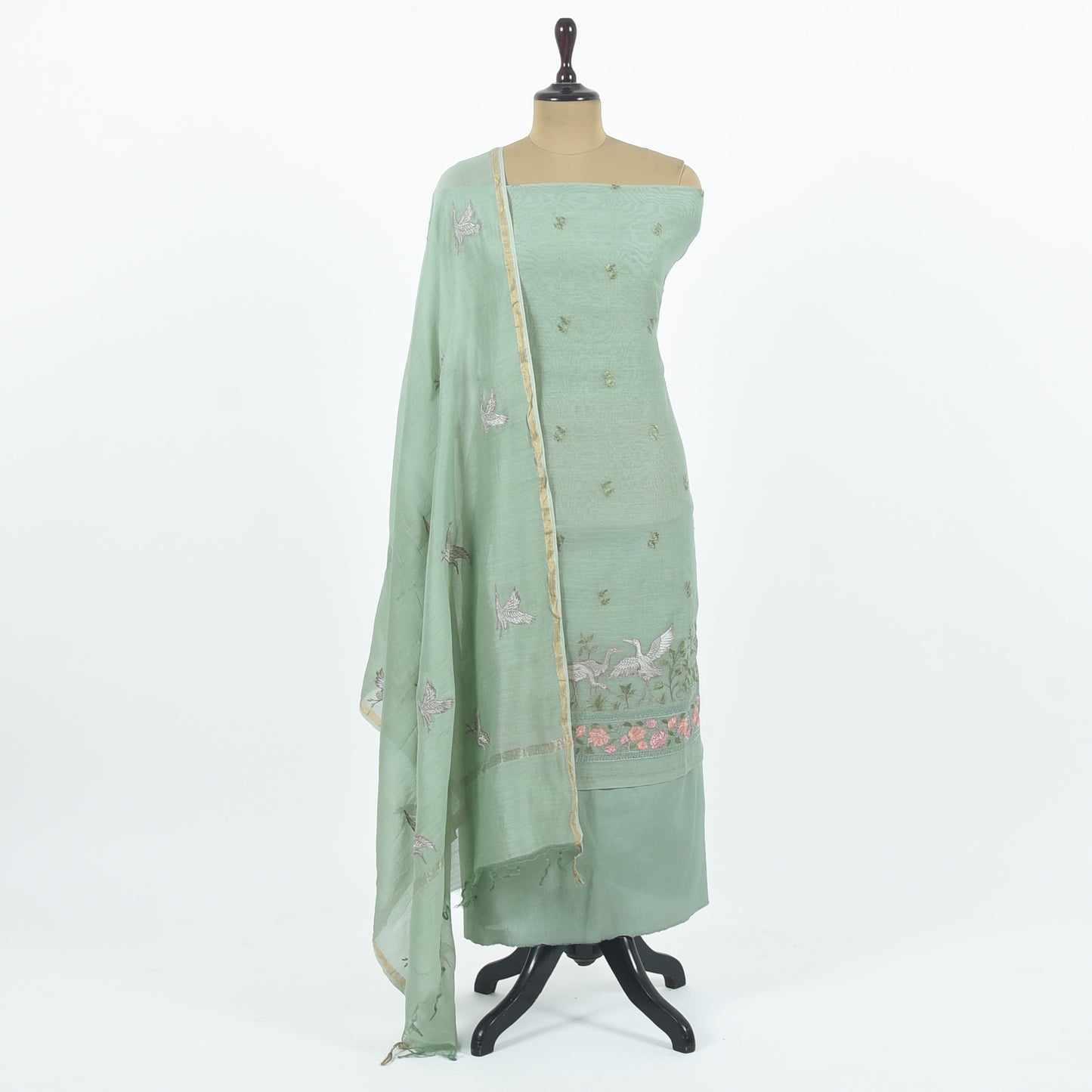 Elevate your wardrobe with our Unstitched Chanderi Suit Set. Handmade from Chanderi fabric, this set includes a top, bottom, and dupatta for ultimate customization. Impeccable craftsmanship and luxurious materials make this set a must-have for any fashion-forward individual.